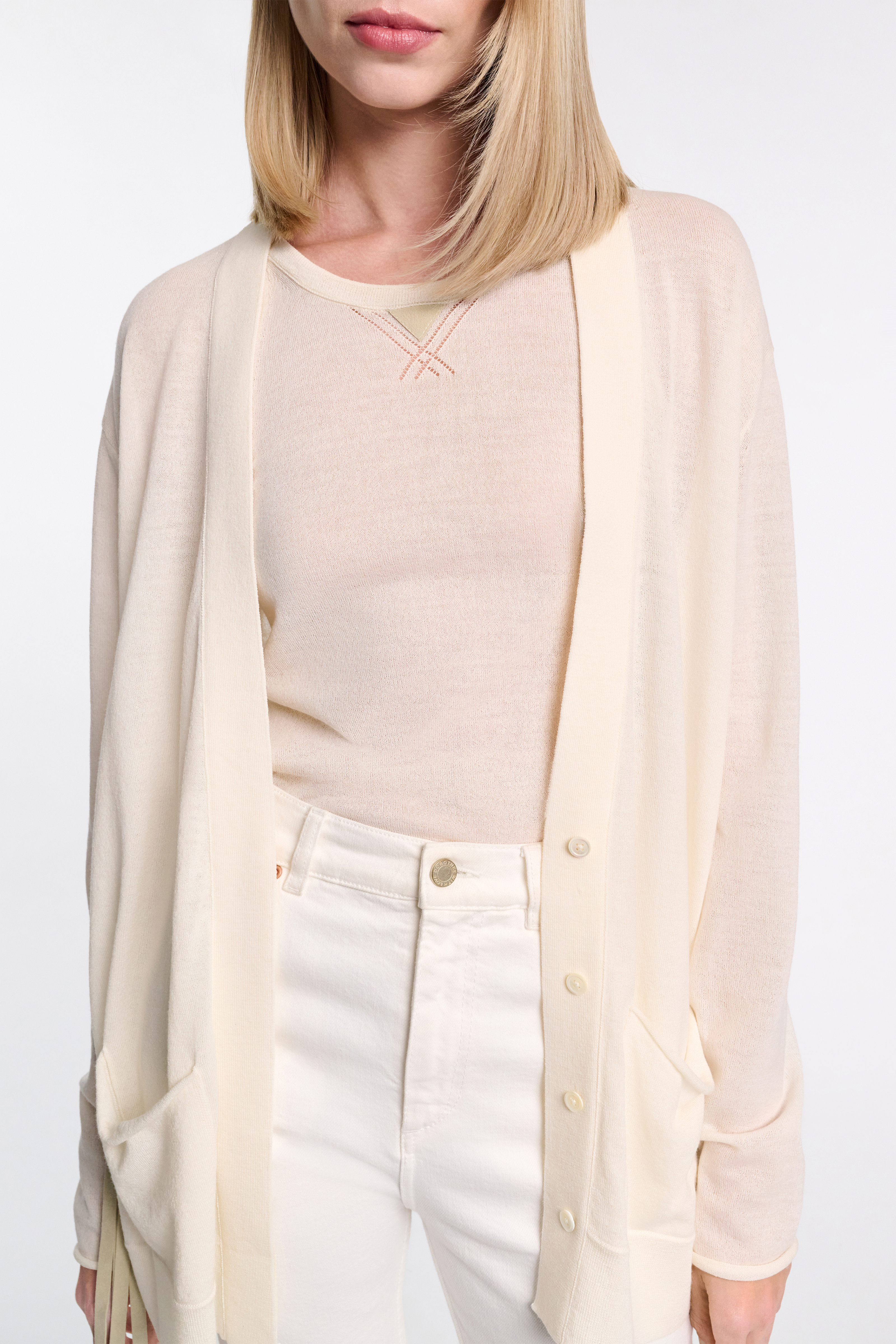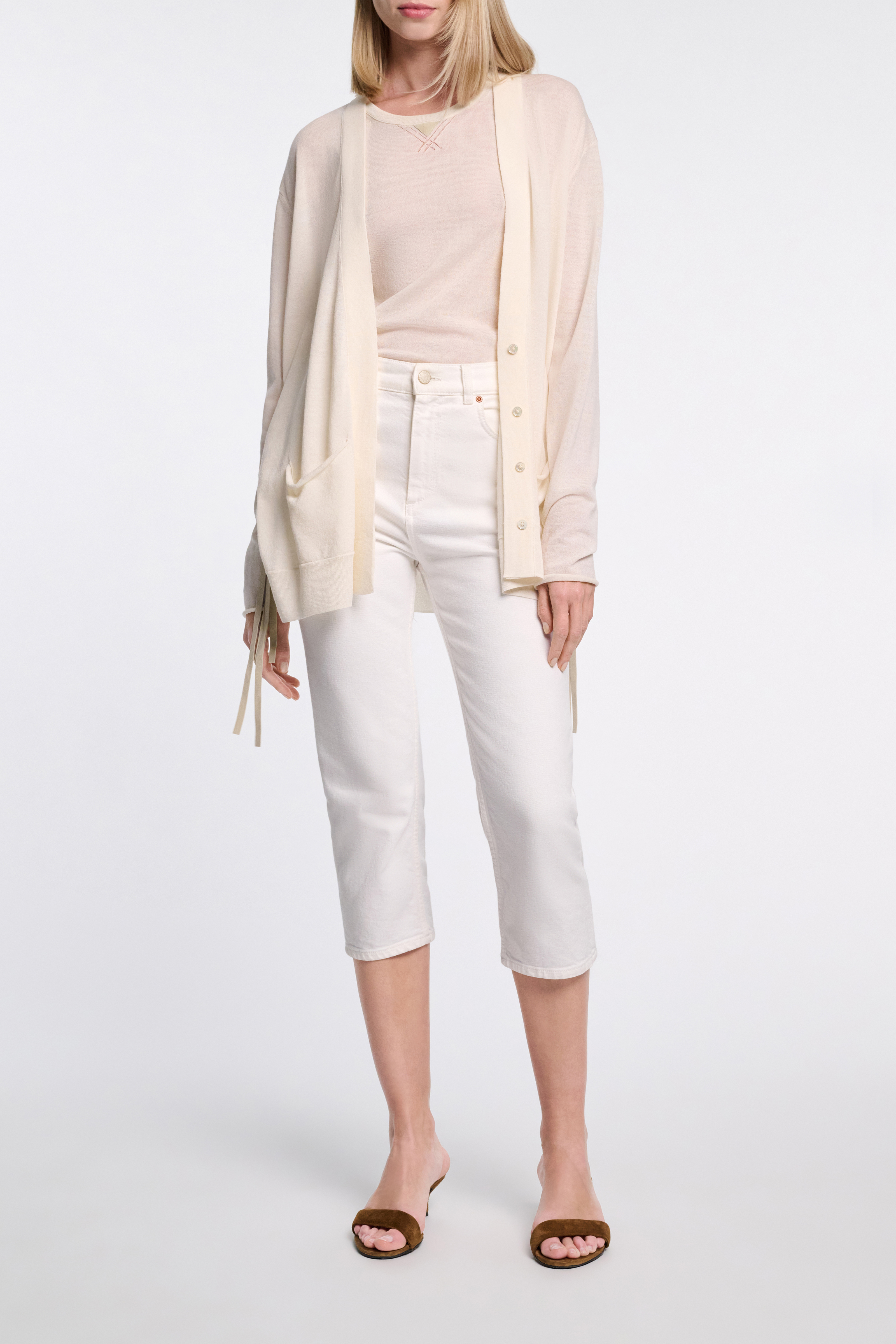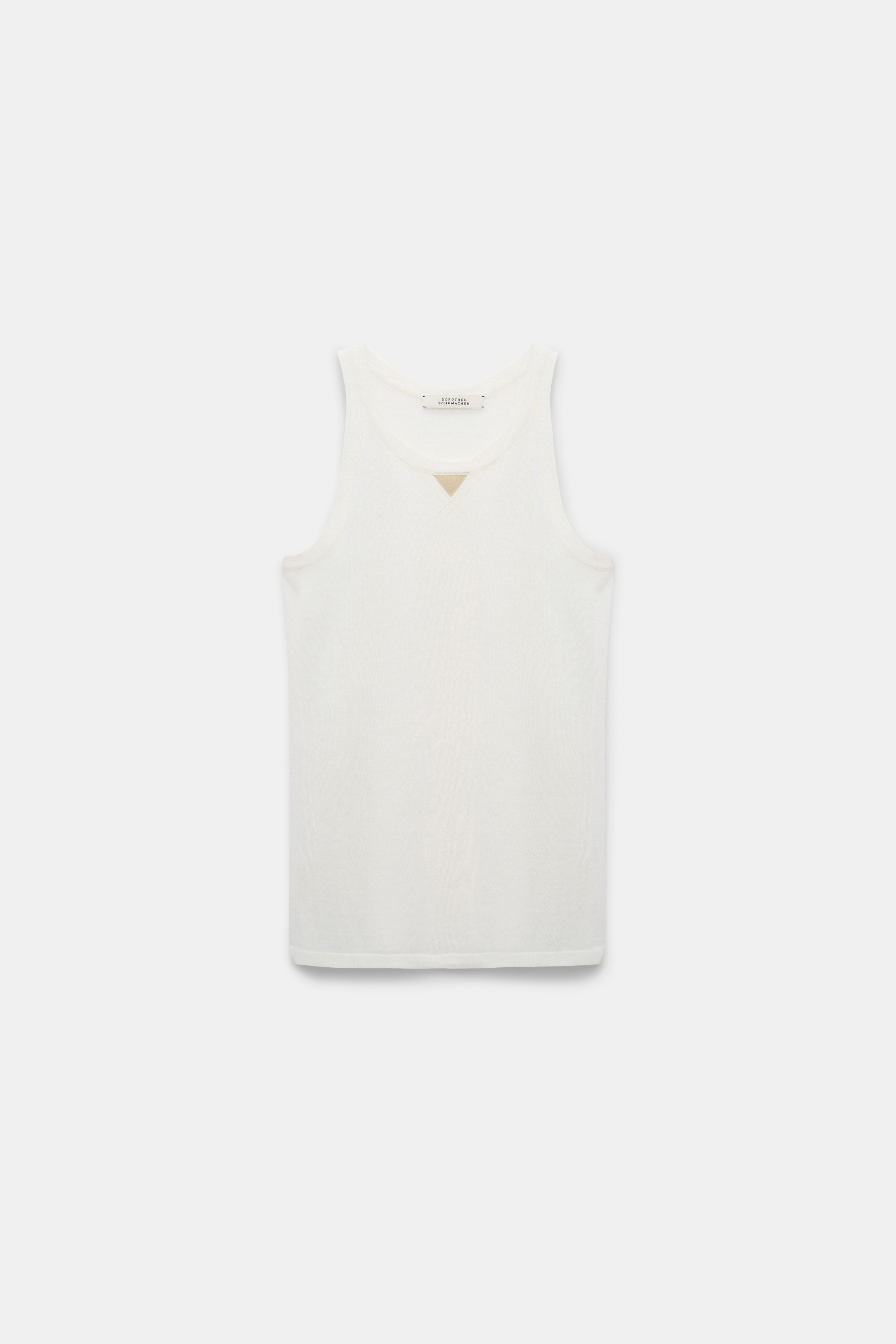 The knit tank top is made from a soft wool-cotton blend and has a round neckline.