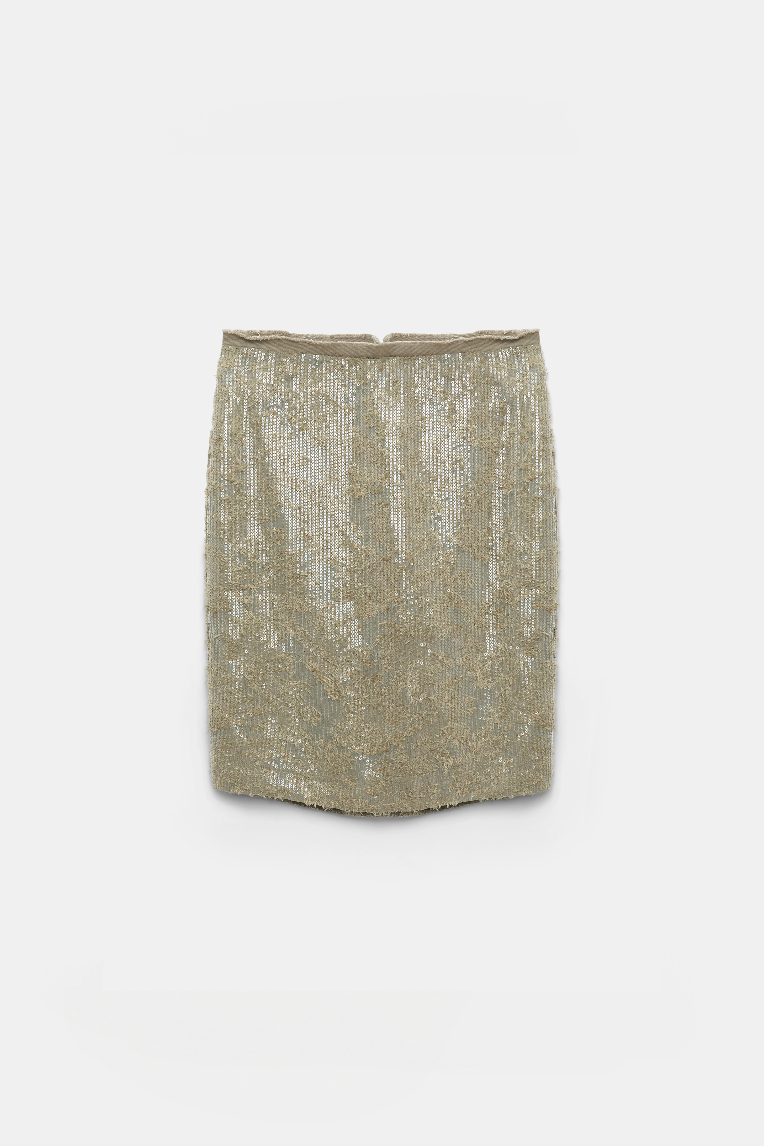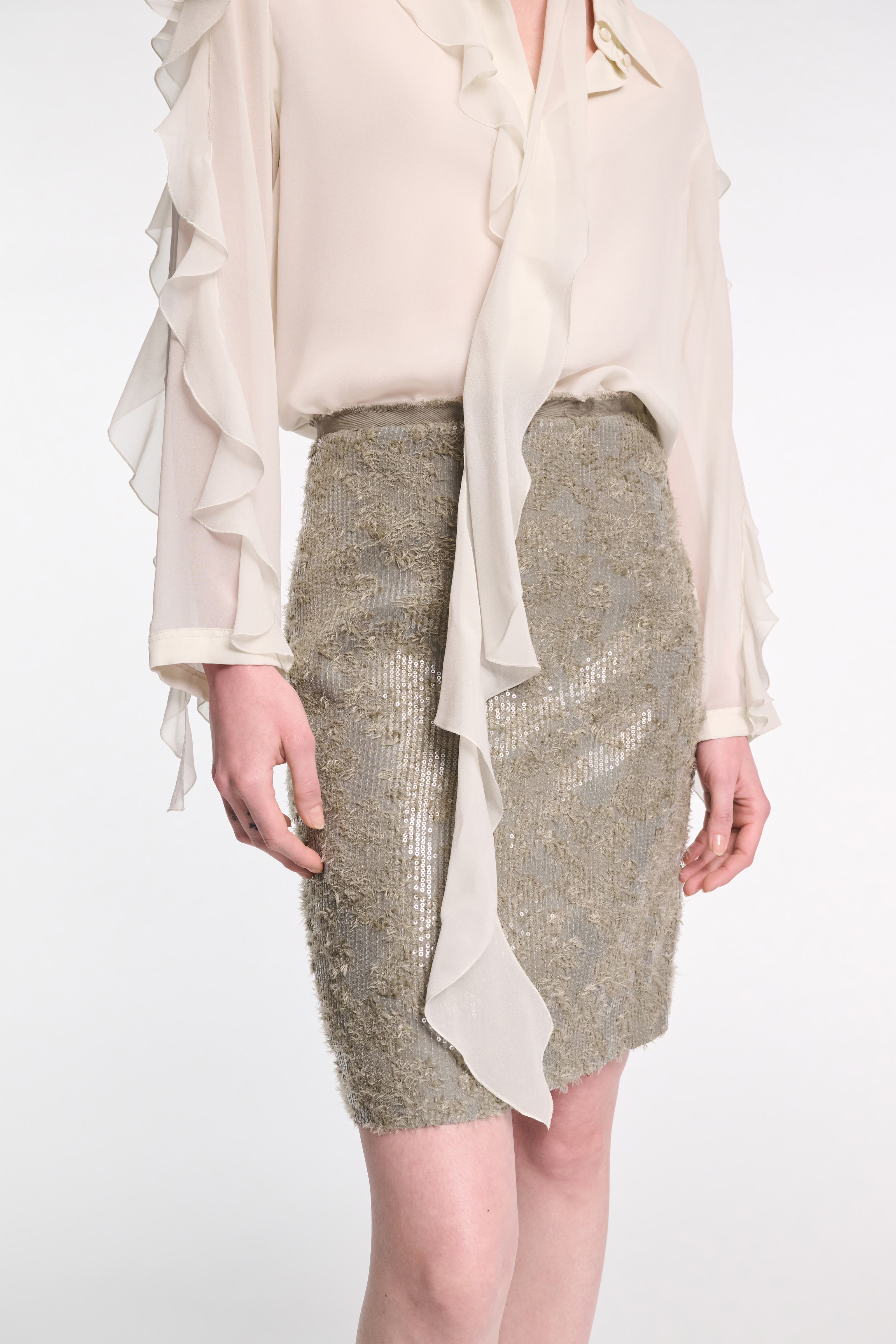 When the invitation calls for sequins...The knee-grazing pencil skirt is covered with iridescent sequins.
