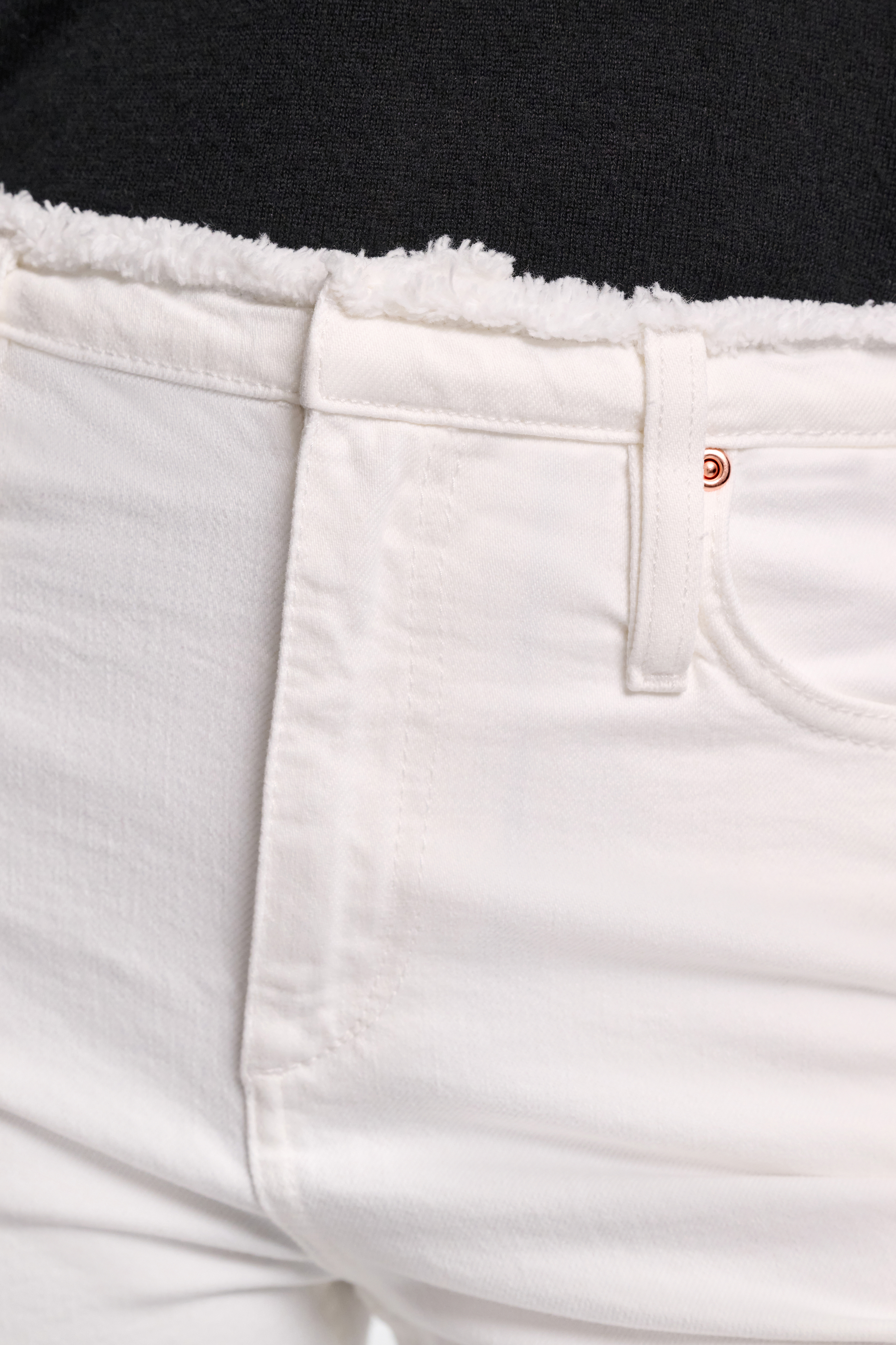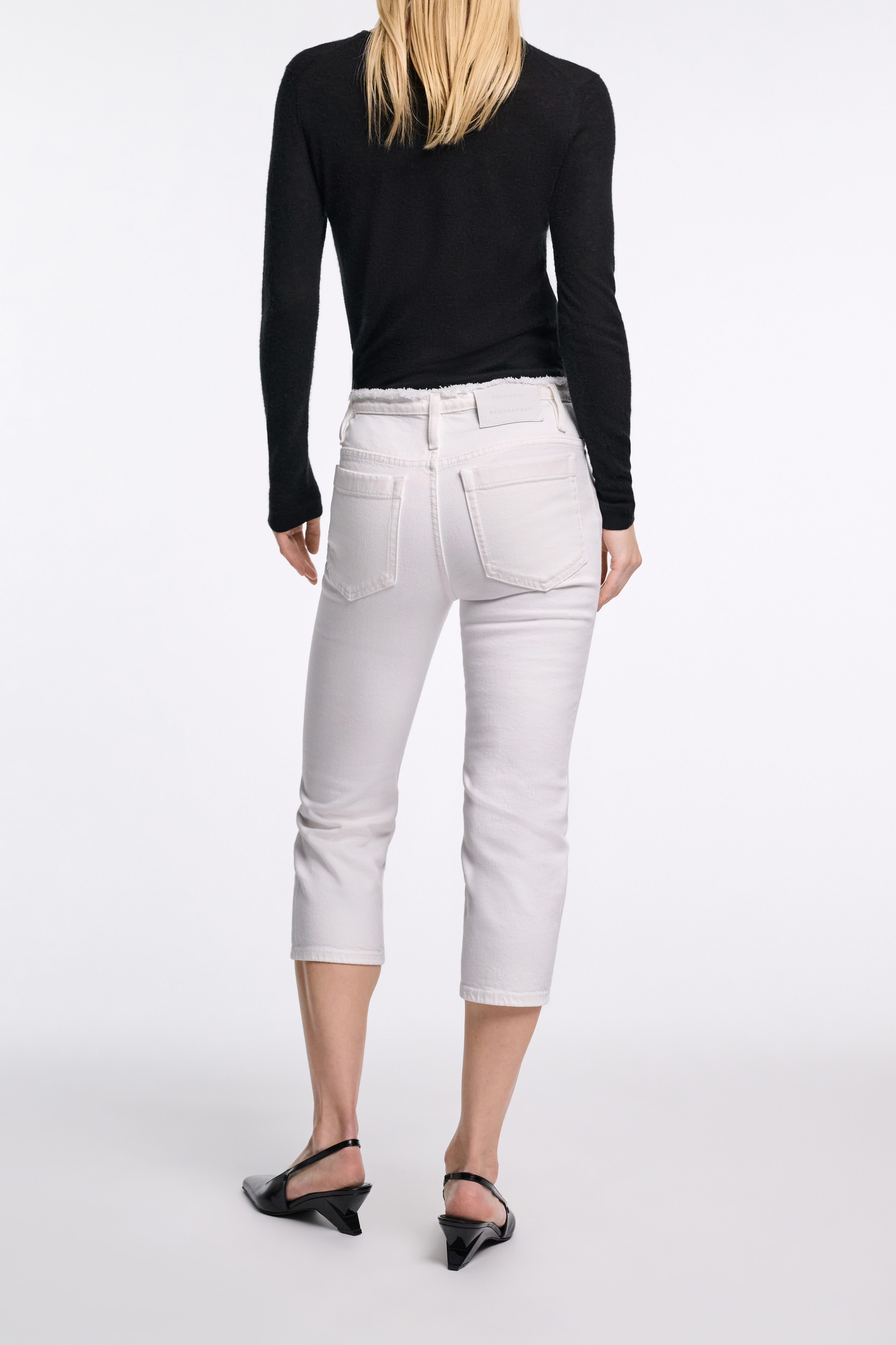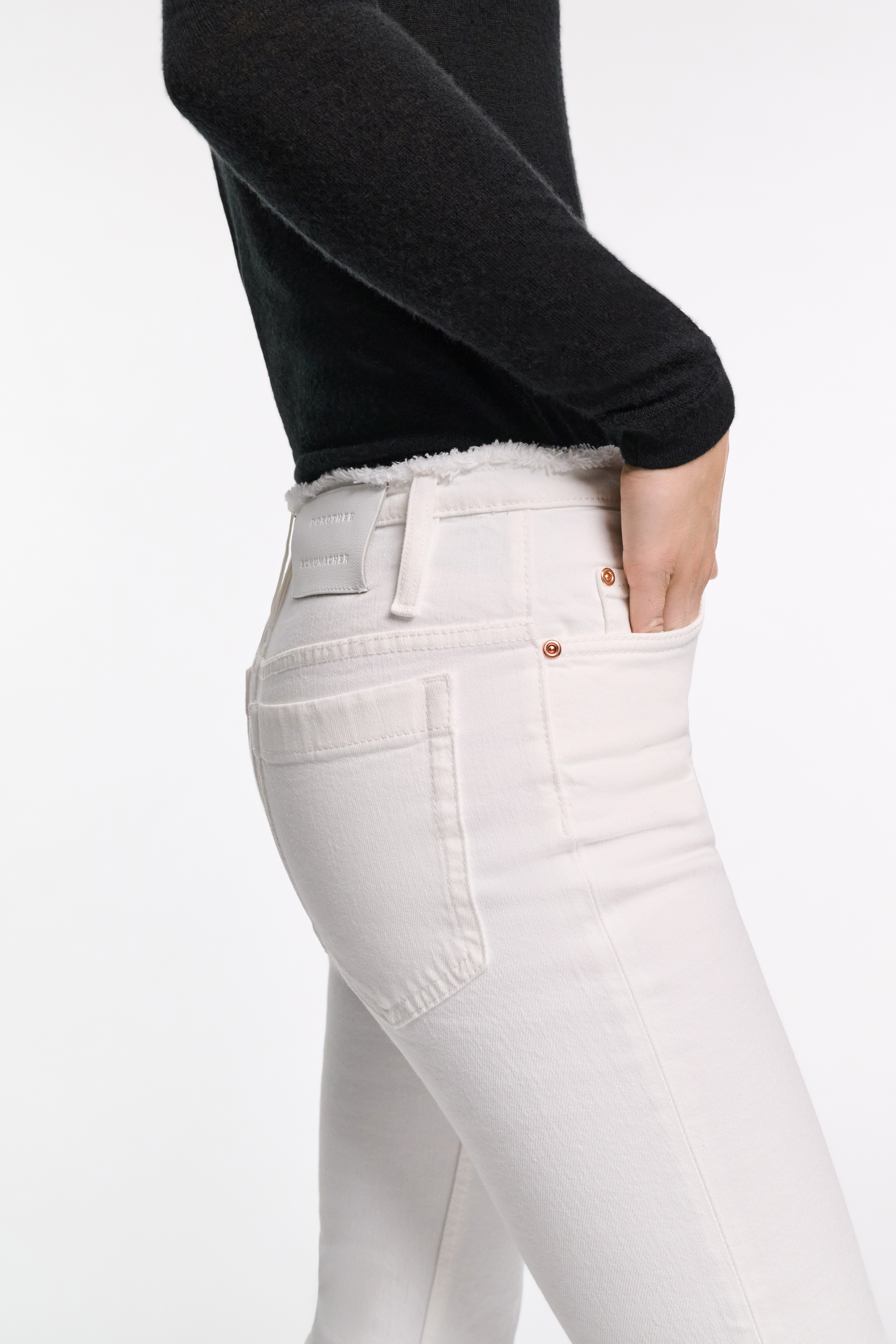 The 5-pocket jeans are fitted and have a narrow frayed waistband.