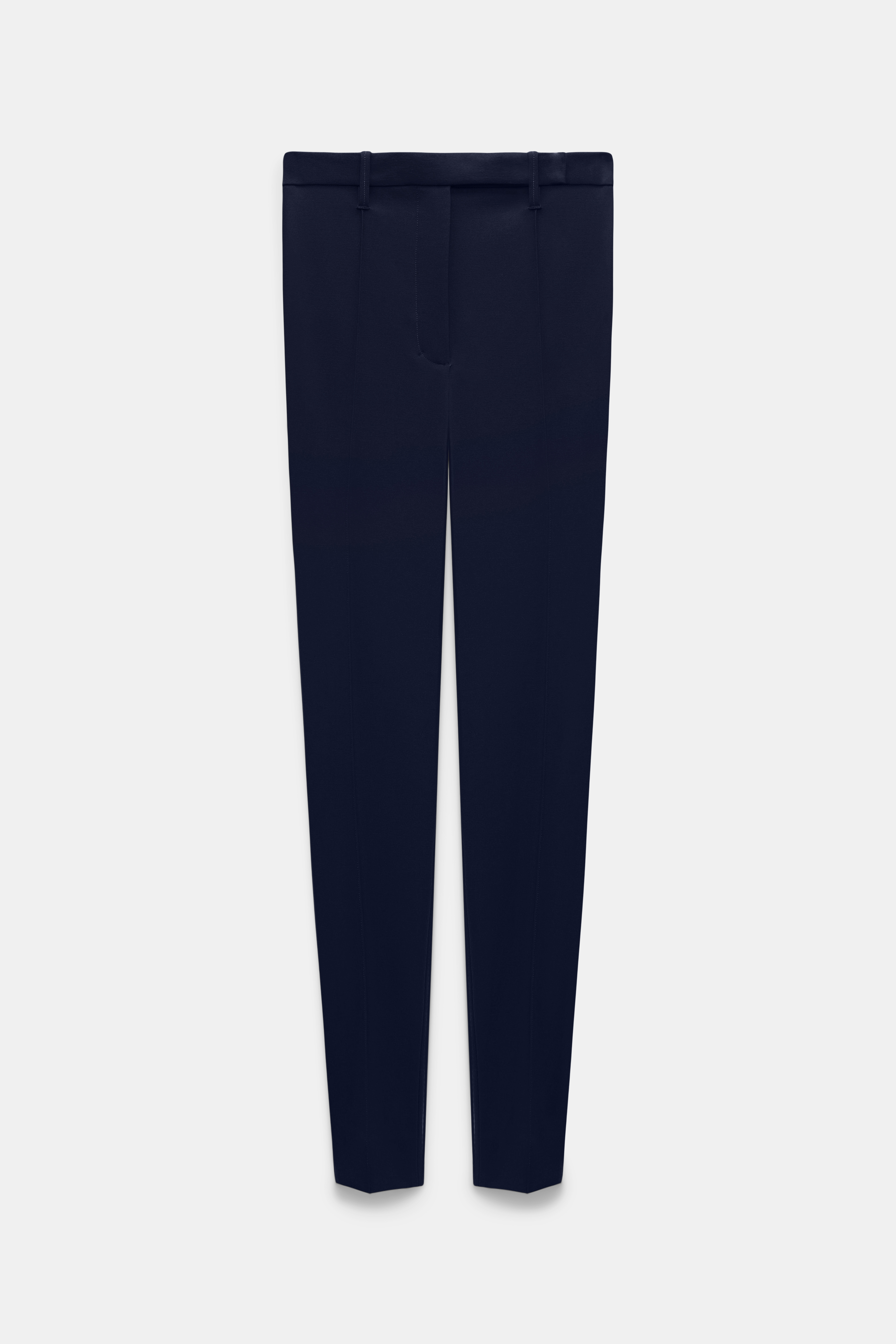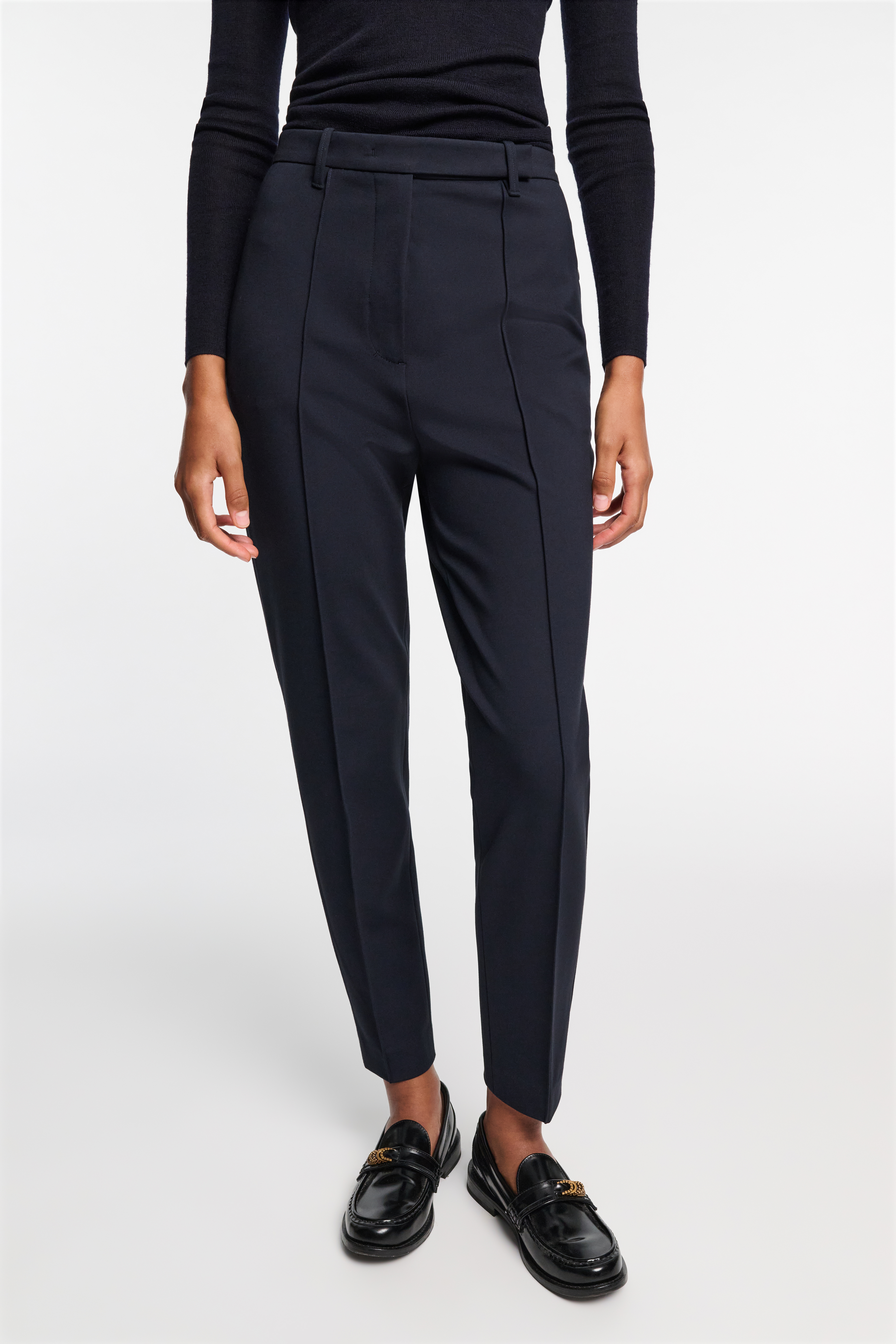Die Hose hat eine zeitlose Zigaretten-Silhouette und ist aus softem Punto Milano gefertigt.