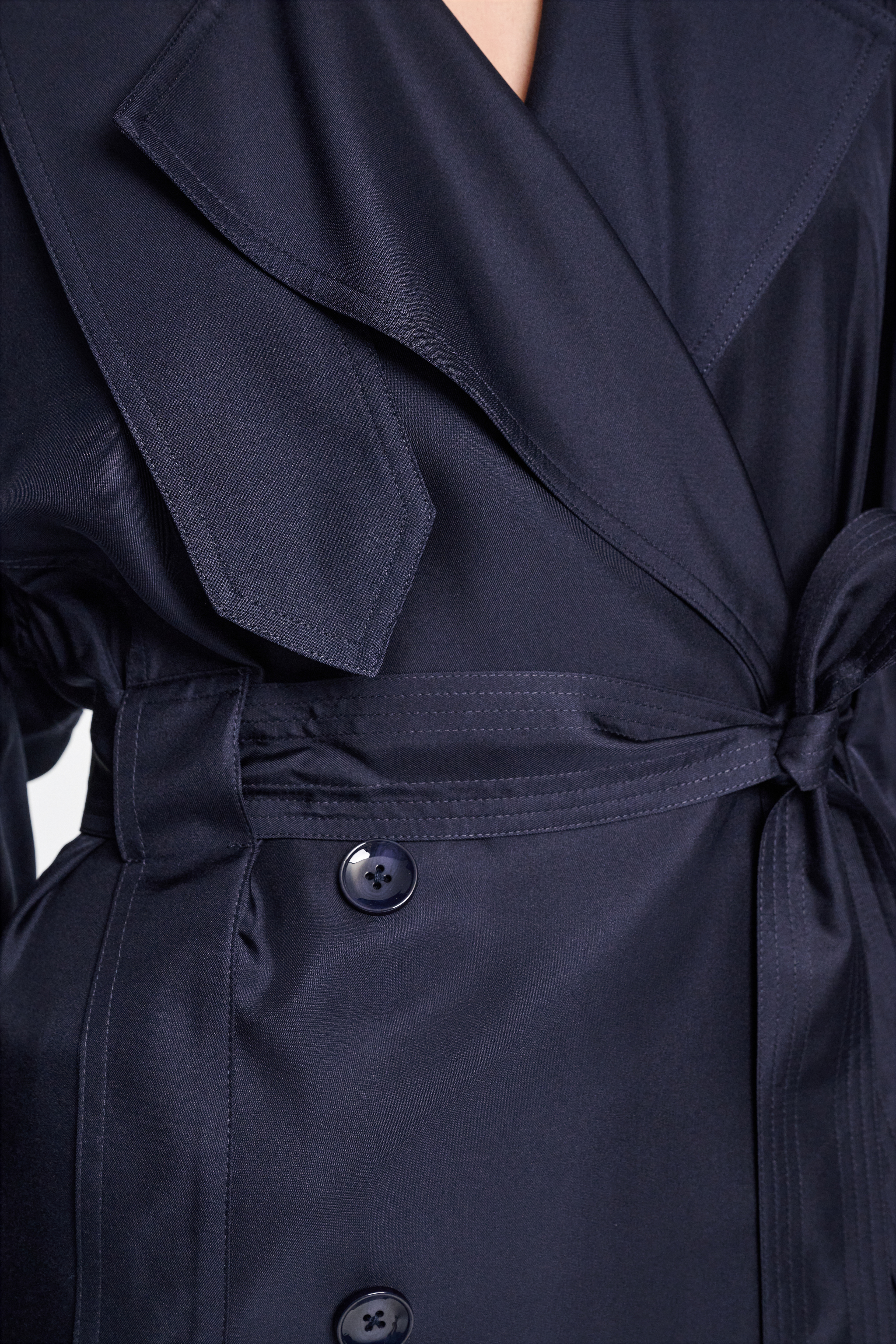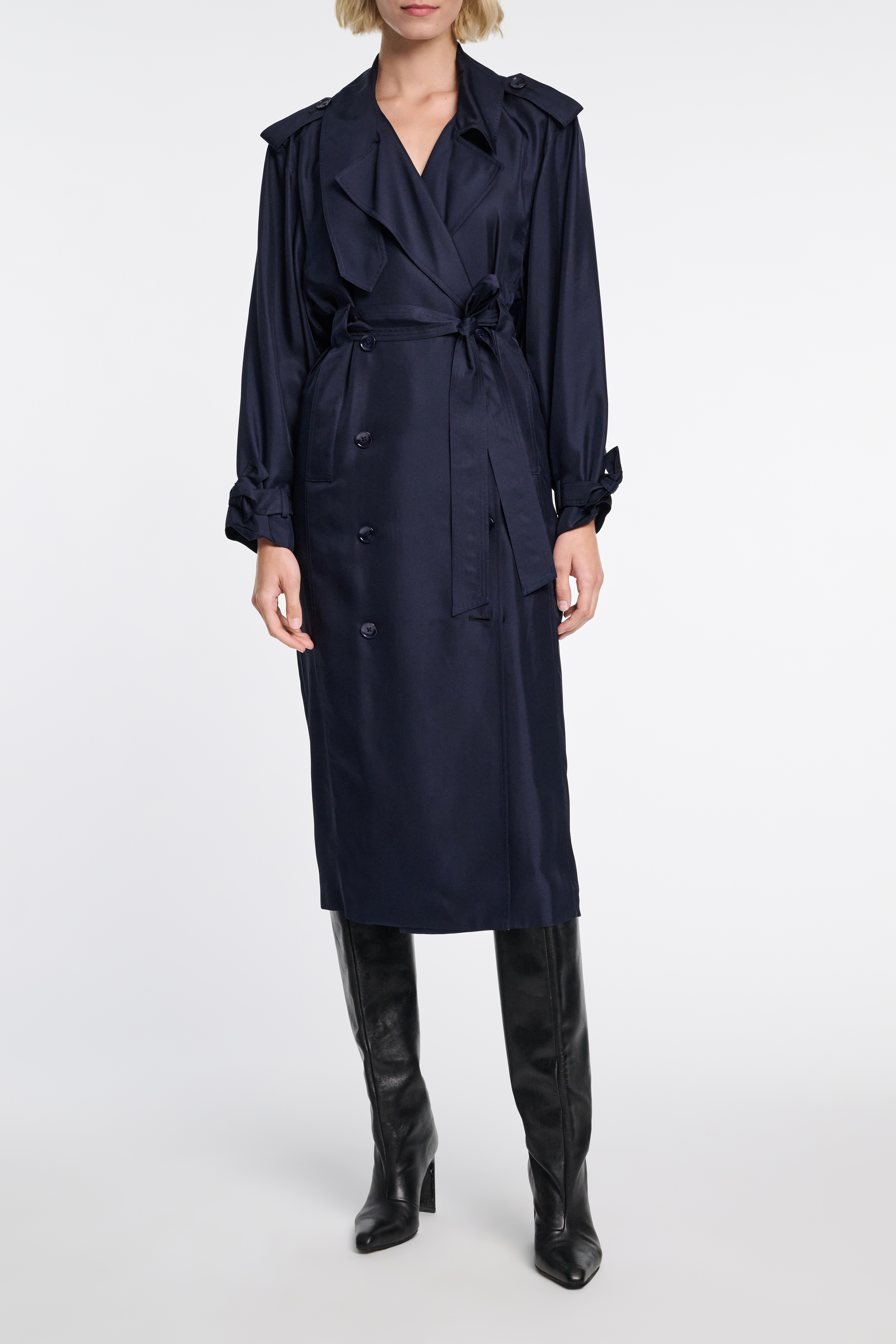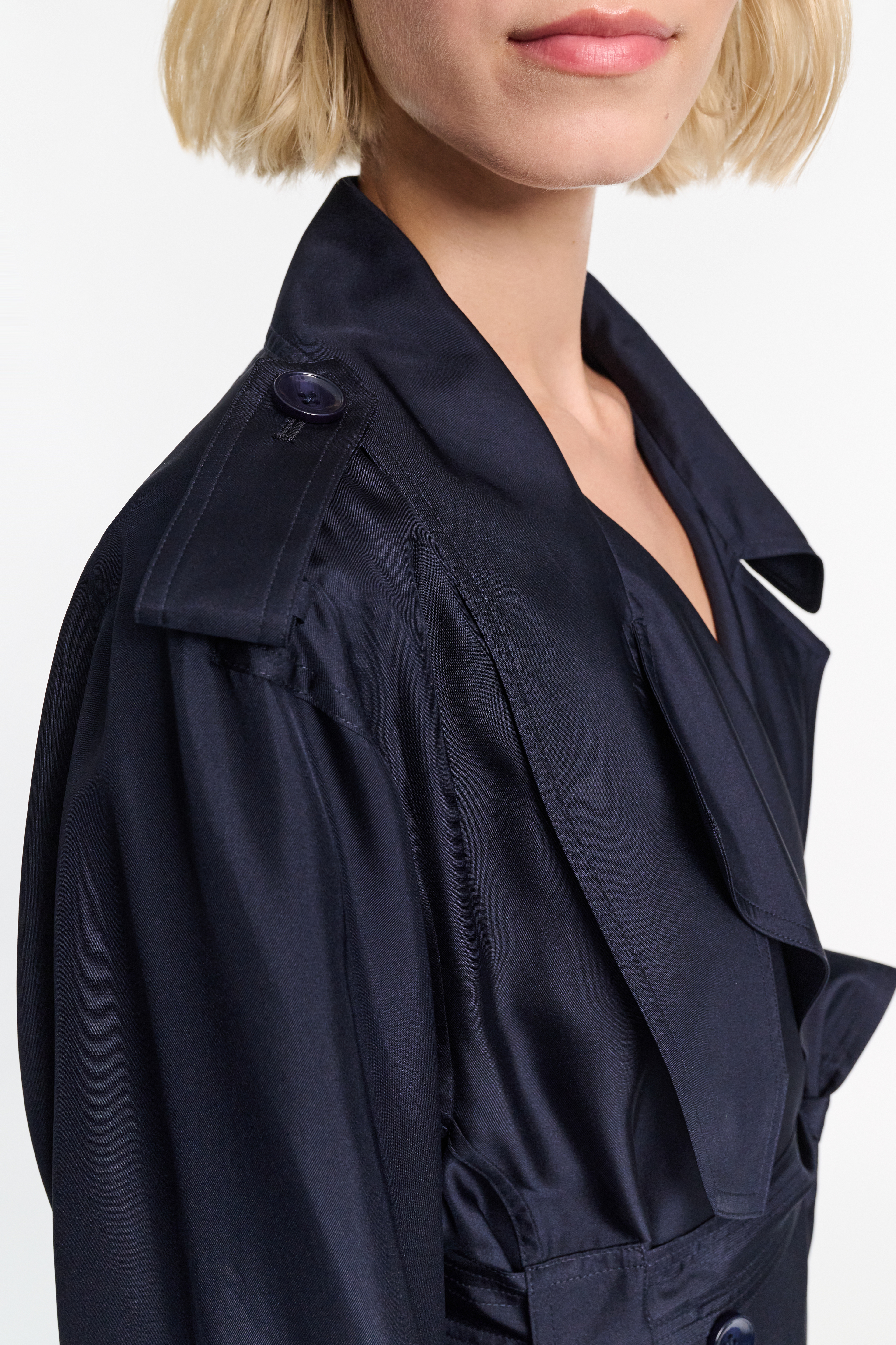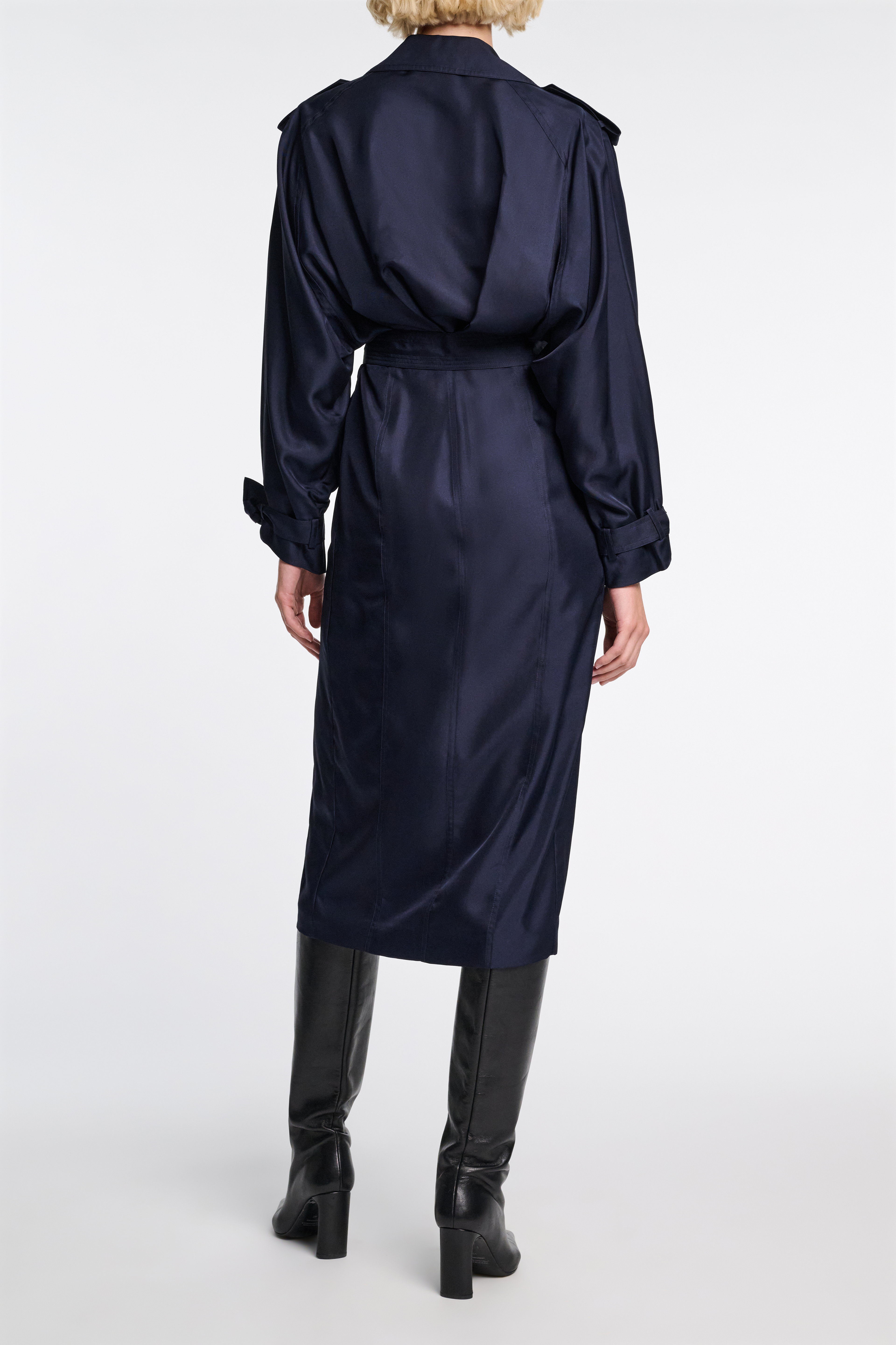 Das Kleid im Trenchcoat-Style ist aus fließendem Seidentwill gefertigt.