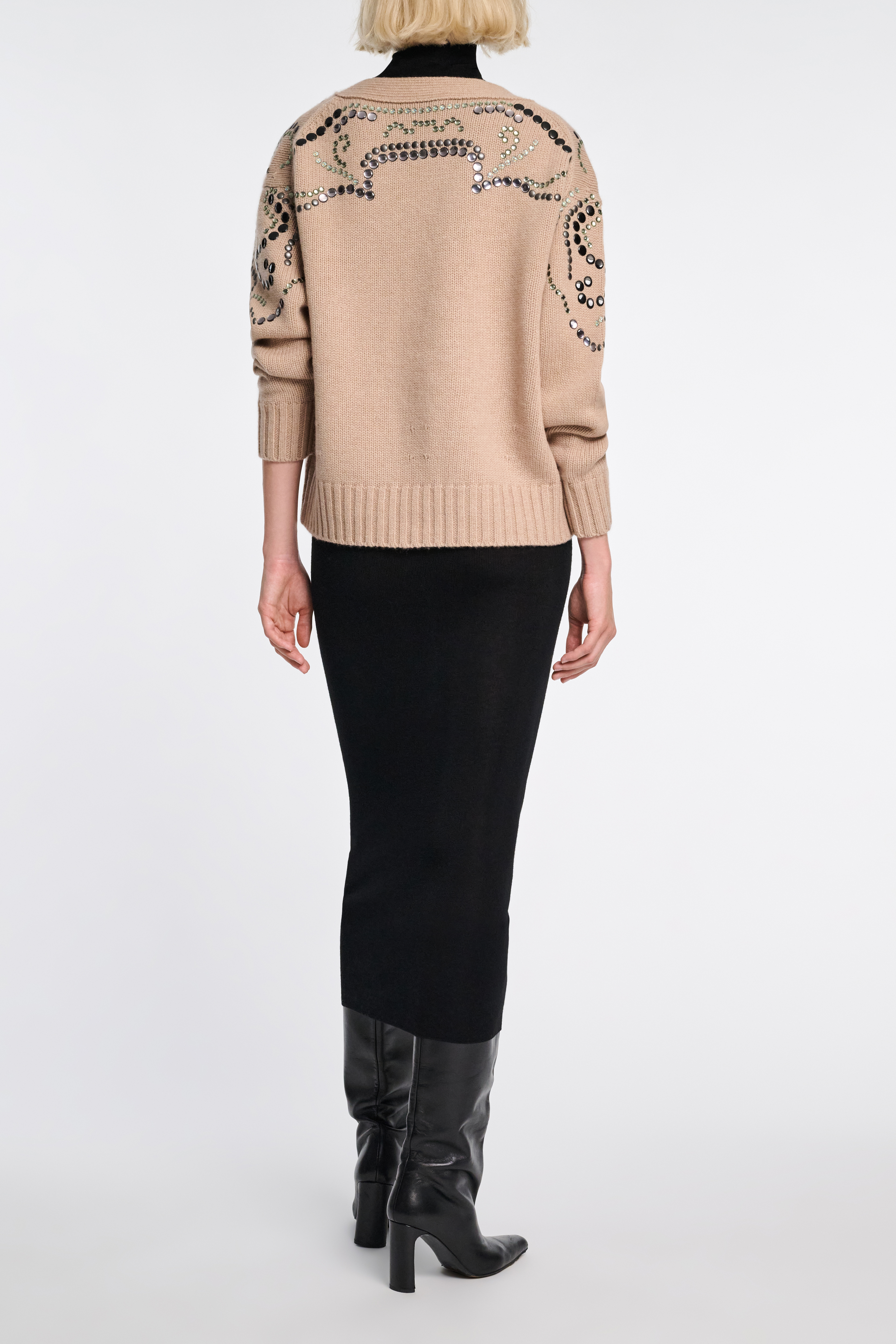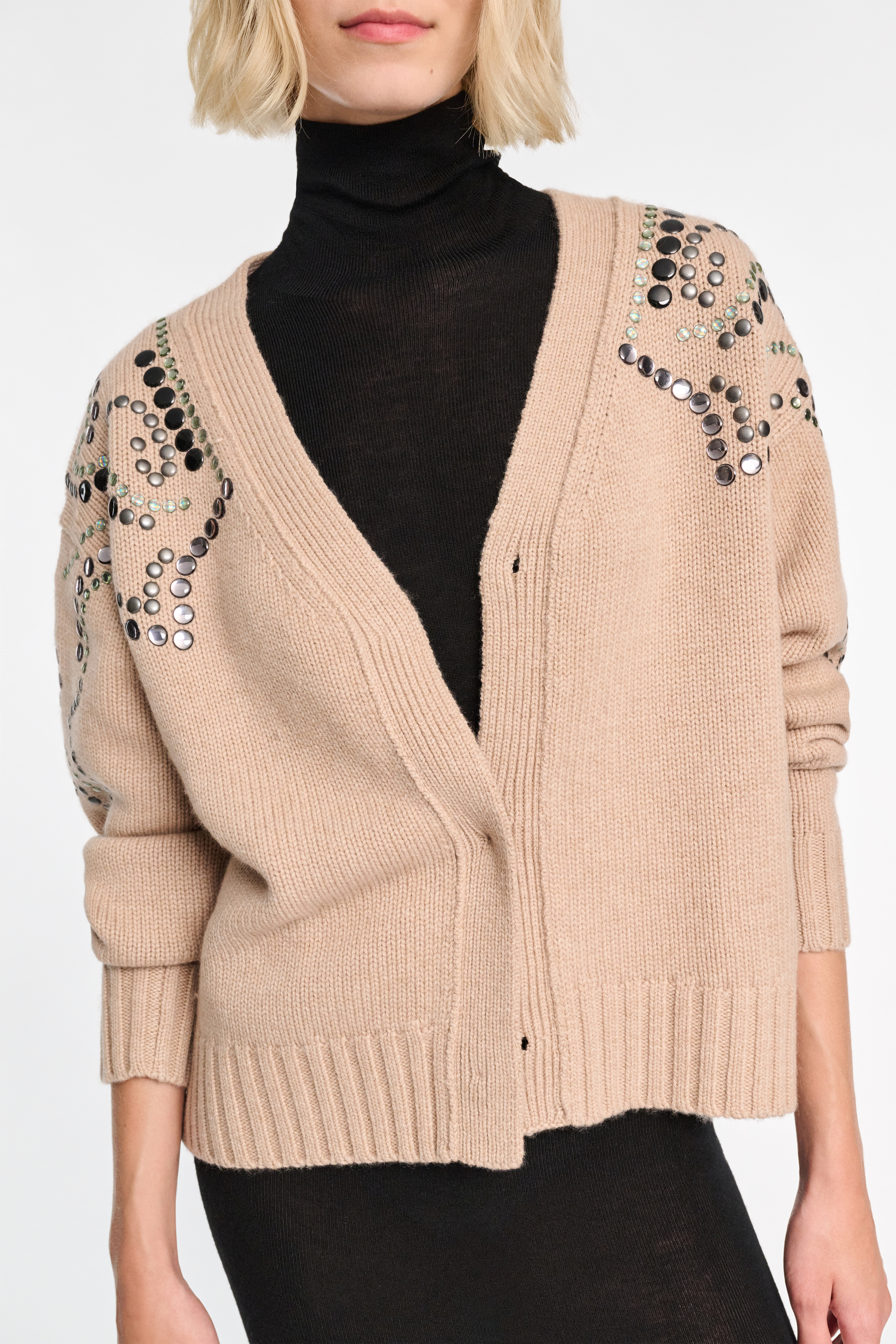 Der Cardigan ist aus einem Merino-Kaschmir Mix gefertigt.