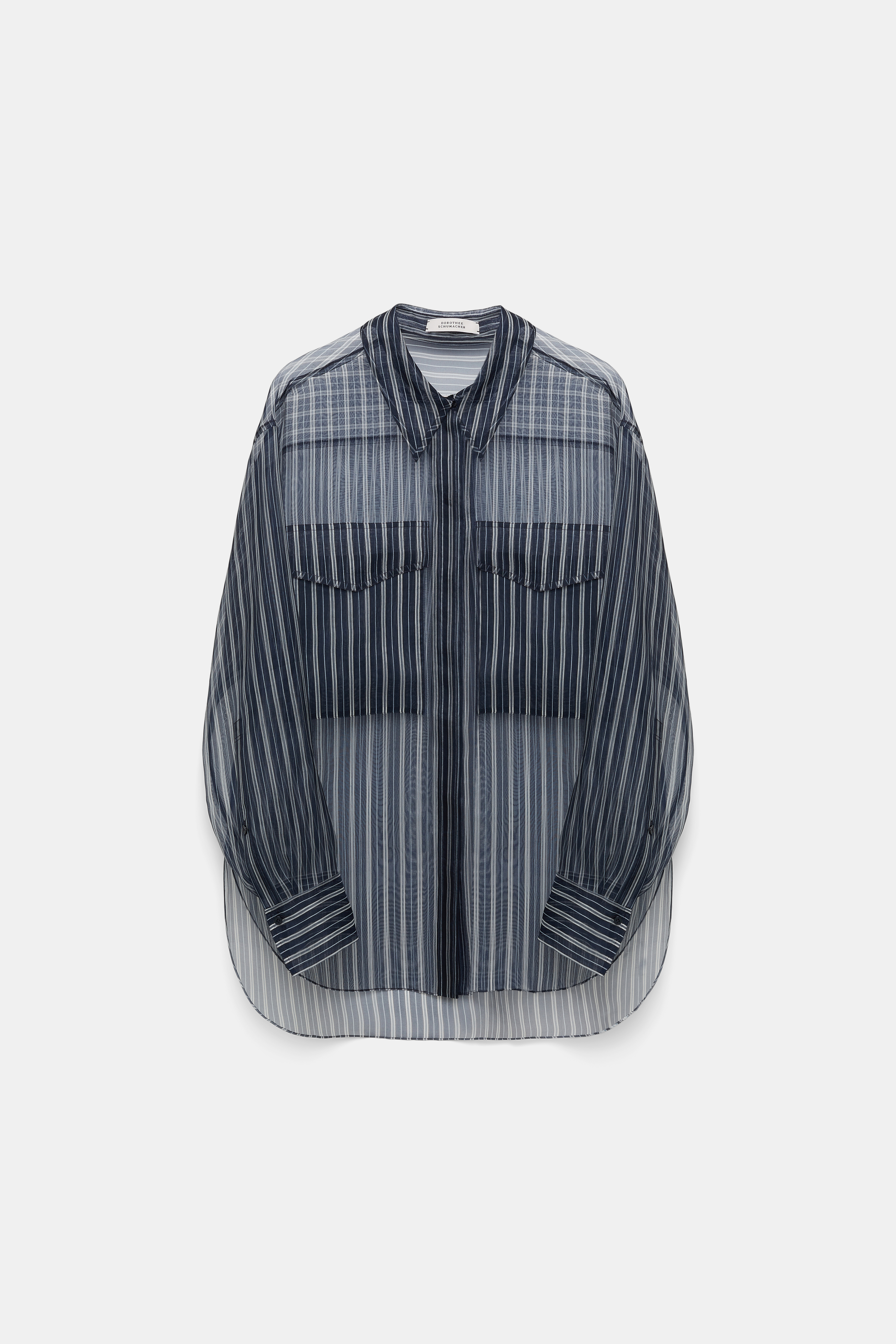 Die Bluse ist aus bedrucktem Seidenorganza gefertigt.