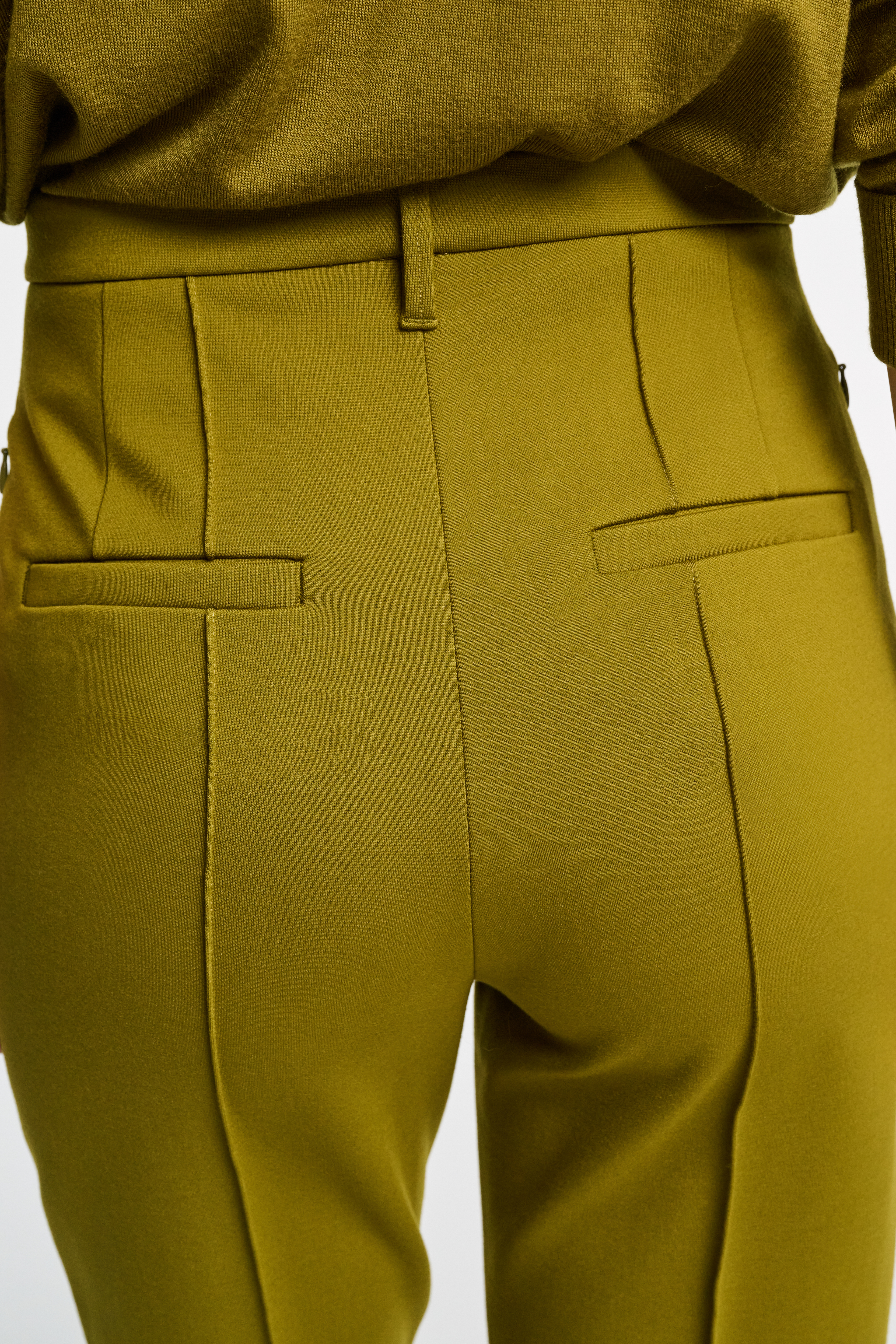 Die Hose hat eine zeitlose Zigaretten-Silhouette und ist aus softem Punto Milano gefertigt.