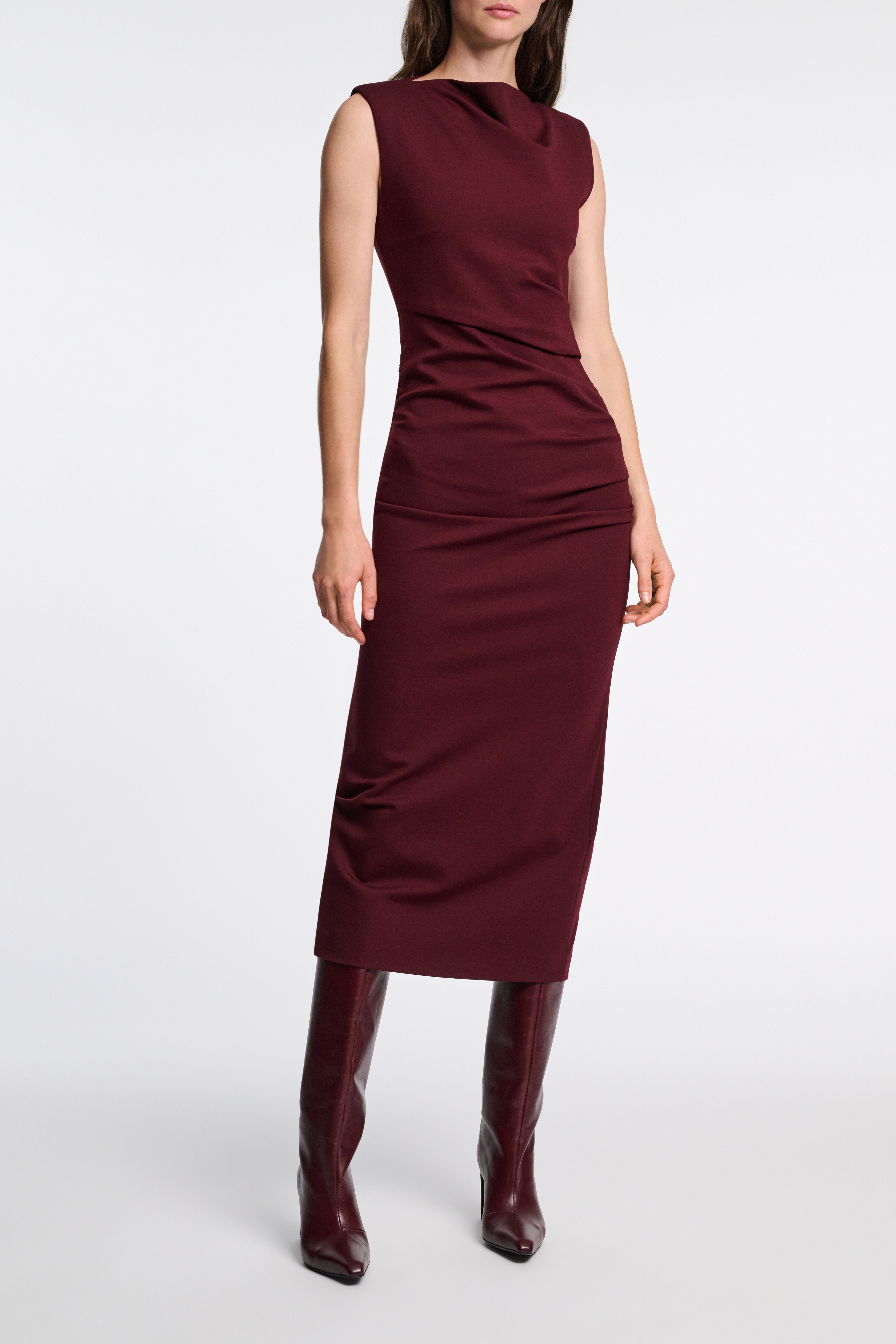 Das Kleid ist aus softem Punto Milano gefertigt und hat eine drapierte Vorderseite.
