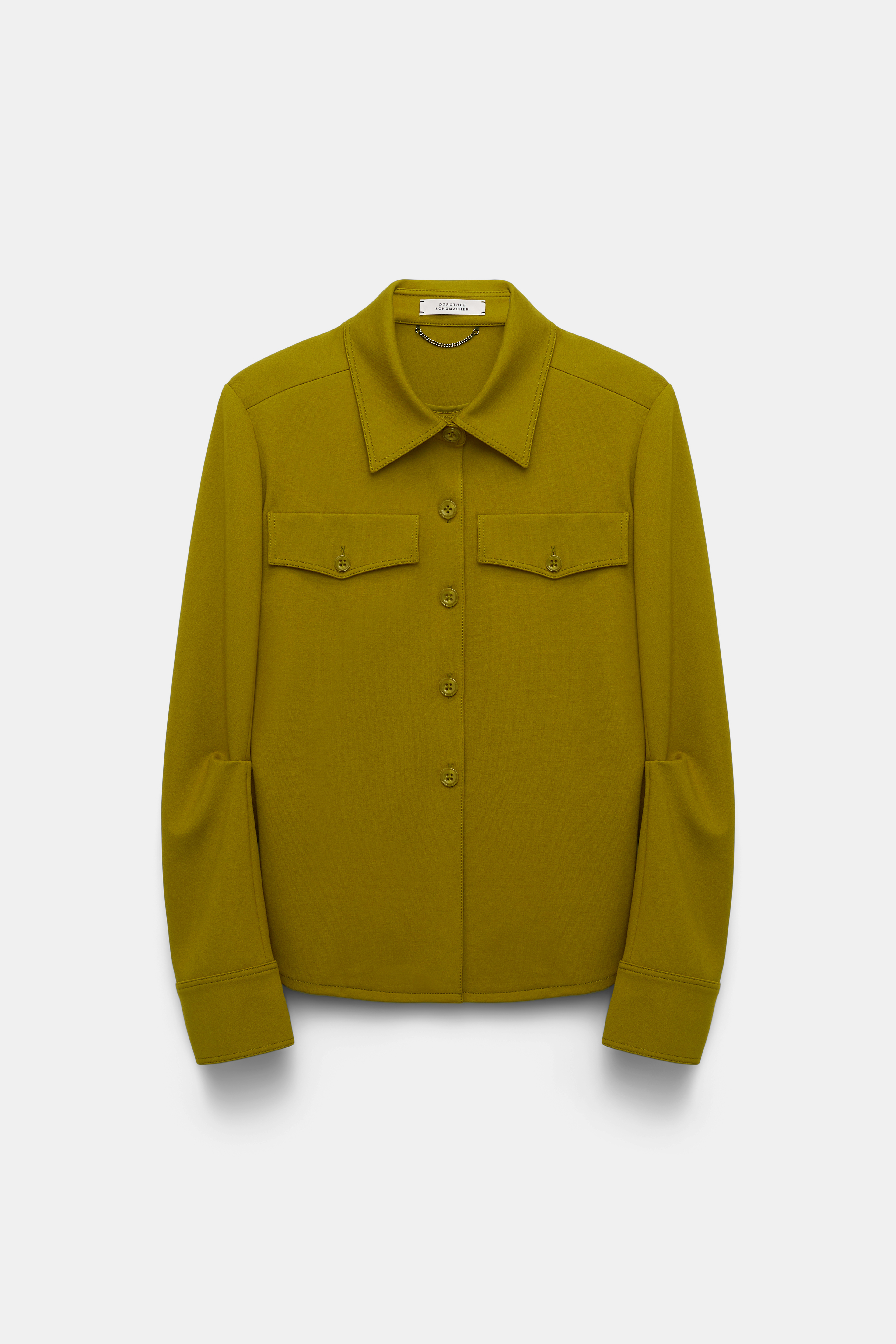 Das Shirt-Jacket ist aus softem Punto Milano gefertigt und sitzt figurnah.