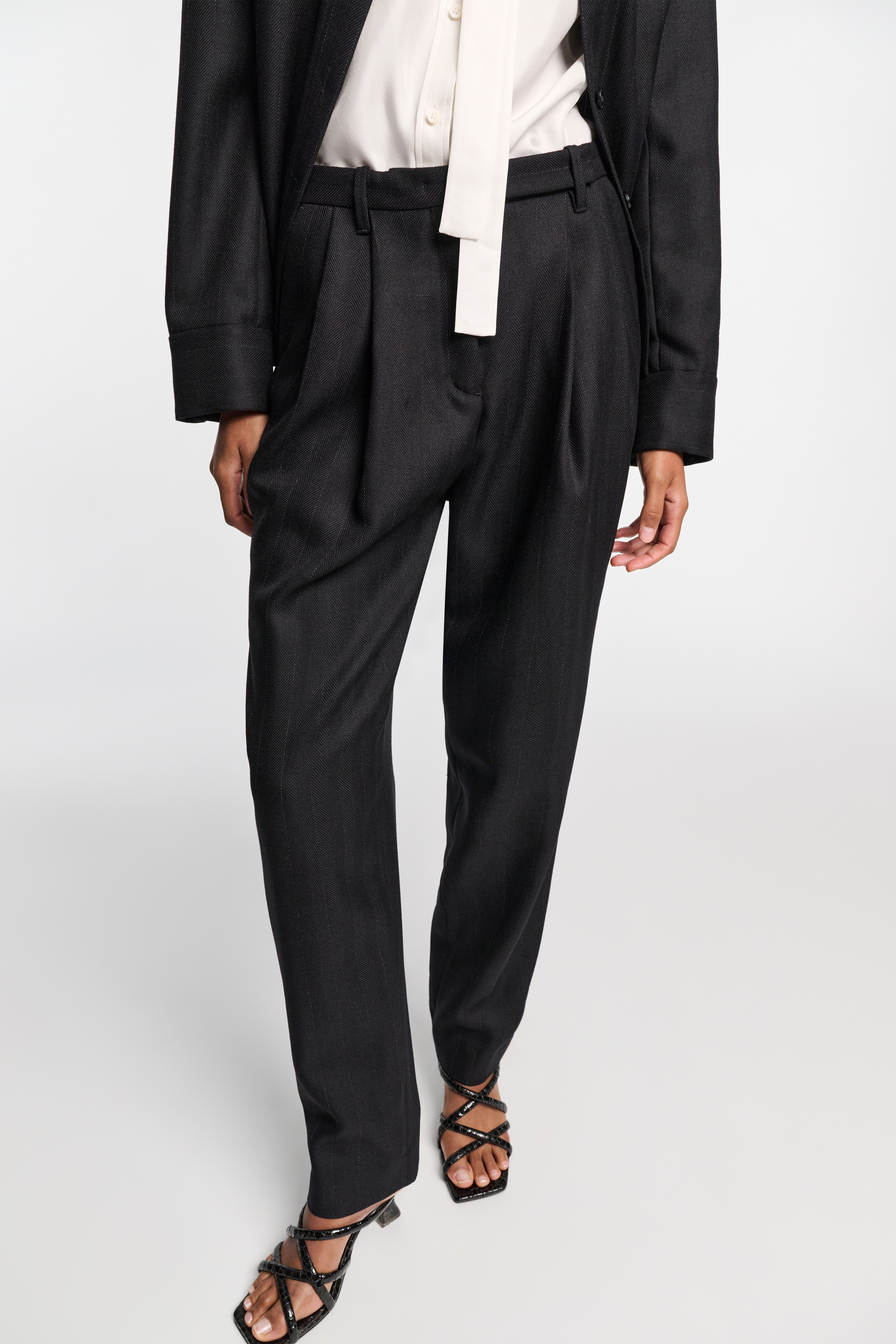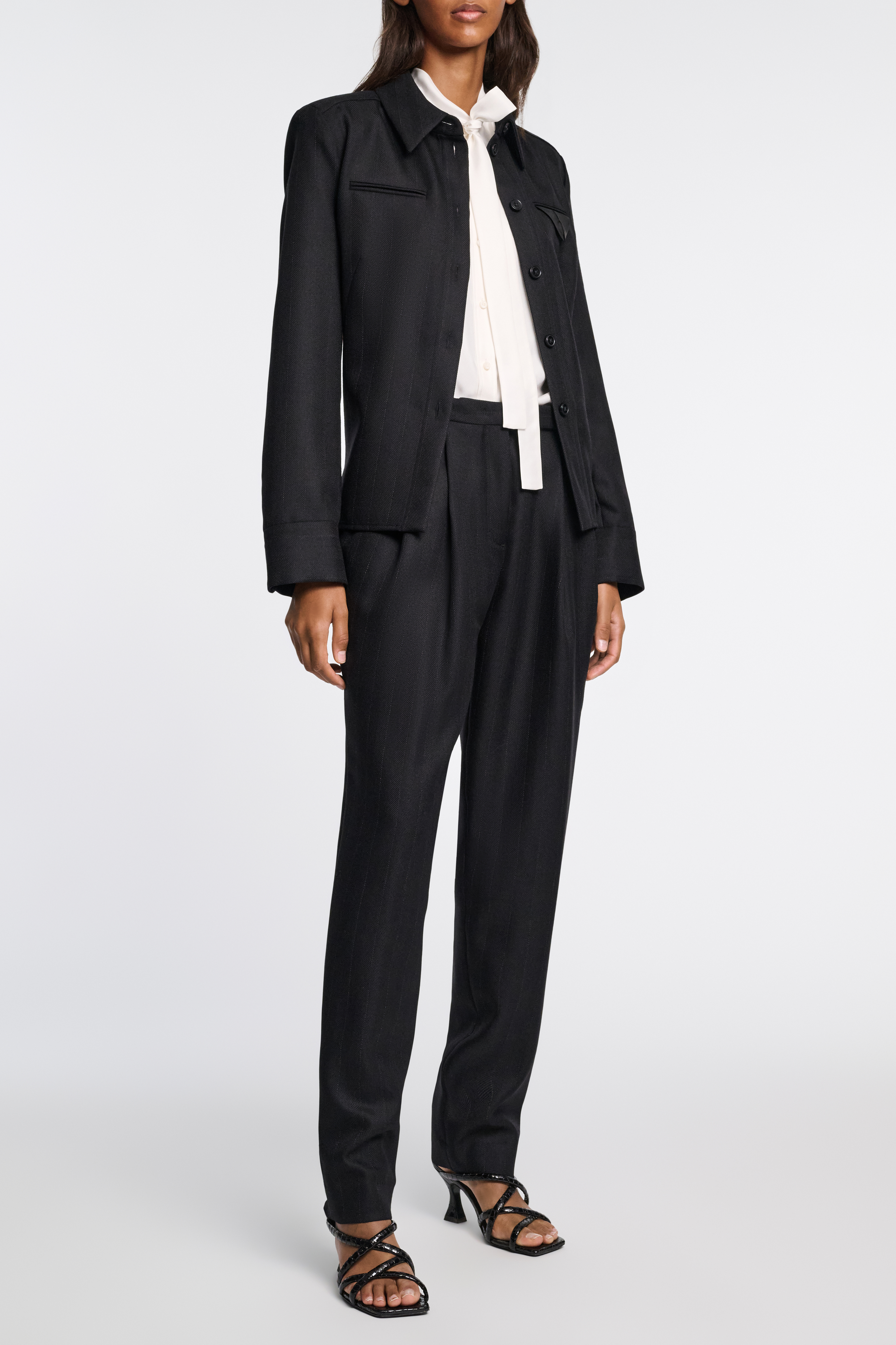 Klassische Nadelstreifen treffen auf einen entspannten Fit.