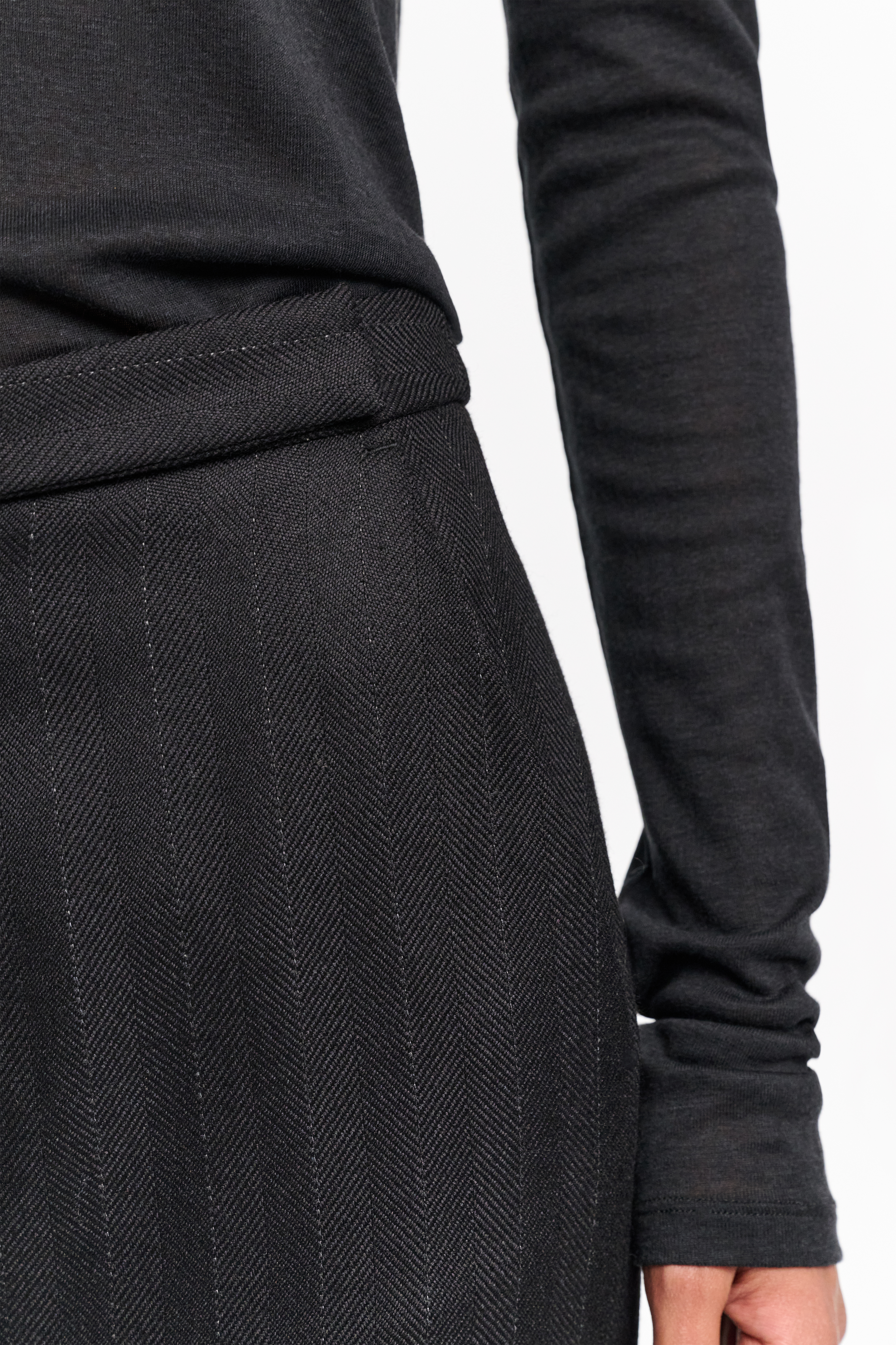 Der Rock ist aus Schurwolle gefertigt und hat einen figurnahen Shape.
