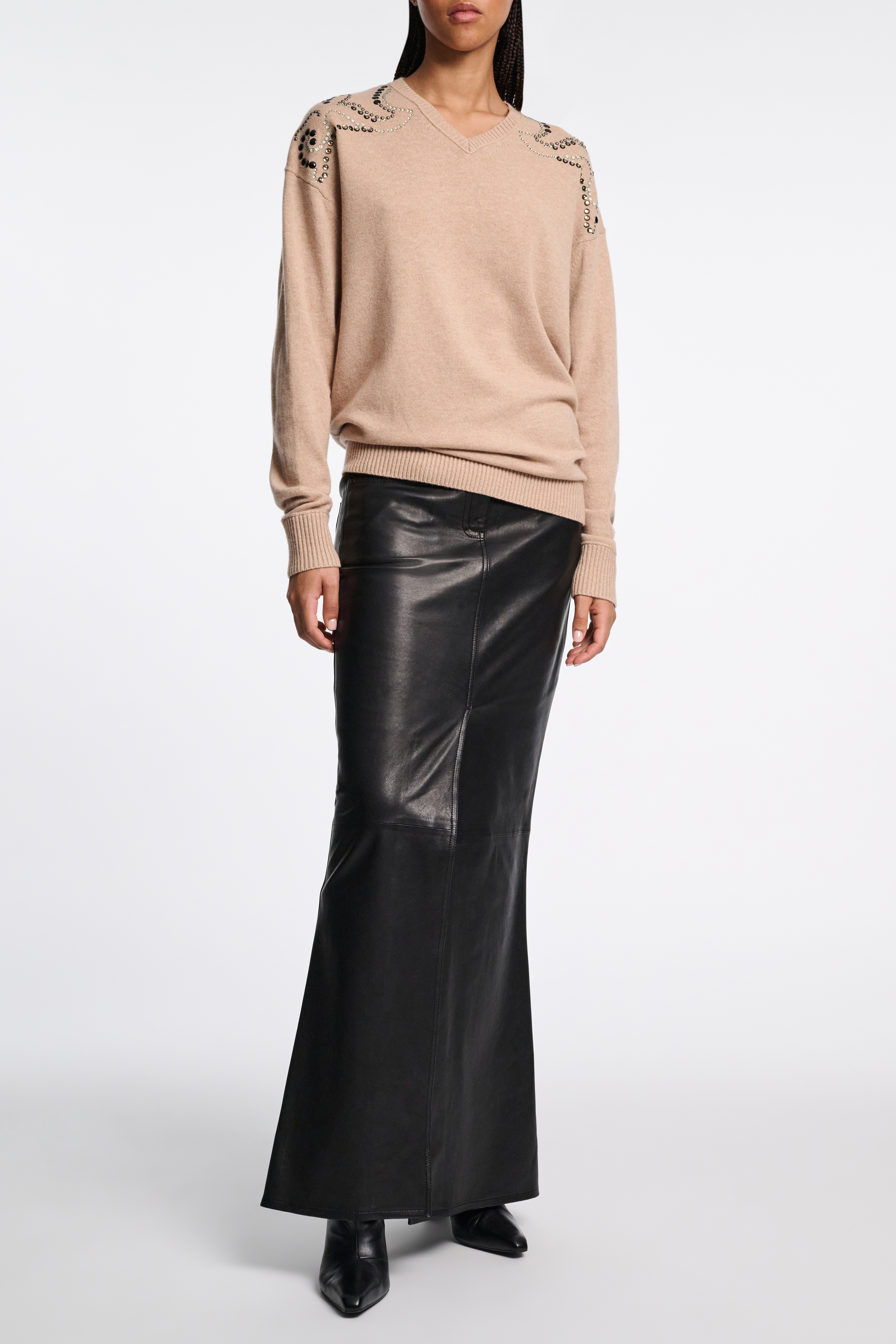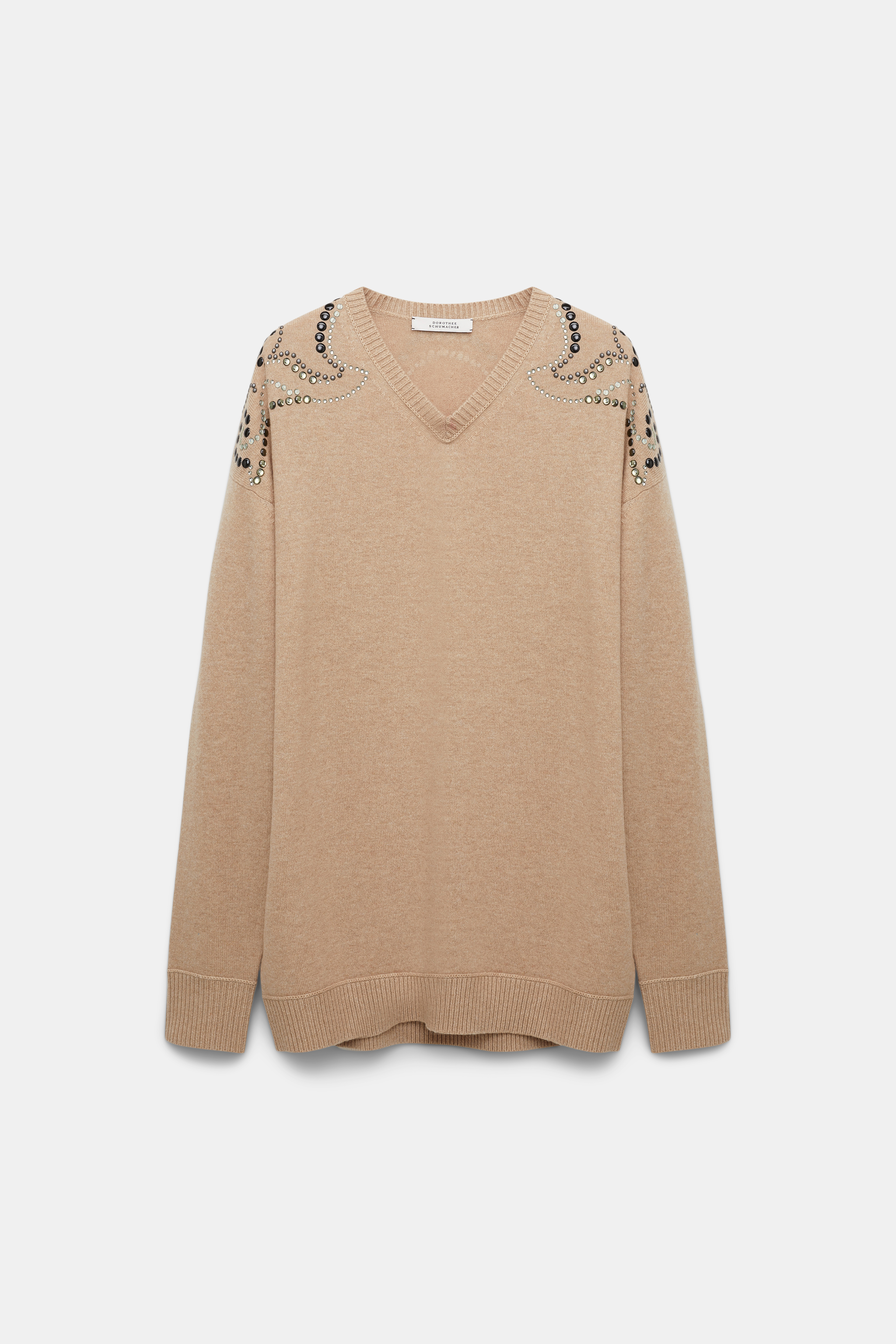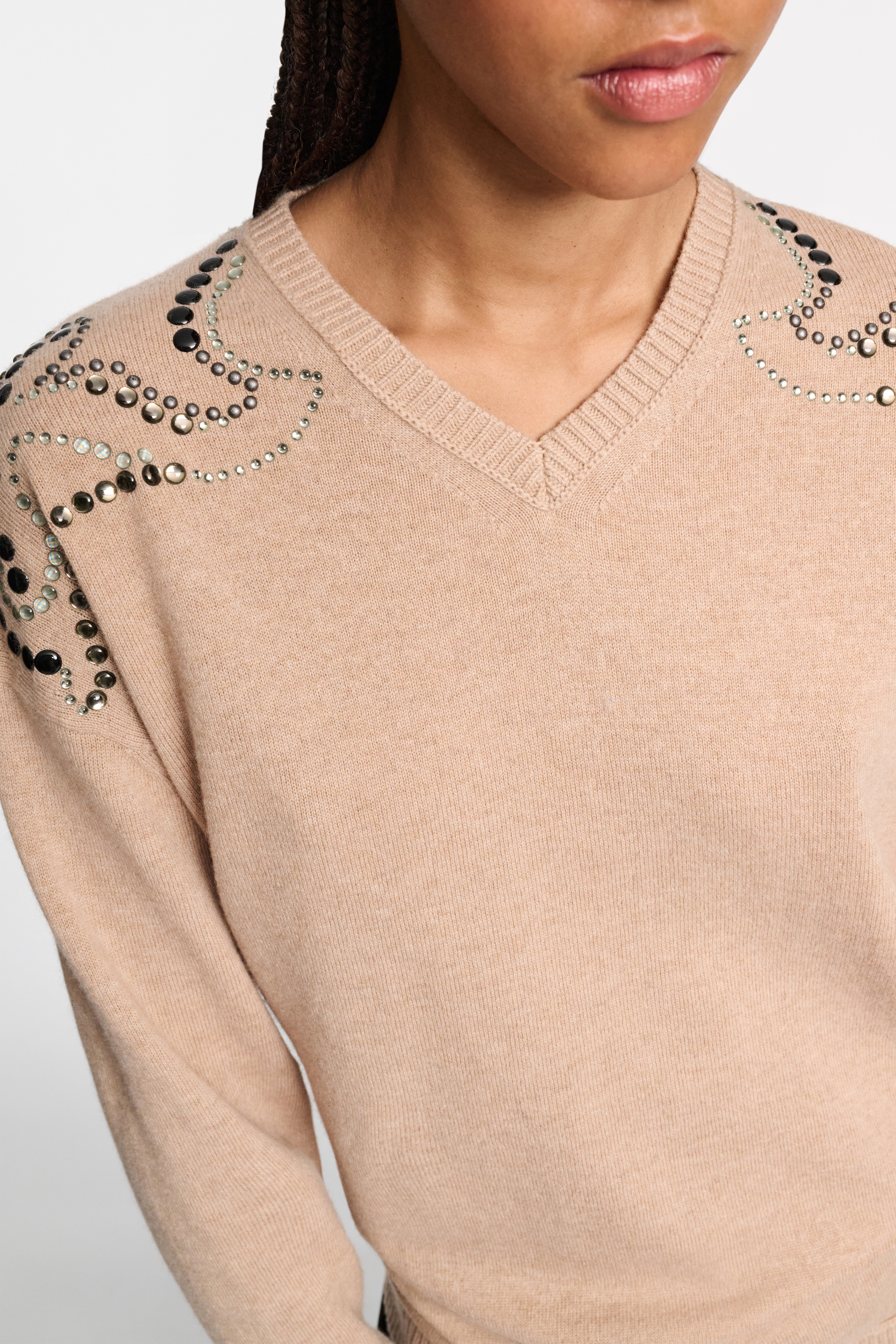 Der Pullover ist aus einem Merino-Kaschmir Mix gefertigt.