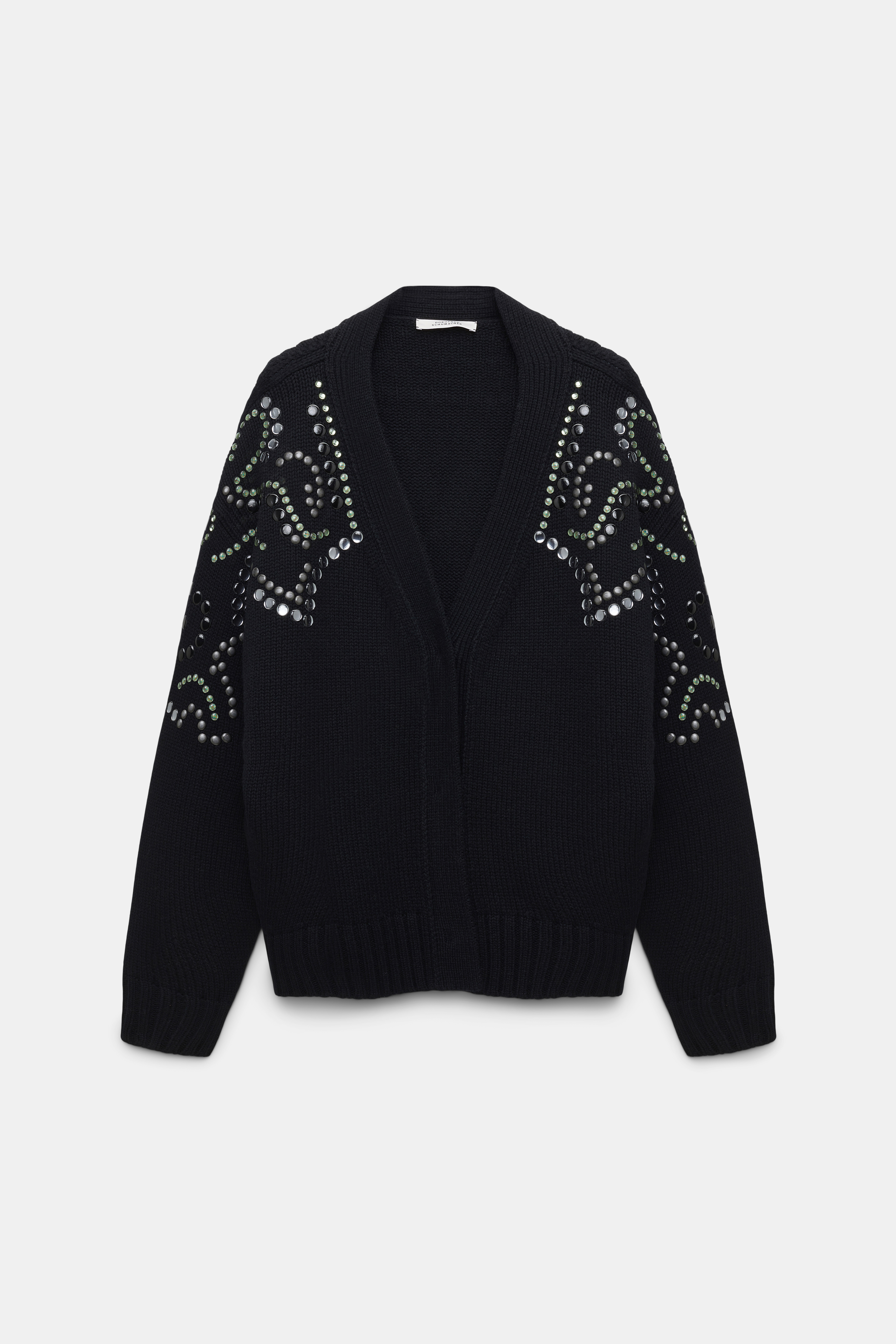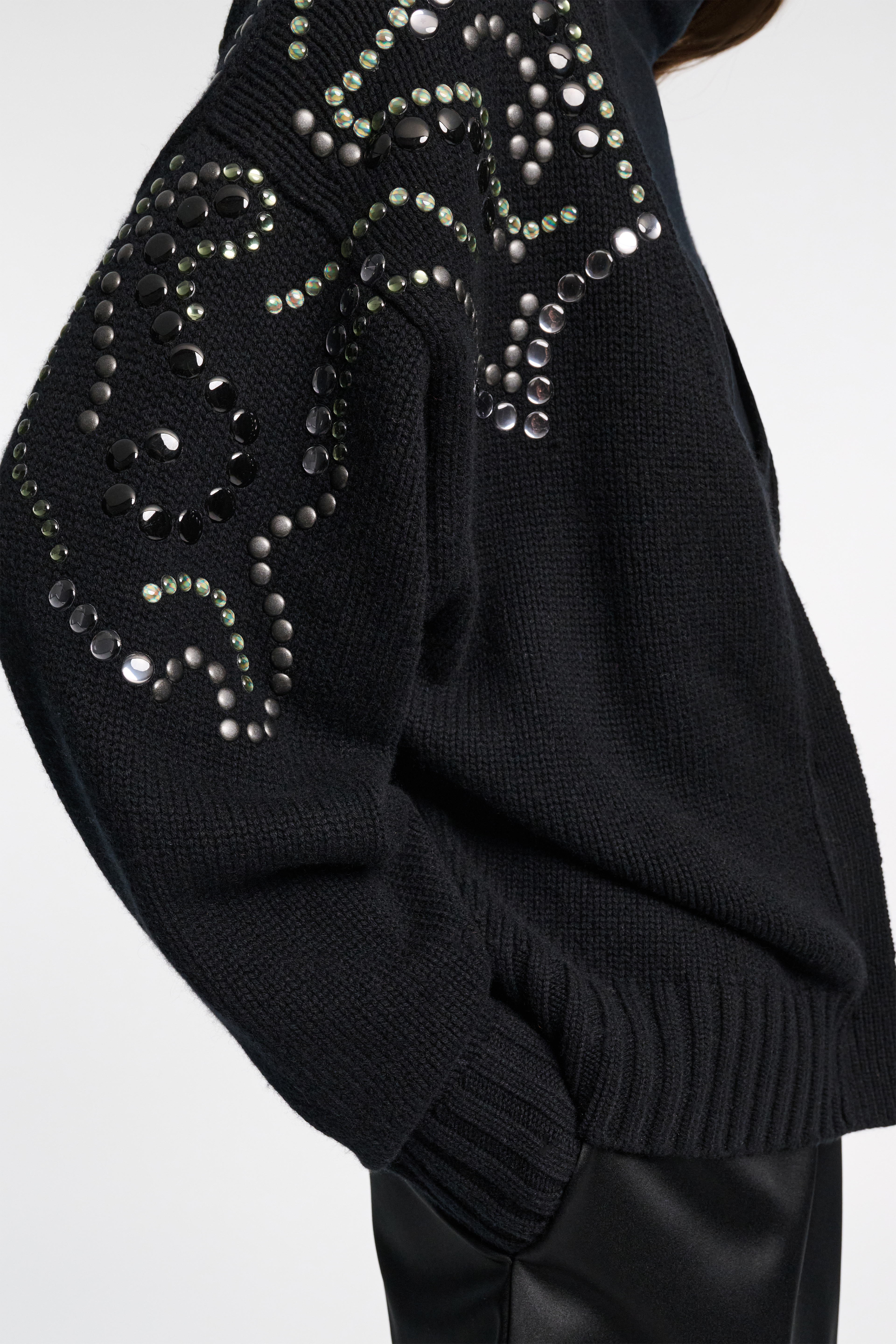 Der Cardigan ist aus einem Merino-Kaschmir Mix gefertigt.