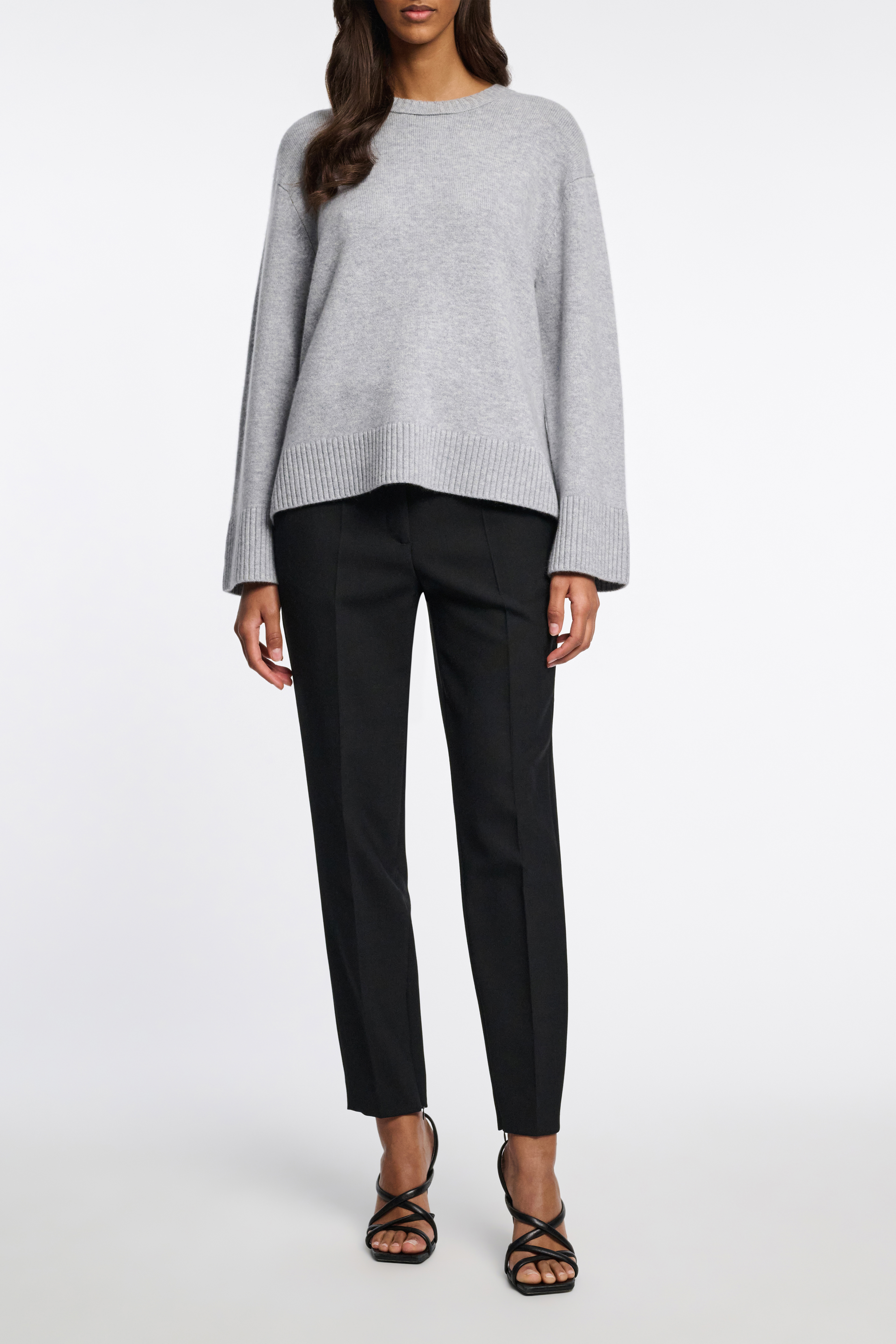 Der Rundhalspullover ist aus einem besonders soften Kaschmir-Mix gefertigt.