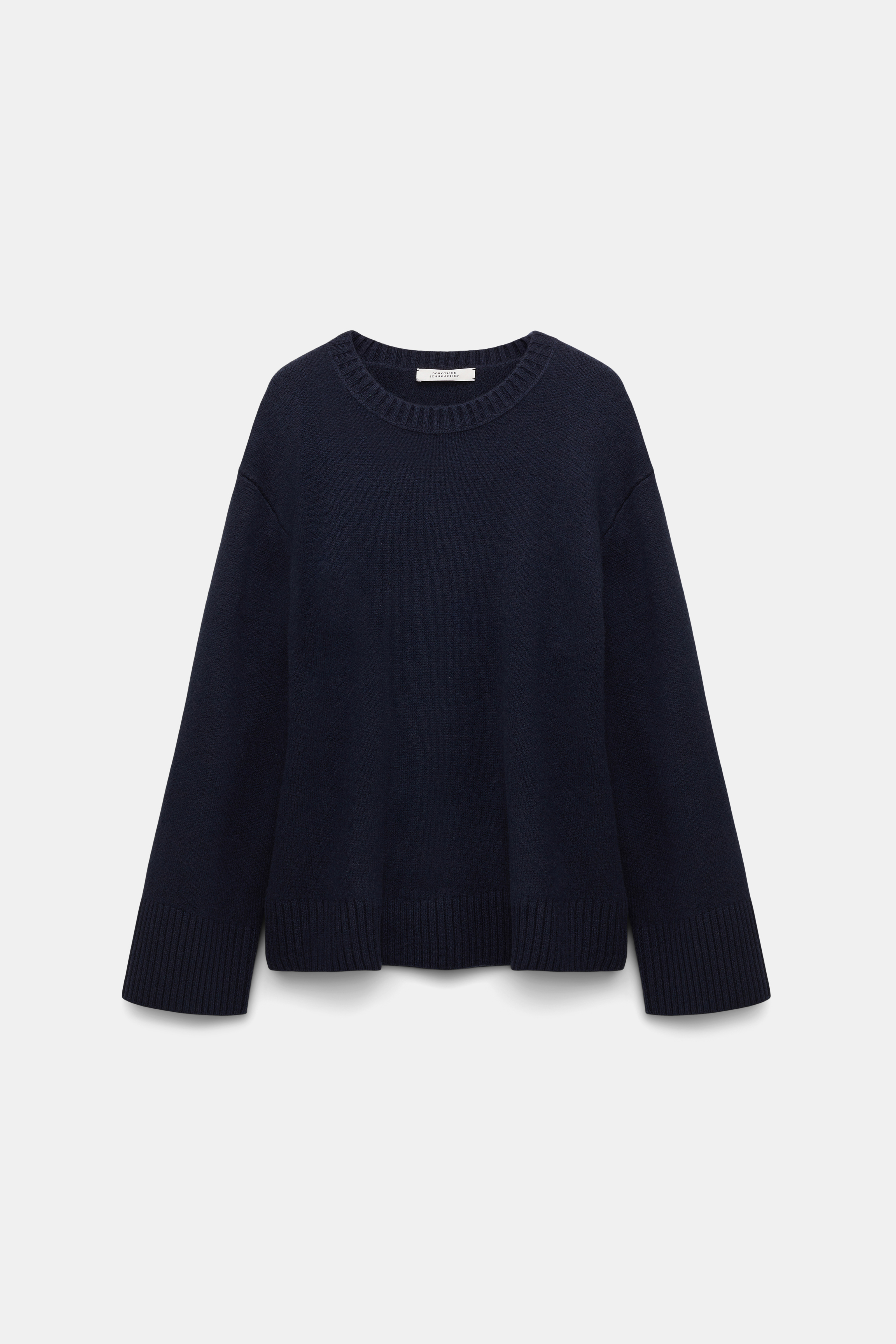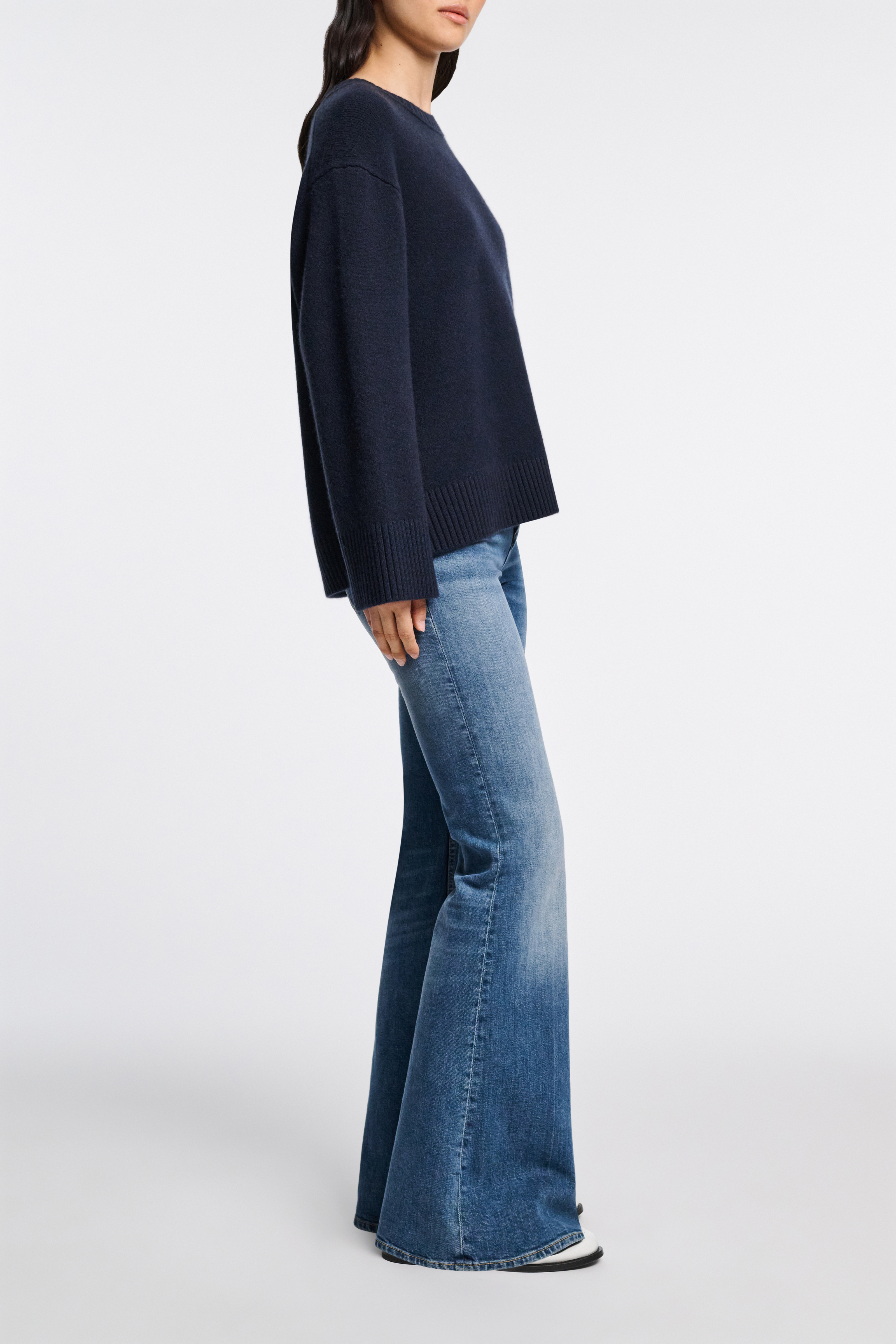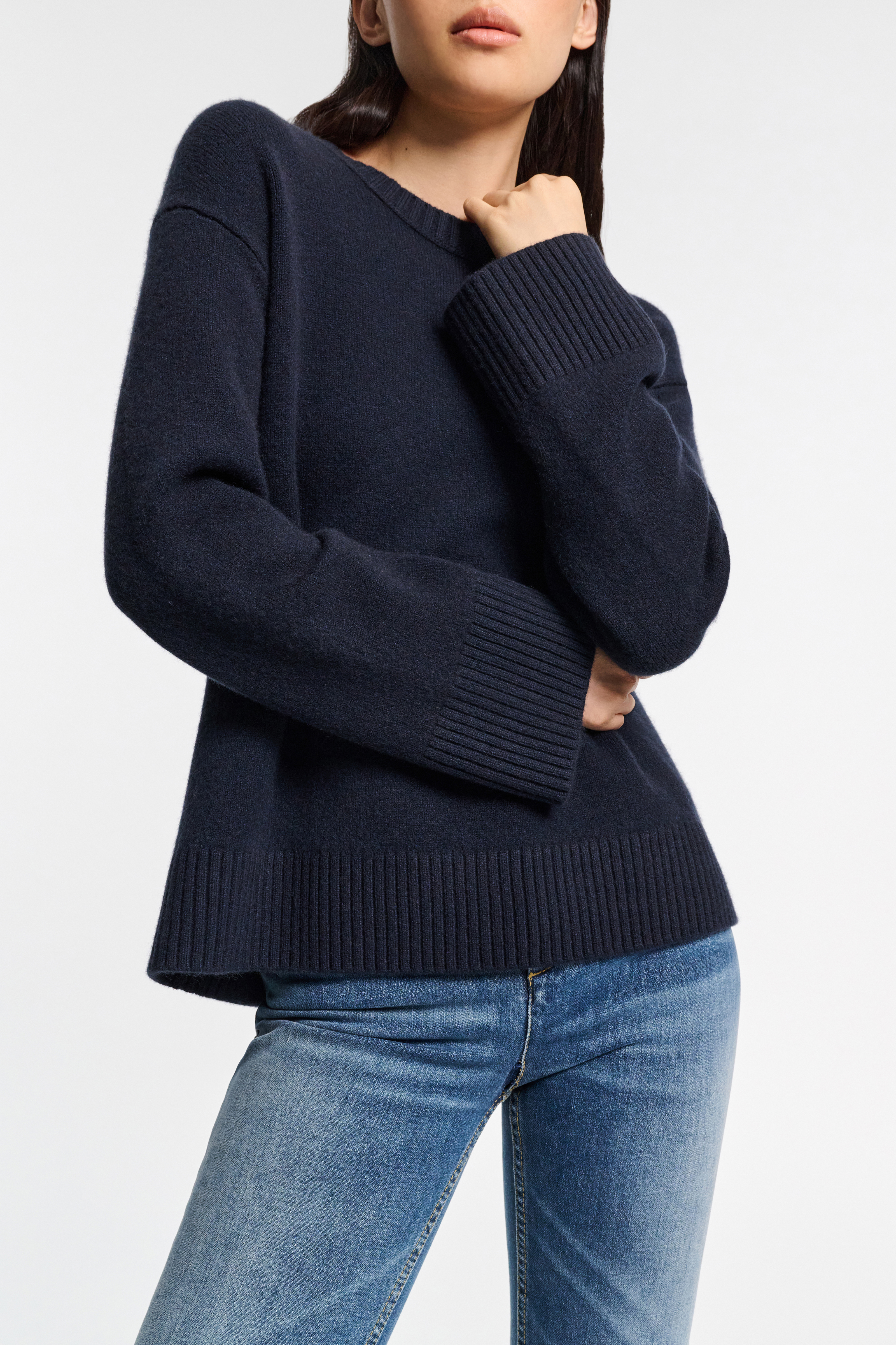 Der Rundhalspullover ist aus einem besonders soften Kaschmir-Mix gefertigt.