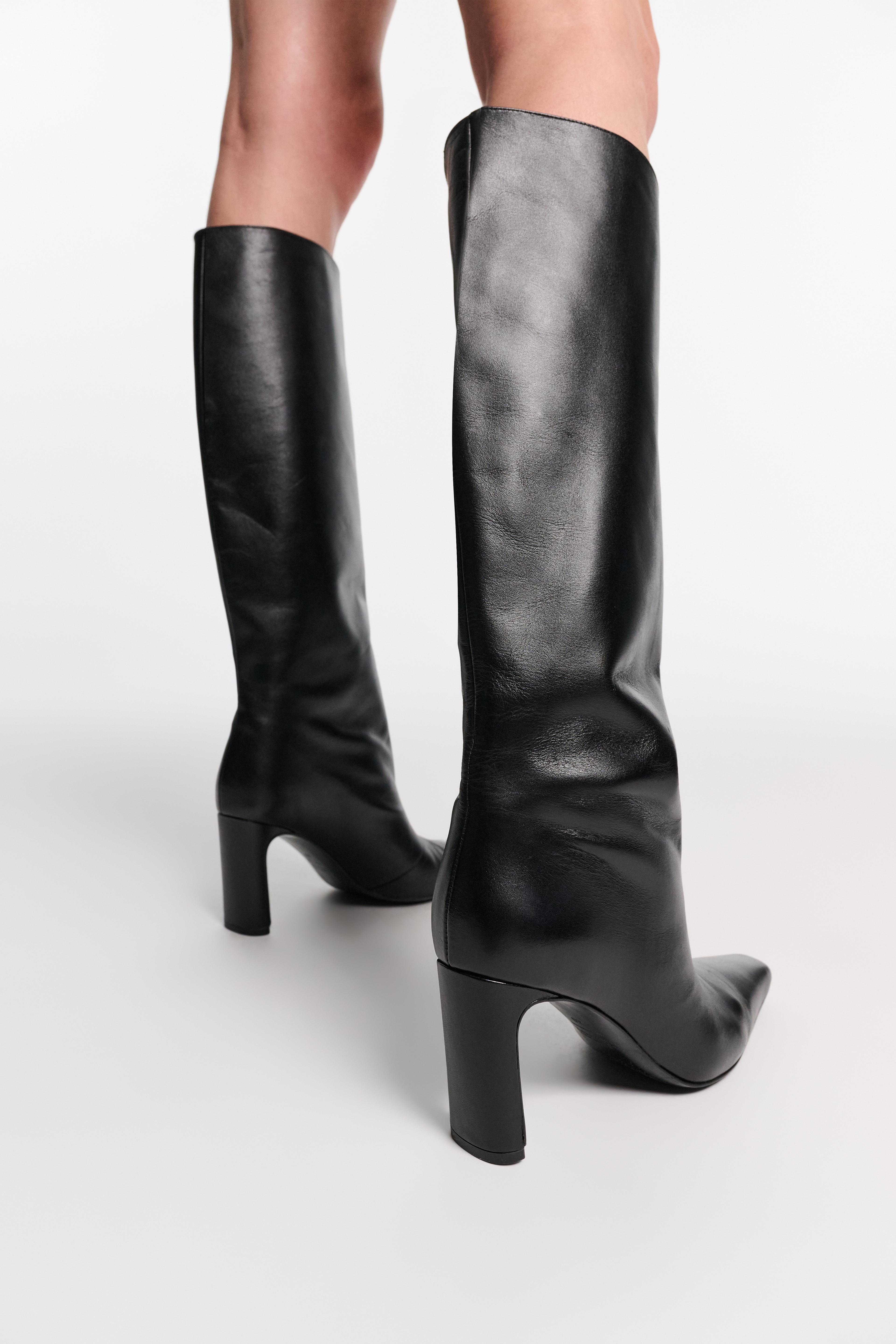 Super softes Kalbsleder trifft auf einen hohen, weiten Schaft und einen mit Leder bezogenen Absatz.