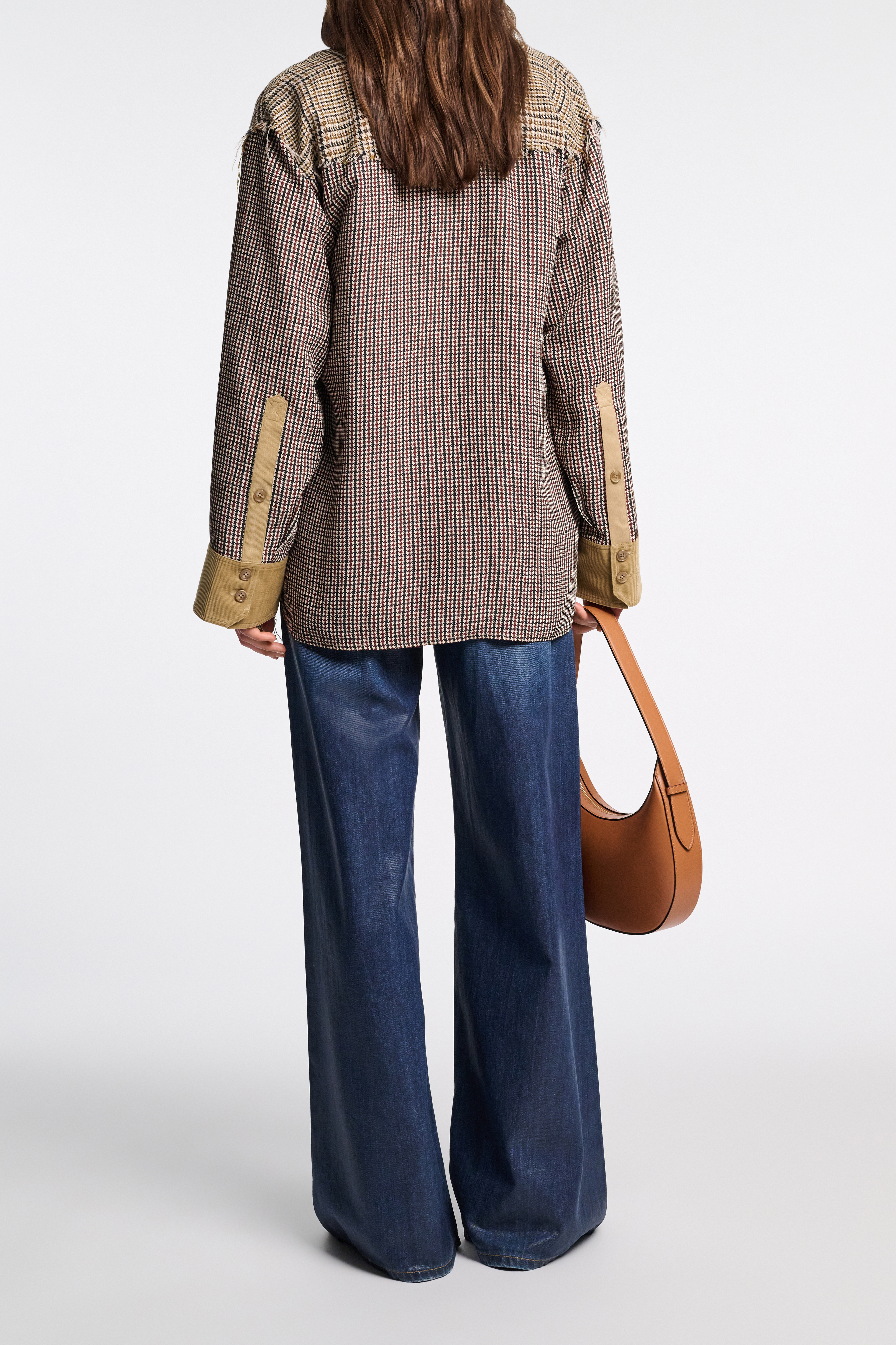 Das Shirt-Jacket ist im Patchwork-Style gefertigt.