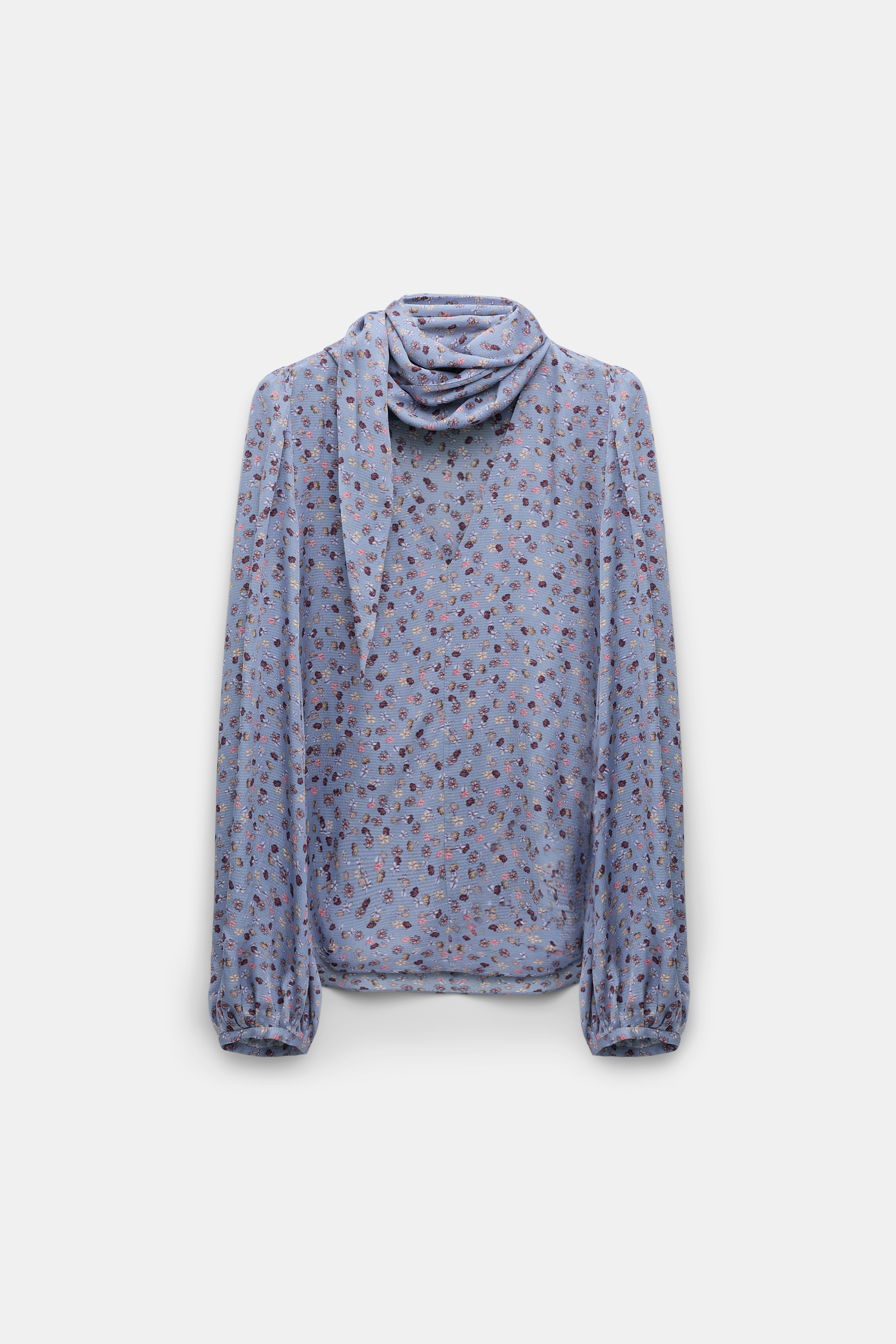 Die Bluse ist aus gehämmertem Satin gefertigt und hat einen floralen Allover-Print.
