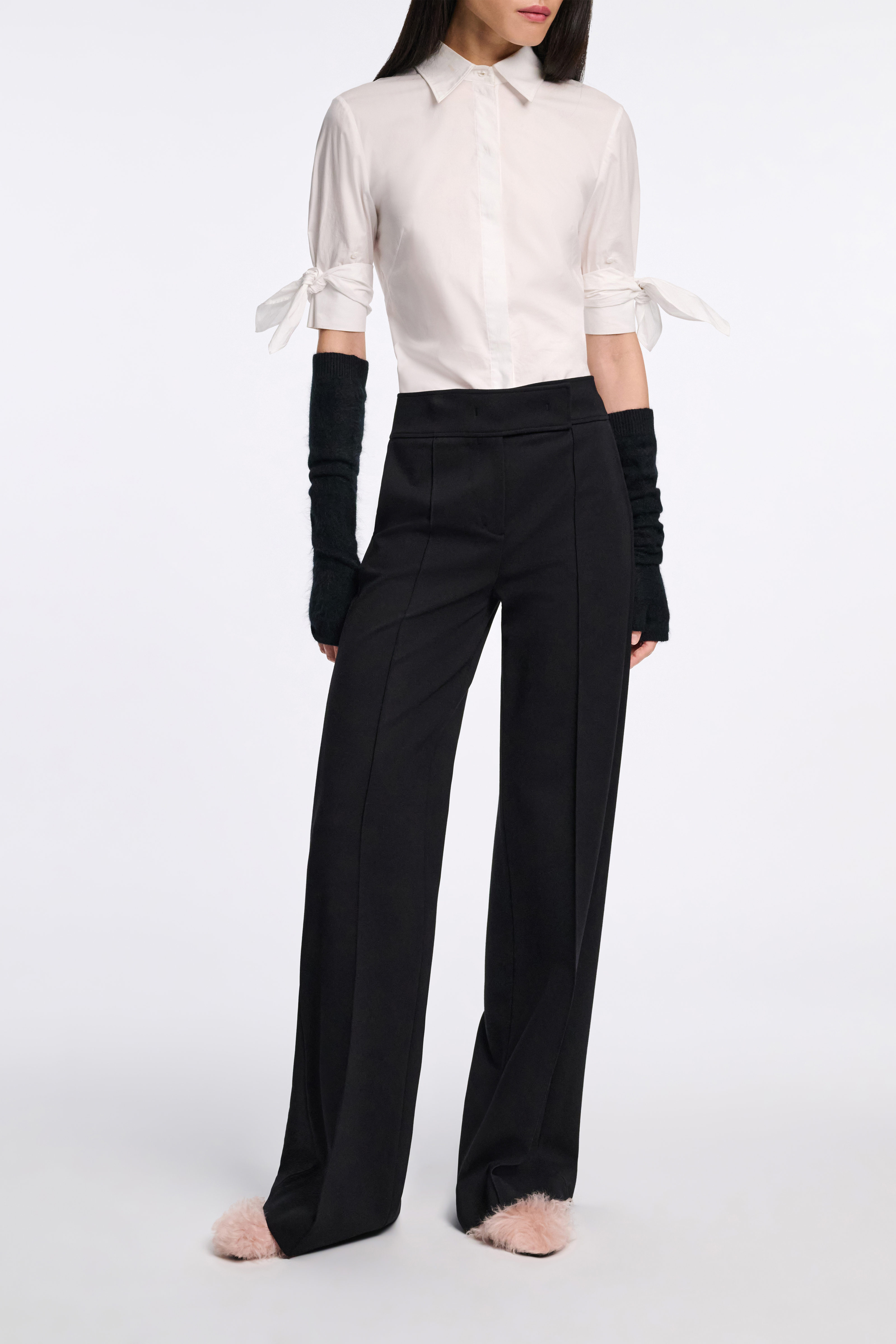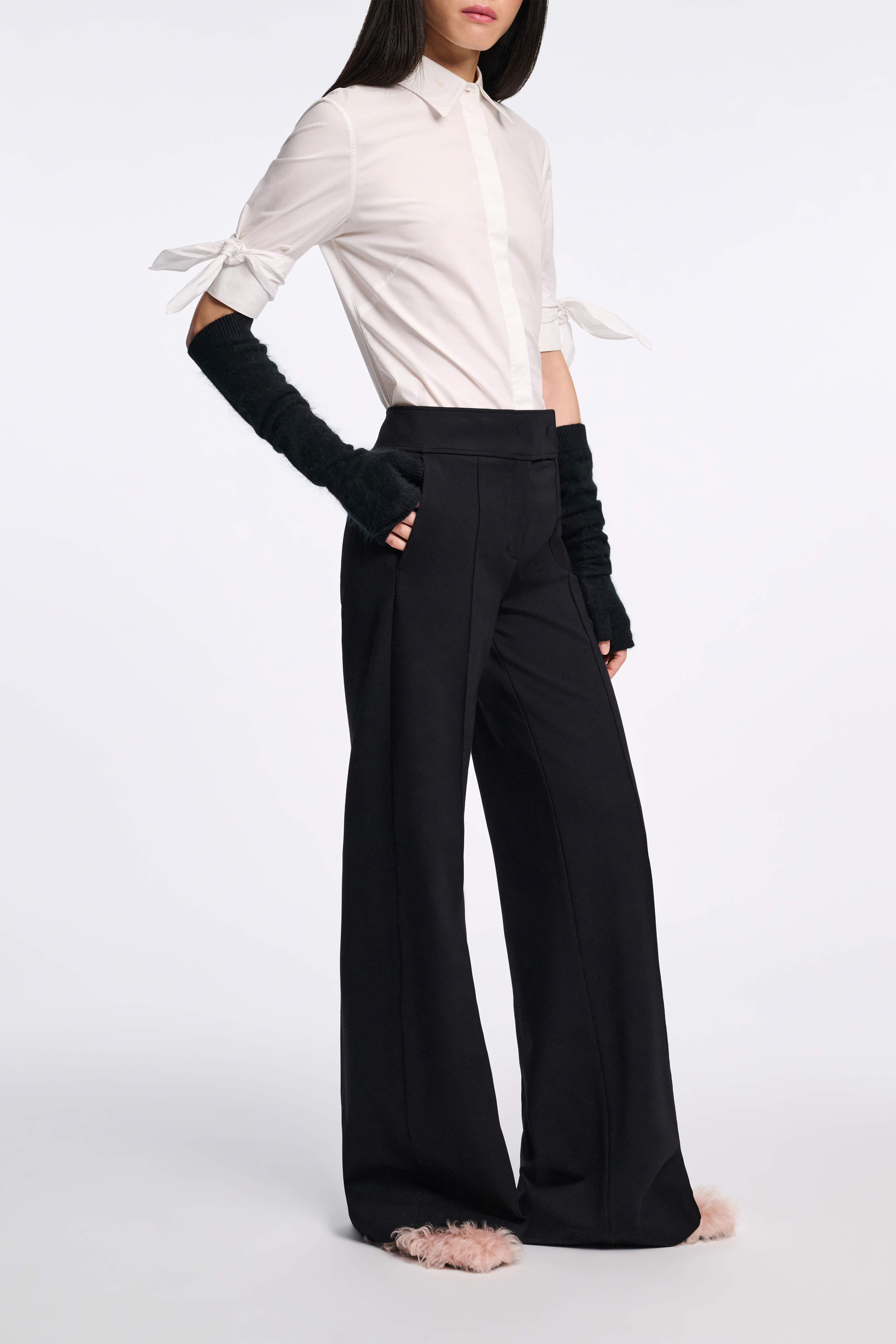 Abnehmbare Binde-Elemente an den Manschetten zeichnen das Design aus.