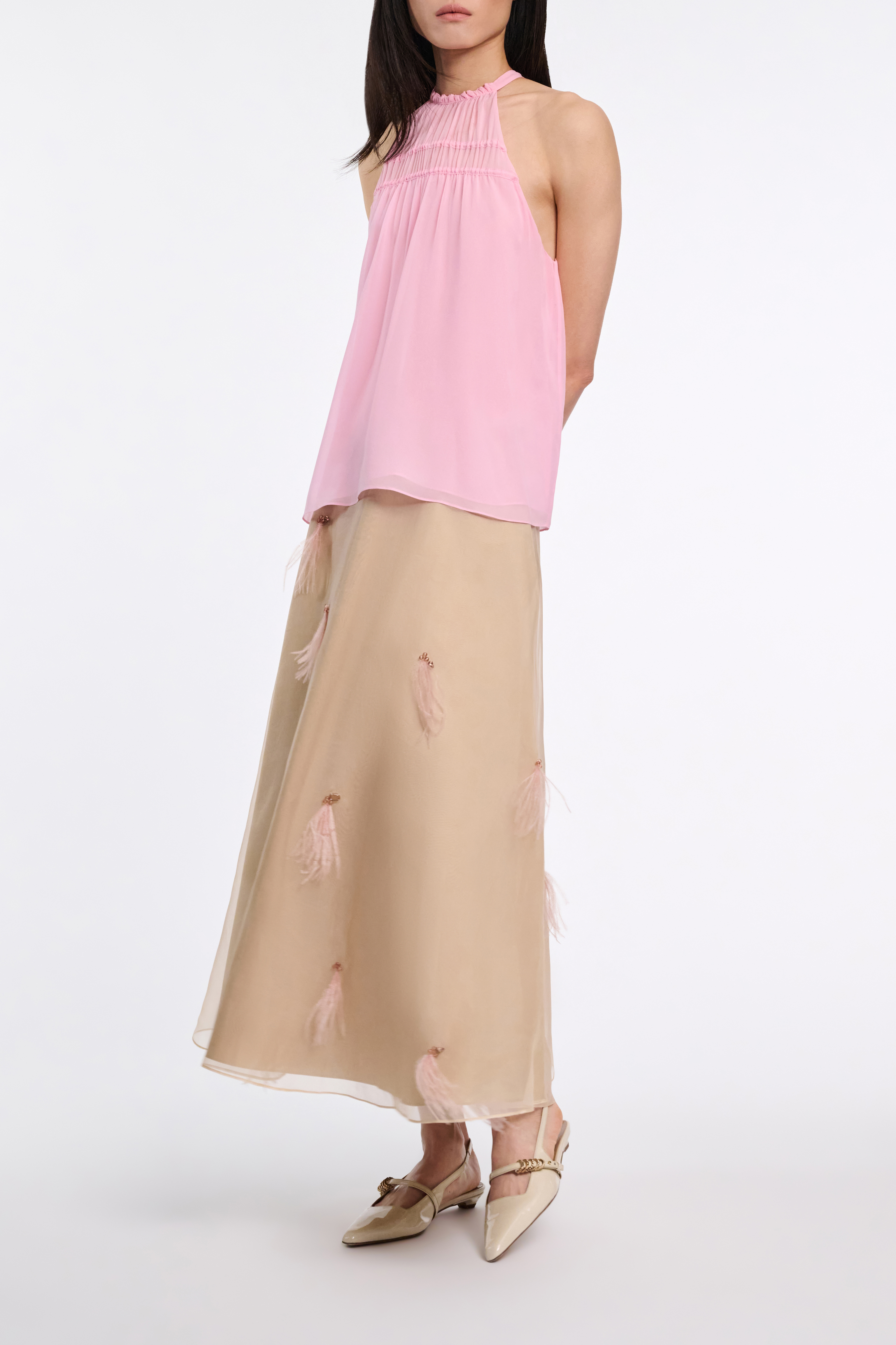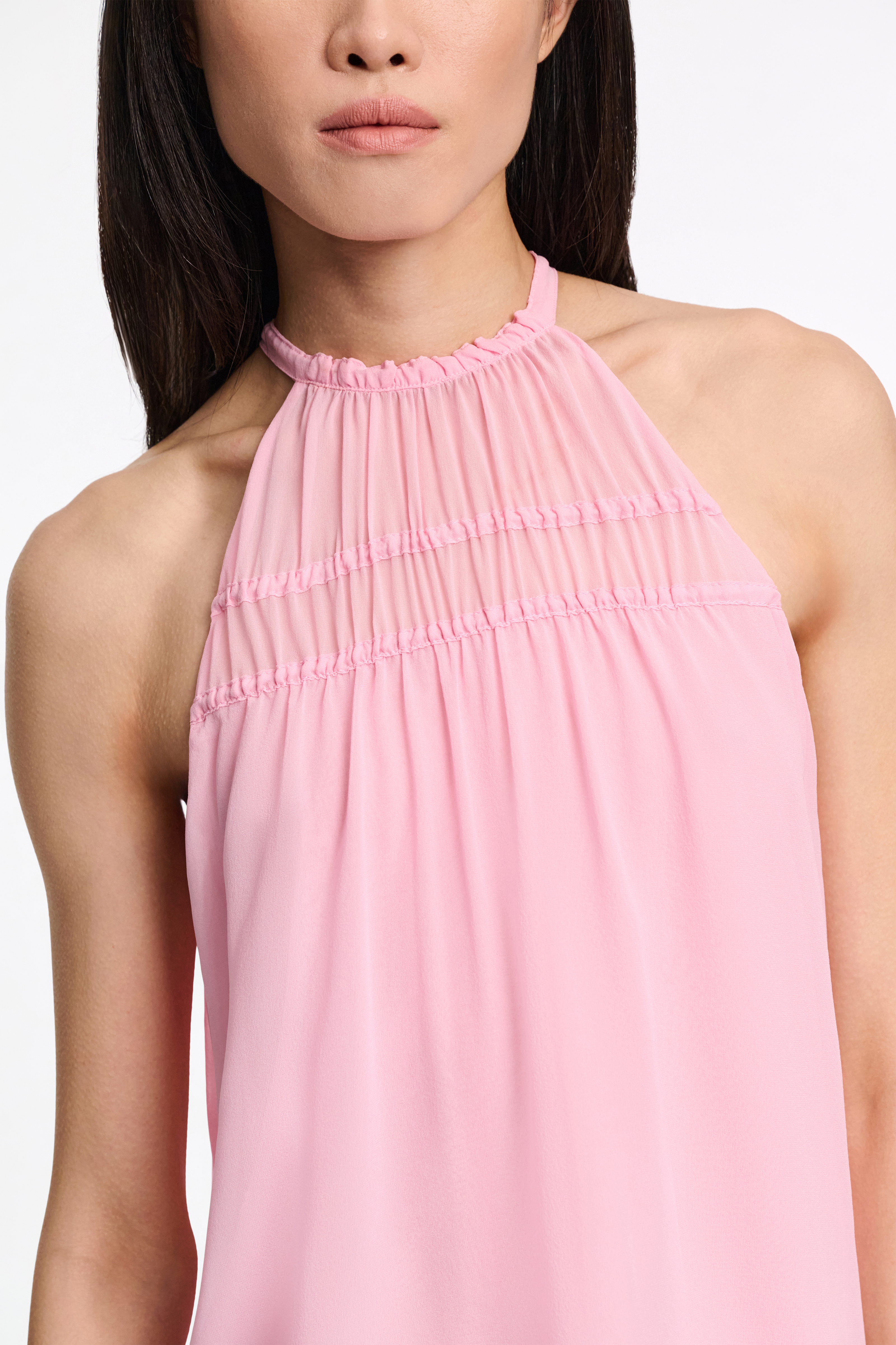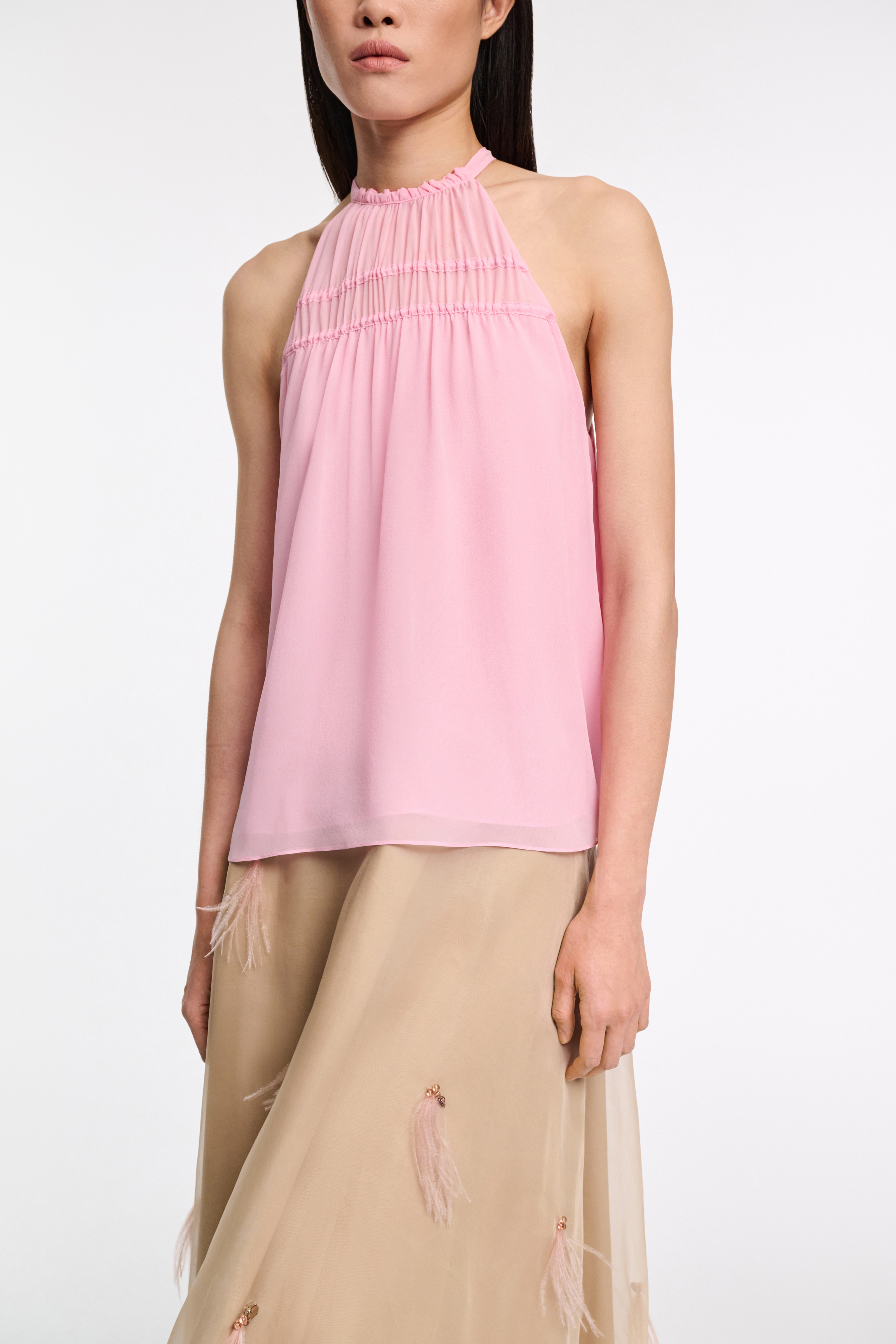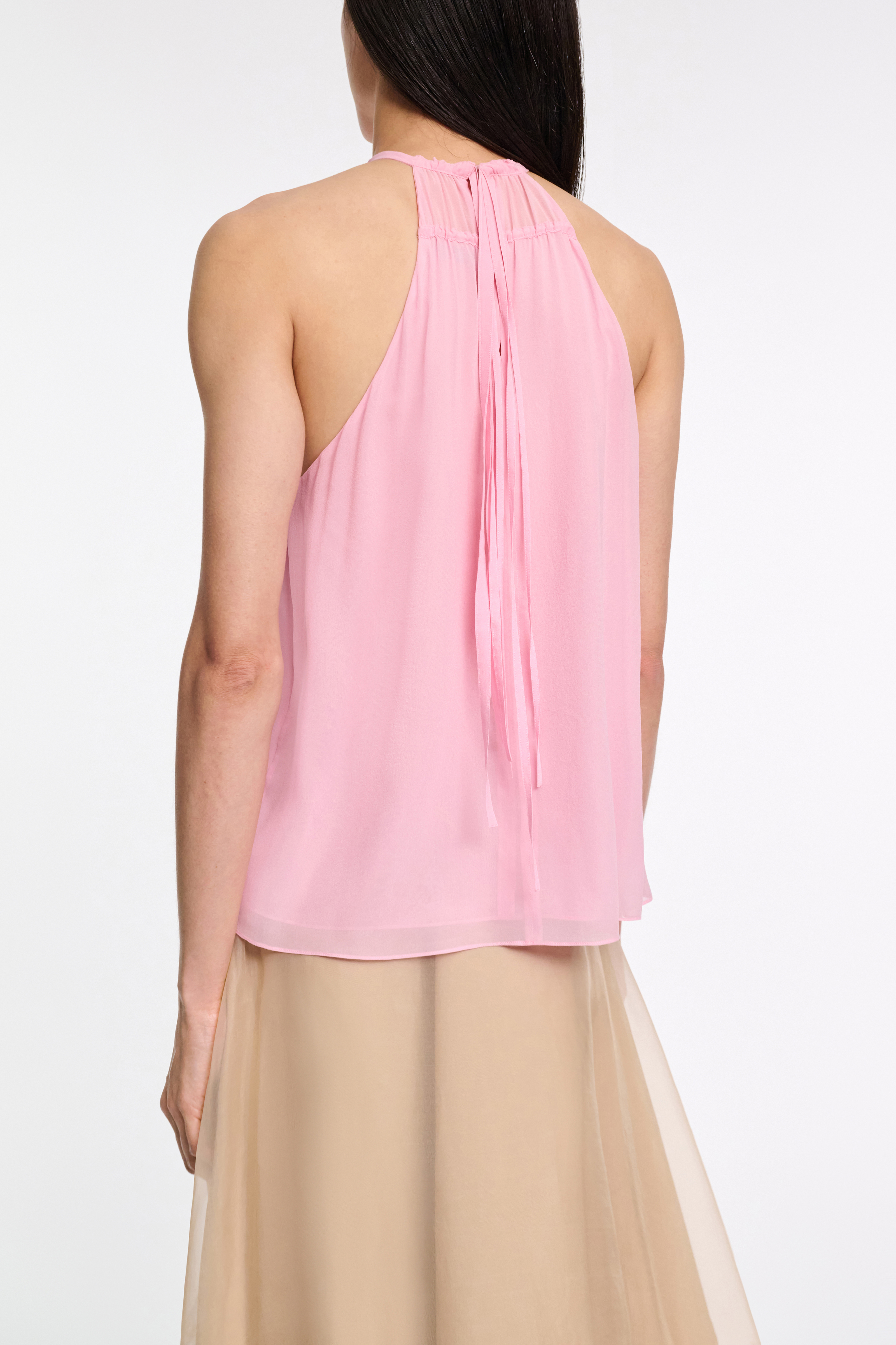 Das Top aus Seiden-Georgette hat eine Neckholder-Silhouette, die durch lange Tapes hinten ausgezeichnet wird.