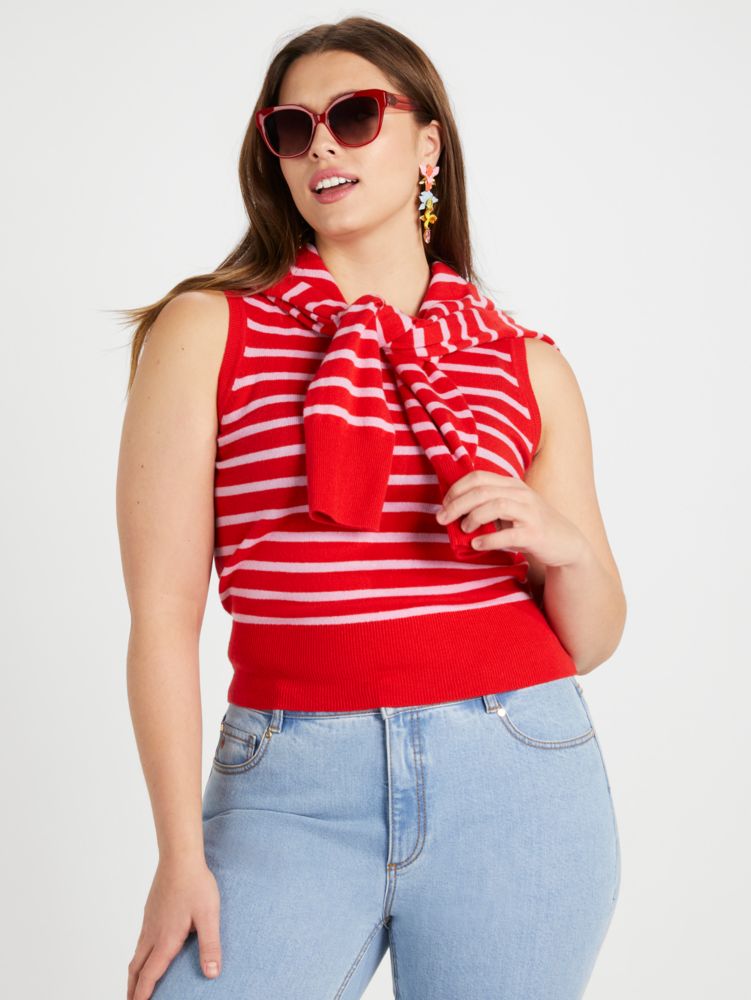 1 % Elasthan Shirt Mit Rundhalsausschnitt Gestricktes Top Länge Der Größe M Beträgt 54,6 Cm Ab Schulter Gemessen Zum Hineinschlüpfen Nur Chemische Reinigung Importiert Style No Kb079 Kate Spade Breton Stripe Oberteil Aus Kaschmir Für Frauen In Frische Tomate/erdbeershake
