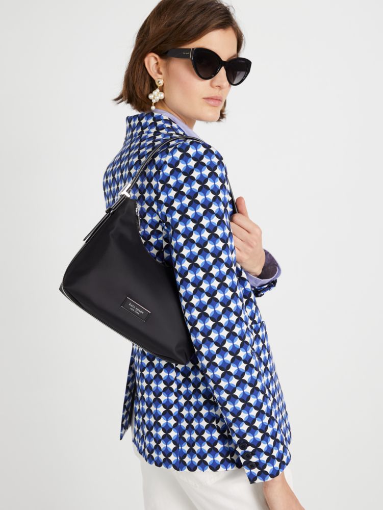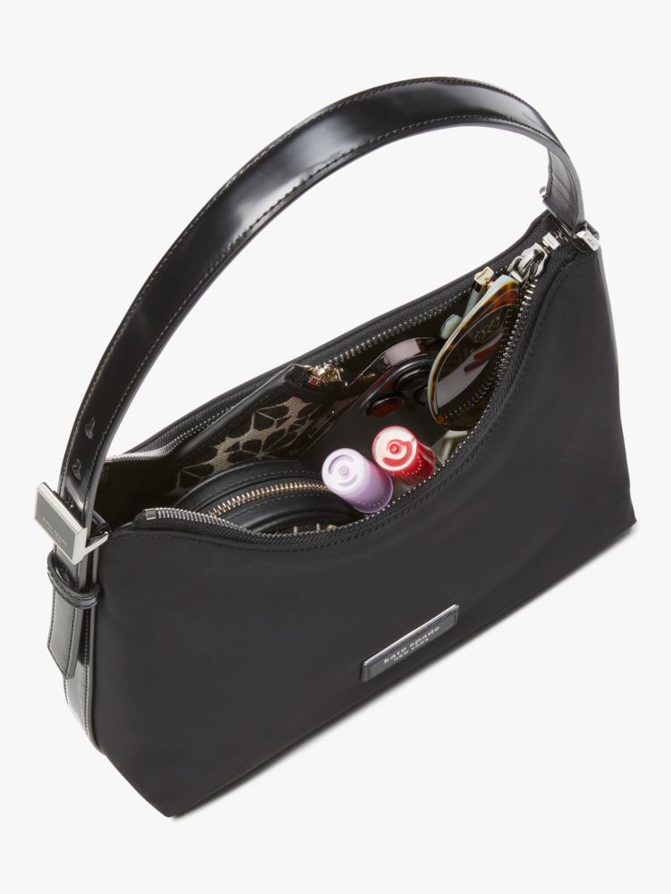 1 Cm 100 % Recyceltes Nylon Mit Besatz Aus Glattem Leder Futter Aus 100 % Recyceltem Polyester Logo-Plakette Schultertasche Mit Reißverschluss Reißverschlussfach Innen Einschubfach Innen Mit Platz Für Das Aktuelle Iphone Importiert Style No Kb138 Kate Spade The Original Bag Icon Ksnyl Schultertasche Aus Nylon, Klein Für Frauen In Schwarz Recycled