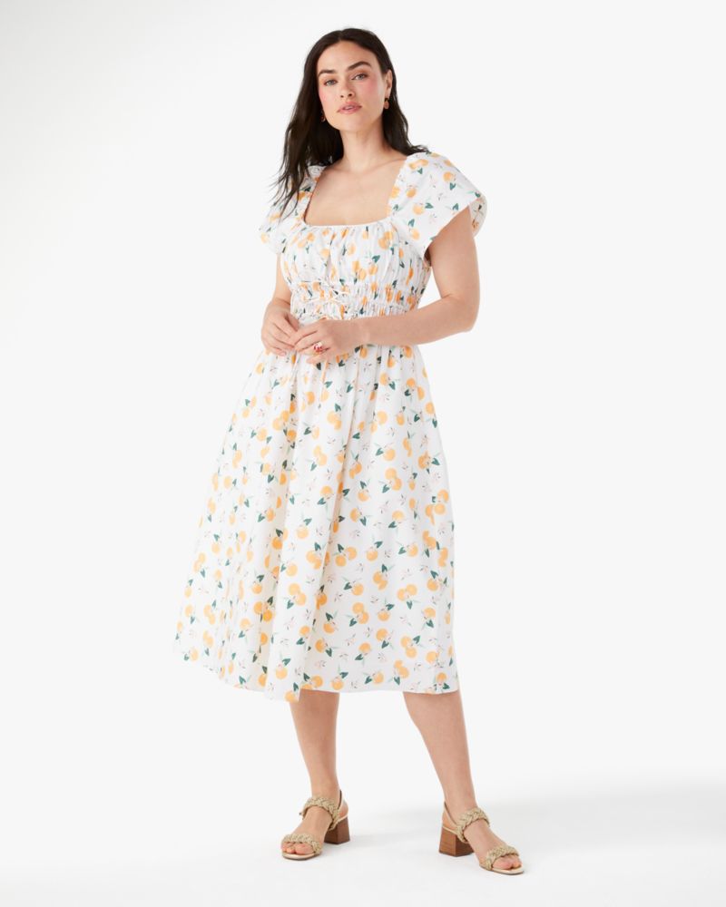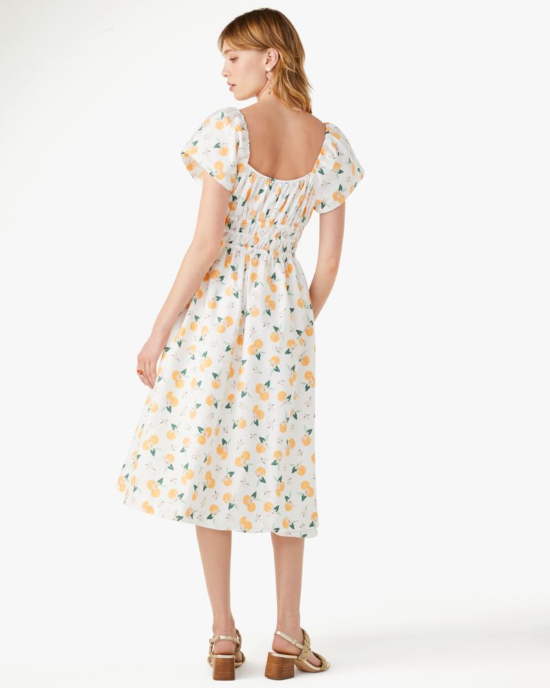 Und Das Beste? Du Kannst Selbst Entscheiden, Ob Du Den Style Schick Mit Absatzschuhen Und Funkelnden Accessoires Oder Lässig Mit Süßen Sneakern Tragen Möchtest Kate Spade Orange Toss Midikleid Mit Karree-Ausschnitt Für Frauen In Creme