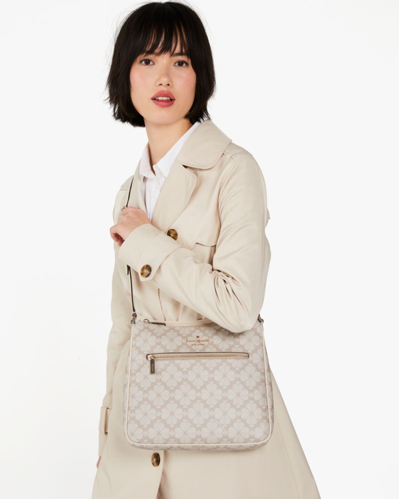 Und Du Hast Die Hände Frei, Sei Es Zum Texten Oder Zum Eiscreme Halten Kate Spade Signature Spade Flower Swingpack-Umhängetasche, Groß Für Frauen In Dunkles Beige/multi Pvc