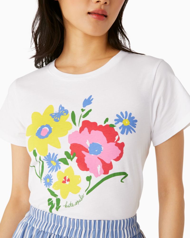 Details Grösse Ks Rtw Xxs-Xxl 63,5 Cm Ab Schulter Gemessen Materialien 100 % Baumwolle Details Gestricktes Top Zum Überziehen Produktcode Kc380 Style No Kc380 Kate Spade New England Floral T-Shirt Für Frauen In Frisches Weiß