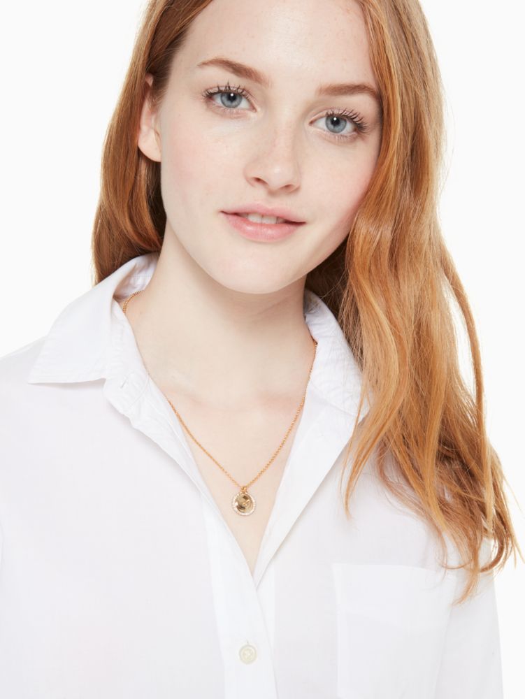 Material Plattiertes Metall Zirkonia Glassteine Eigenschaften Karabinerverschluss Gewicht 9,3 G Kettenlänge 43,2 Cm 7,6 Cm Verlängerung Tragelänge Des Anhängers 26,7 Cm Handgefertigt Importiert Style No O0Ru2606 Kate Spade Spot The Spade Anhänger Mit Pavé Für Frauen In Transparent/gold Kubikzirkonie