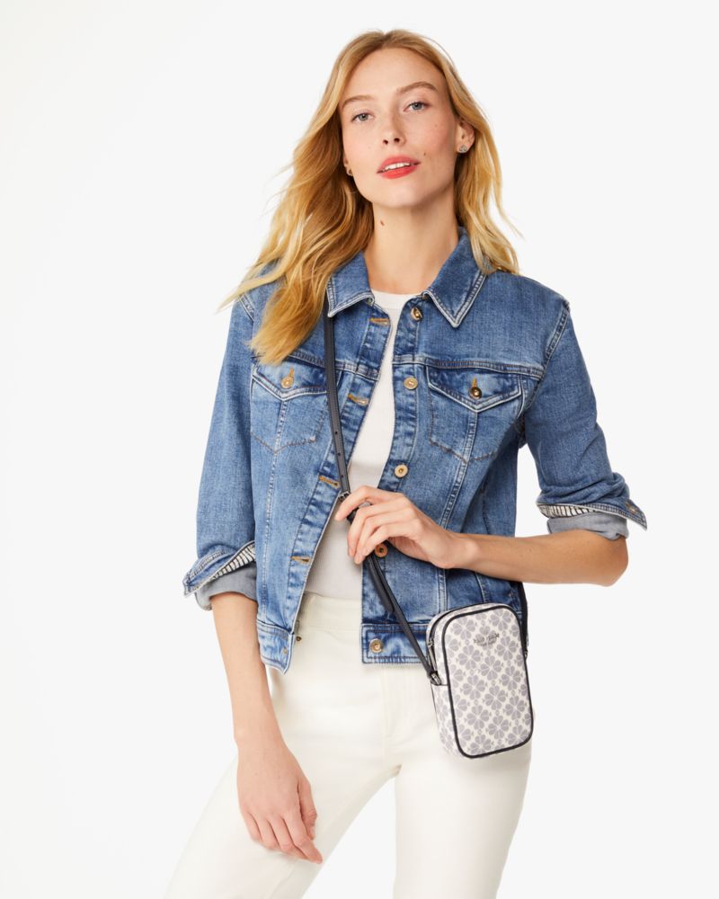 Und Du Hast Die Hände Frei, Sei Es Zum Texten Oder Zum Eiscreme Halten Kate Spade Spade Flower Handy-Umhängetasche Im Längsformat Für Frauen In Marineblau/multi Pvc