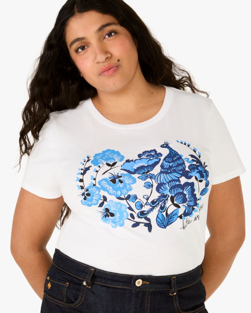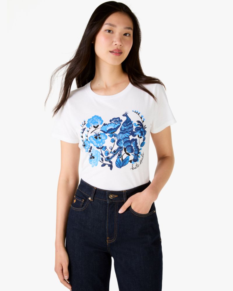 Wir Finden, Dass Es Das Perfekte Accessoire Für Dein Outfit Ist Kate Spade T-Shirt Mit Blumenverzierung Und Pfau Für Frauen In Frisches Weiß