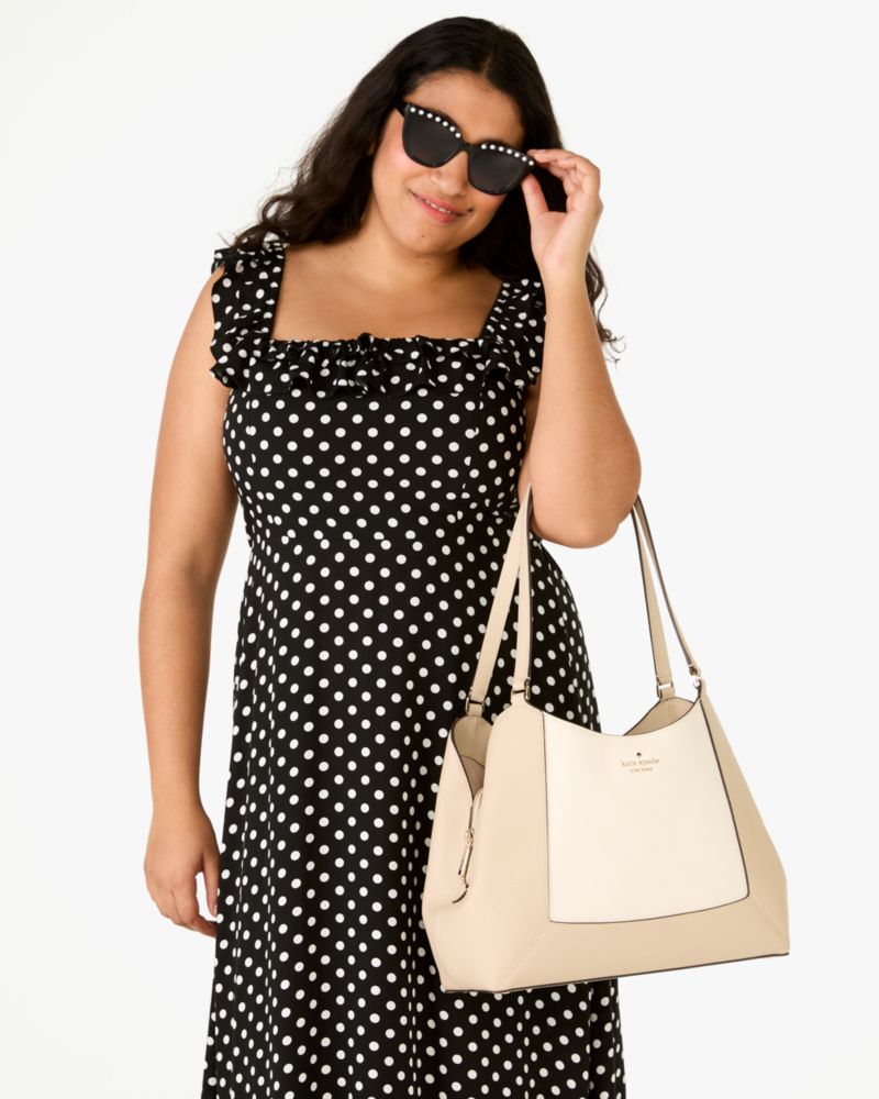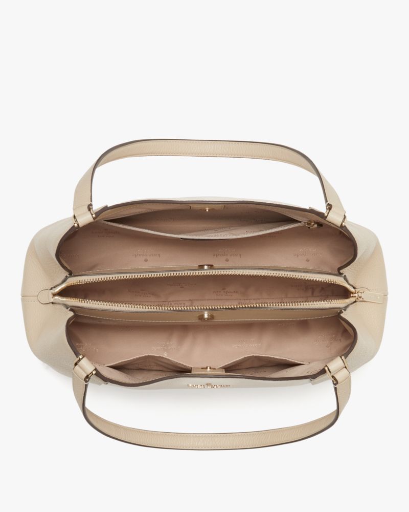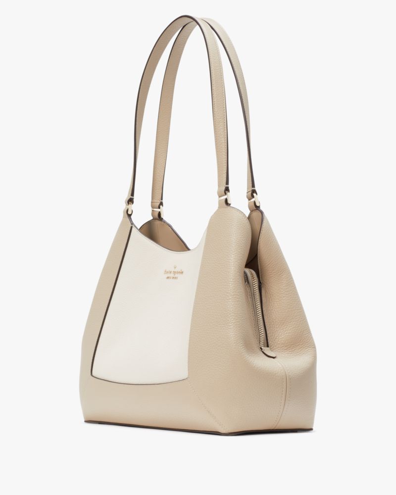 Denn Auch Die Sind Wichtig Kate Spade Lena Schultertasche In Blockfarben Mit Drei Fächern, Groß Für Frauen In Heller Sand/multi Leder