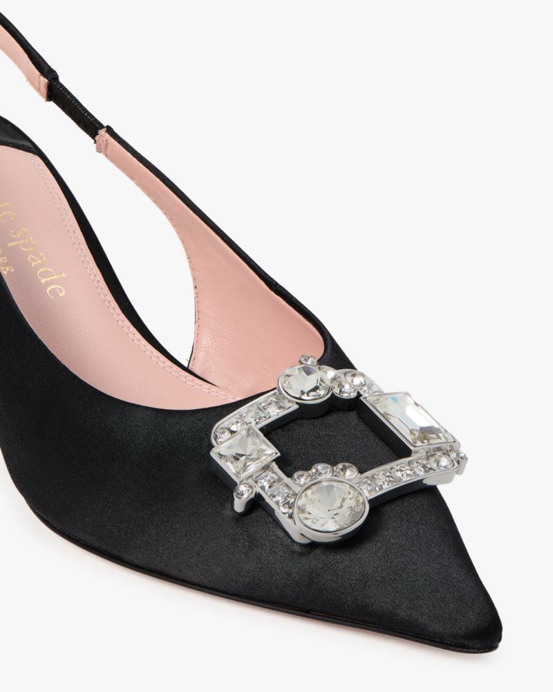 Unsere Renata Pumps Aus Glattem Satin Mit Fersenriemen Und Kristallverzierten Schnallen Werden Dir Jede Menge Komplimente Einbringen Kate Spade Renata Slingback-Pumps Für Frauen In Schwarz