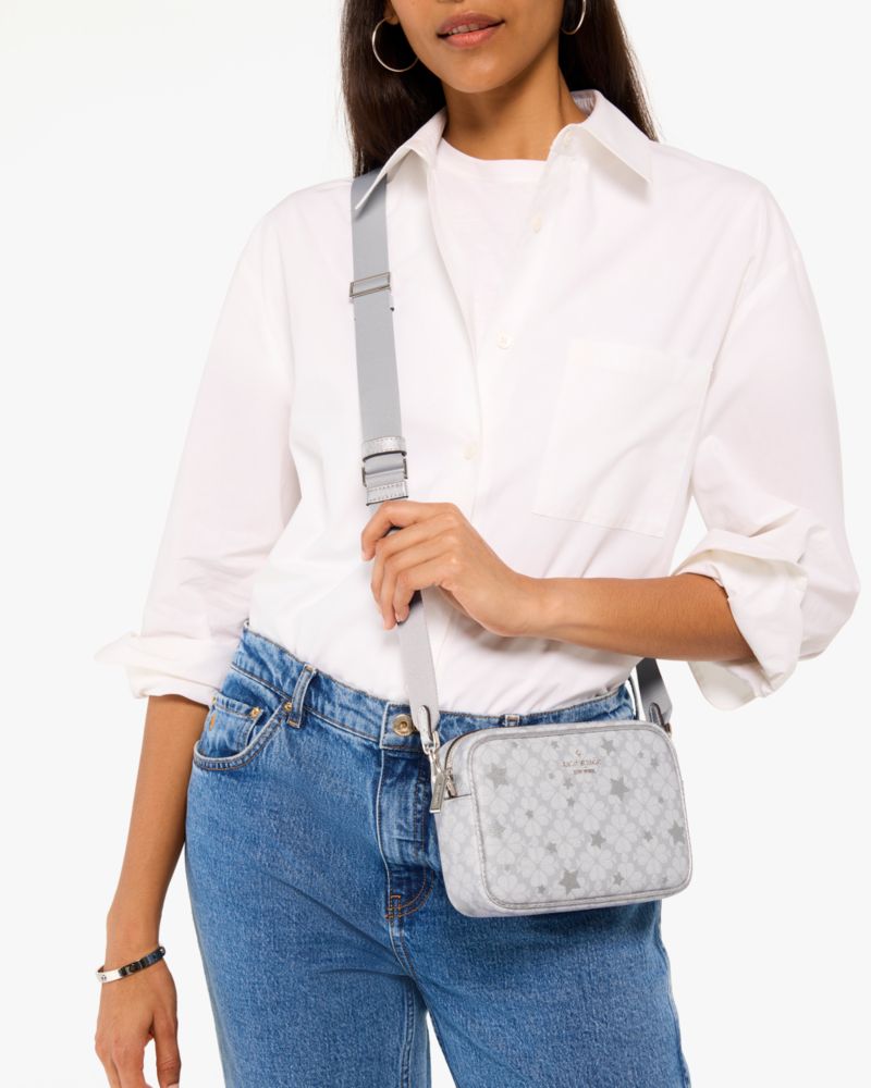 Und Du Hast Die Hände Frei, Sei Es Zum Texten Oder Zum Eiscreme Halten Kate Spade Spade Flower Star Toss Kameratasche, Extraklein Für Frauen In Platin Grau/multi Pvc