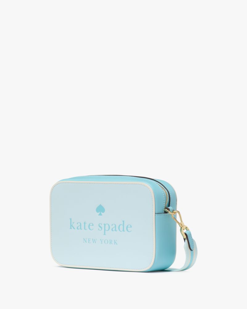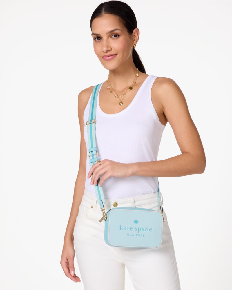 Und Du Hast Die Hände Frei, Sei Es Zum Texten Oder Zum Eiscreme Halten Kate Spade Oh Snap Kameratasche In Blockfarben Mit Druckknopf, Extraklein Für Frauen In Crisp Sky/multi Leder