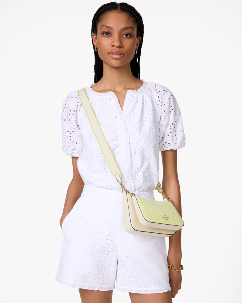 Und Du Hast Die Hände Frei, Sei Es Zum Texten Oder Zum Eiscreme Halten Kate Spade Duet Stroh-Umhängetasche Für Frauen In Limetten-Slushy/multi Leder