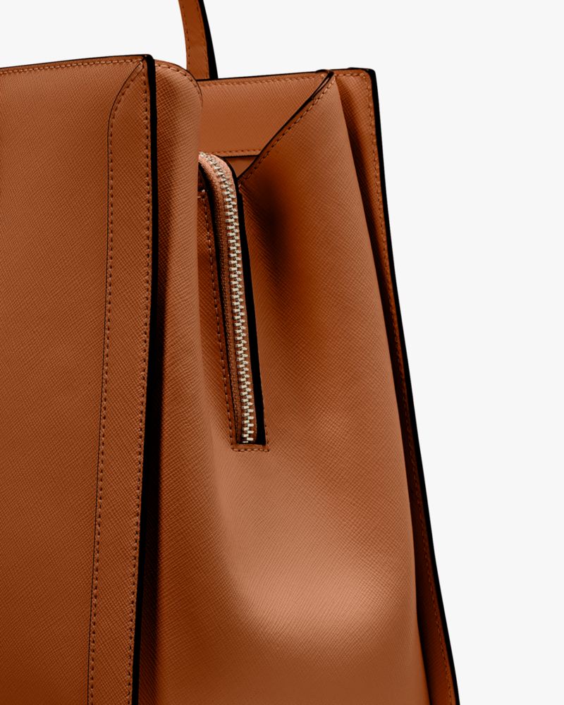 Das Stilvolle Und Praktische Modell Ist Aus Strapazierfähigem Saffianleder Mit Elegantem Ost-West-Design Gefertigt.