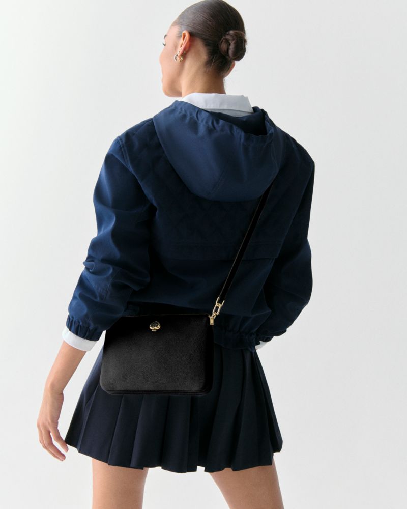 Und Du Hast Die Hände Frei, Sei Es Zum Texten Oder Zum Eiscreme Halten Kate Spade Kayla Kleine Umhängetasche Mit Dreiteiligem Fach Für Frauen In Schwarz Leder