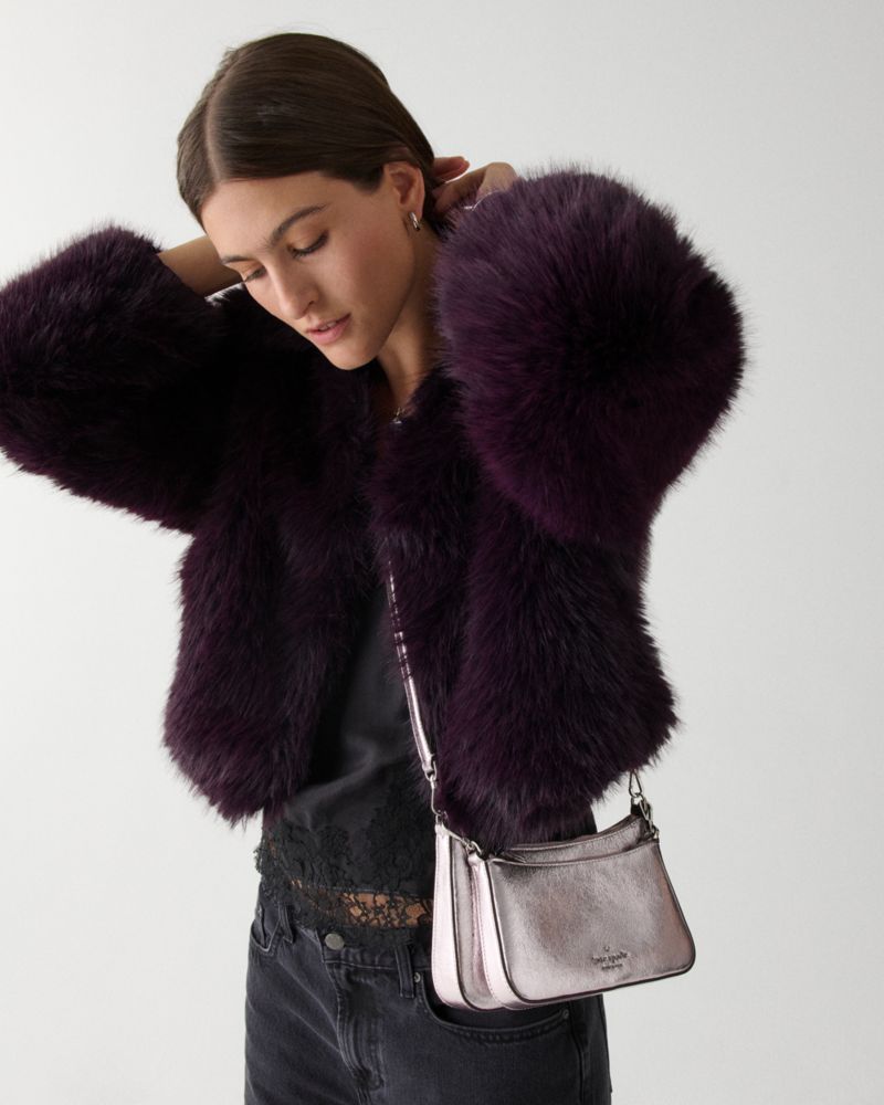 Ein Essential Mit Etwas Mehr Glanz, Für Freie Hände Kate Spade Duet Metallic Umhängetasche, Klein Für Frauen In Flieder Mondlicht Leder