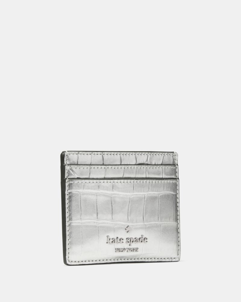 Ein Edler Kartenetui, Das Auffällt Kate Spade Madison Kartenhalter Mit Krokoprägung, Schmal, Klein Für Frauen In Silber Leder