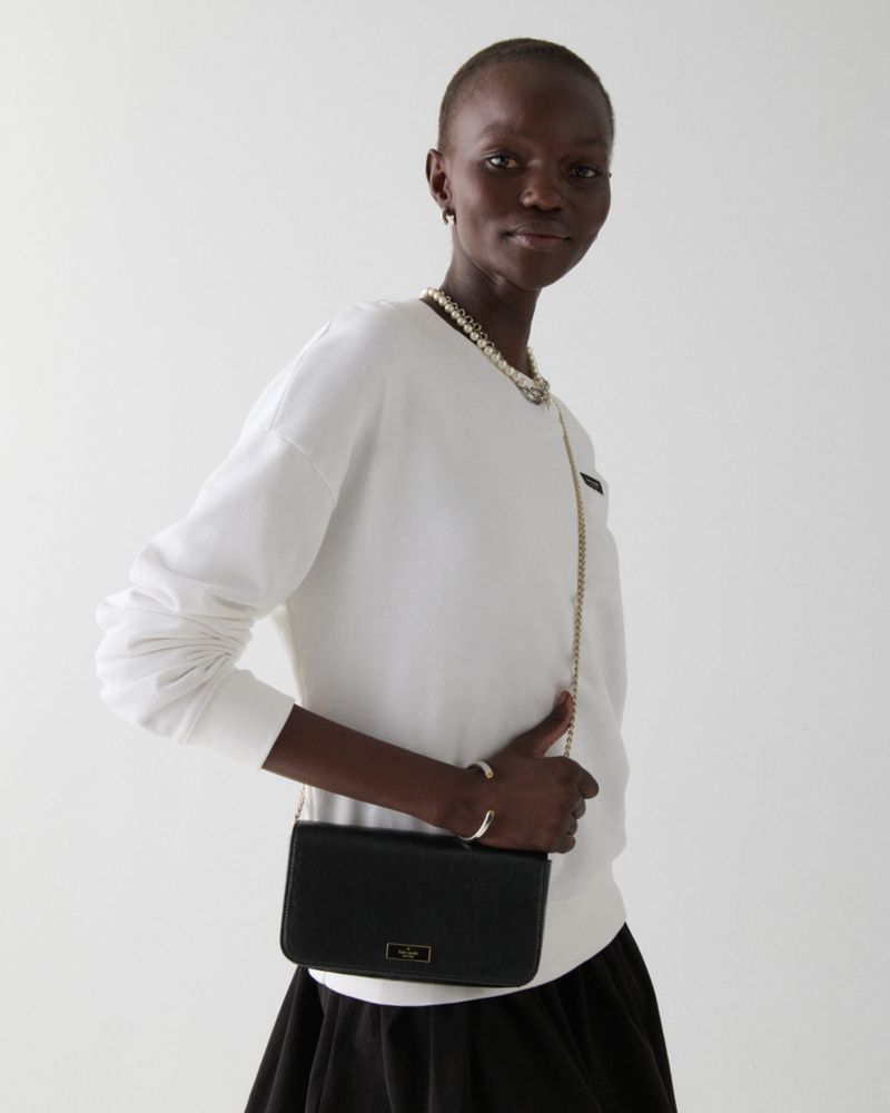 Und Du Hast Die Hände Frei, Sei Es Zum Texten Oder Zum Eiscreme Halten Kate Spade Bridget Umhängetasche Aus Lackleder In Knitteroptik, Extraklein Für Frauen In Schwarz Non