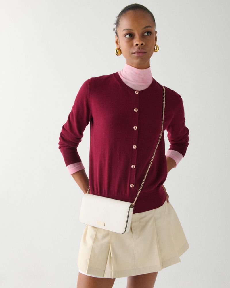 Und Du Hast Die Hände Frei, Sei Es Zum Texten Oder Zum Eiscreme Halten Kate Spade Bridget Umhängetasche Aus Lackleder In Knitteroptik, Extraklein Für Frauen In Baiser Non