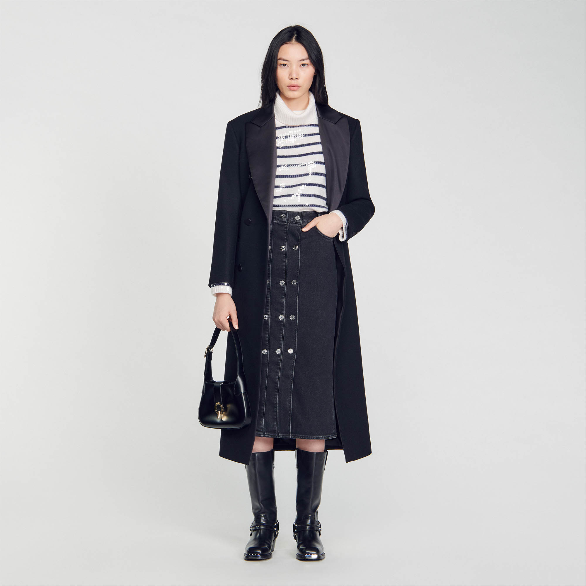 Sandro Women's bag Carried on the shoulder Smooth leather Signature clasp Leather and cotton lining Handle with buckle Magnetic fastening Inside pocket Width: