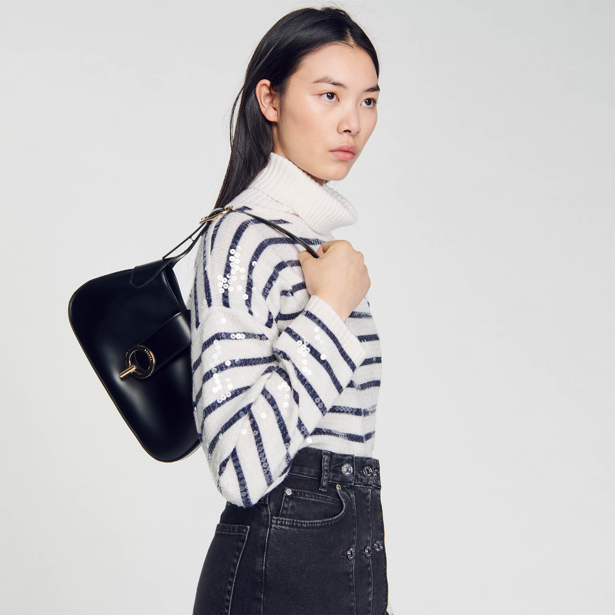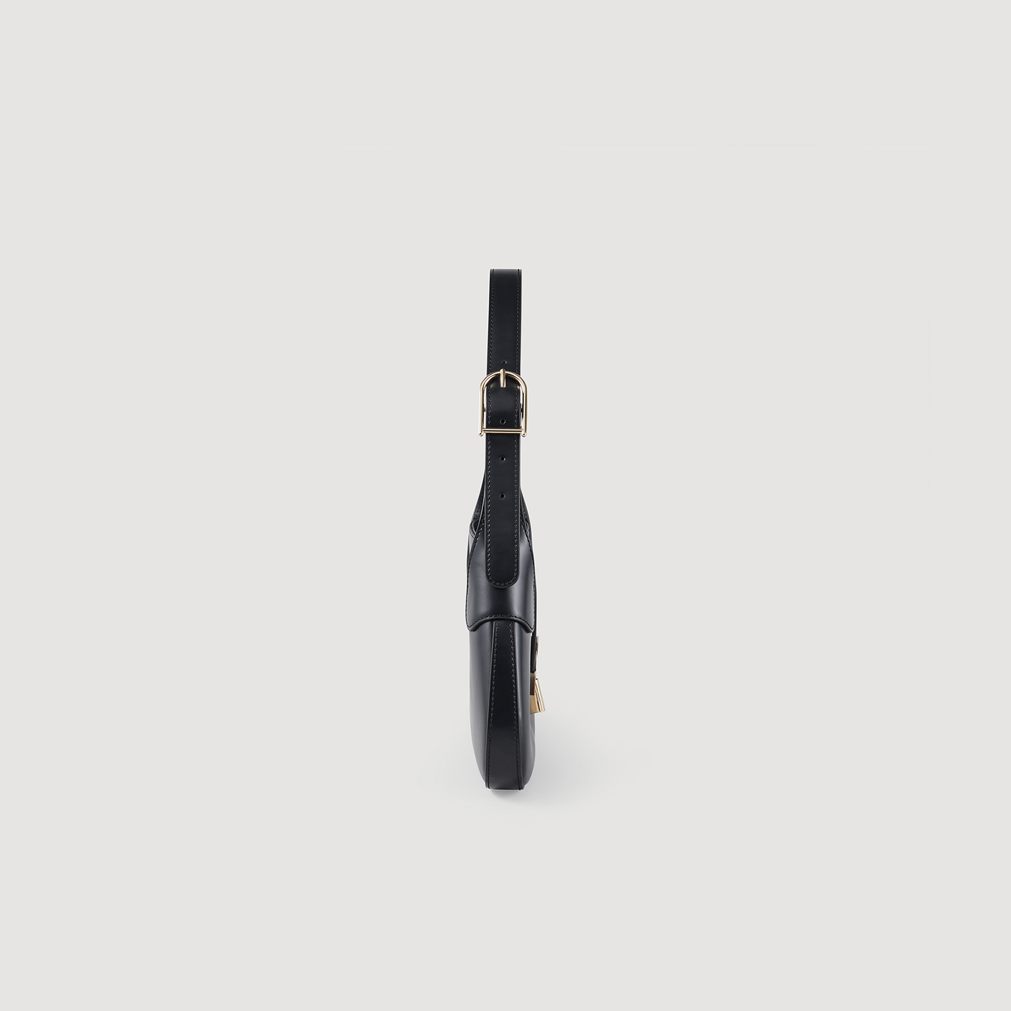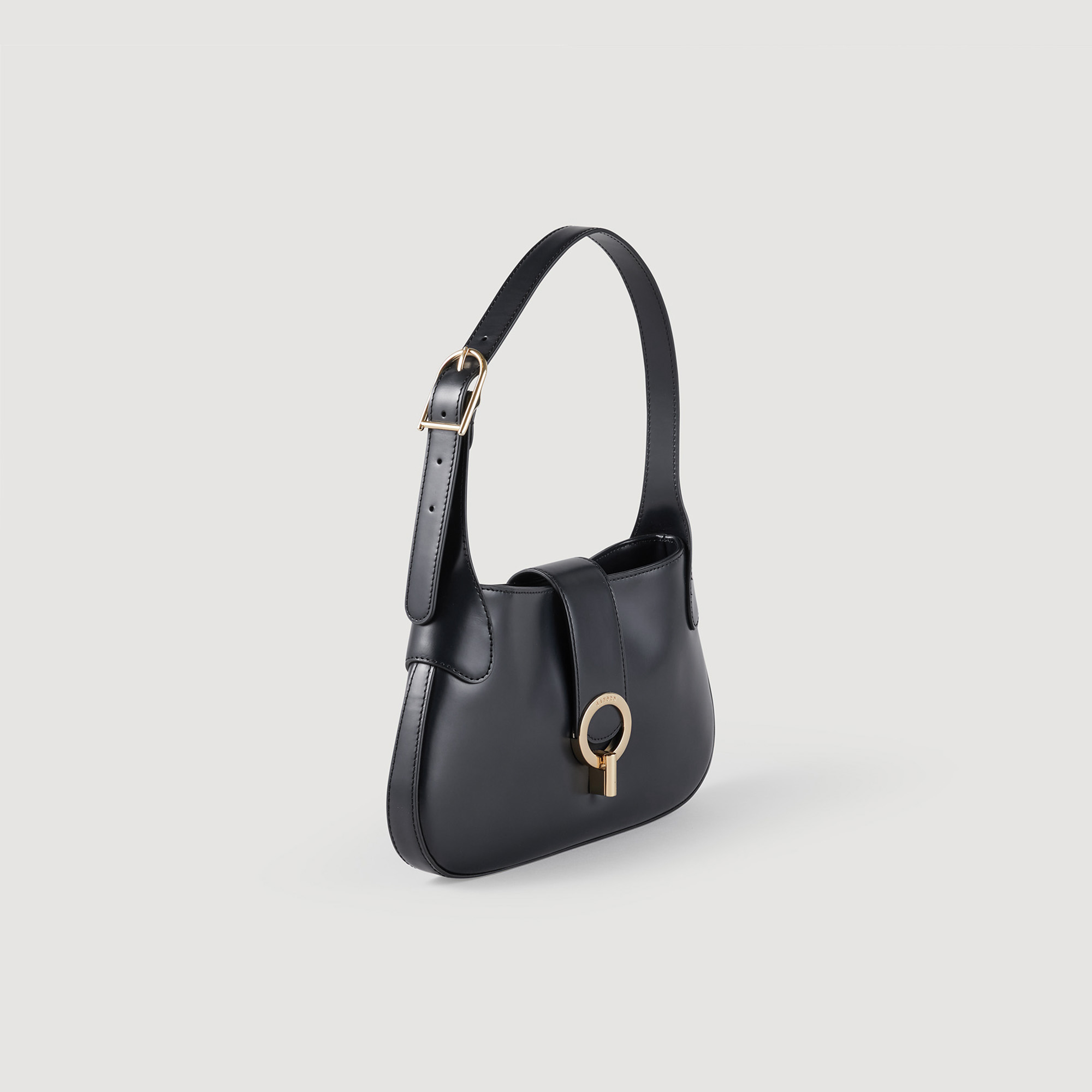 Sandro leather Smooth leather shoulder bag with a signature clasp and a metal buckle handle.