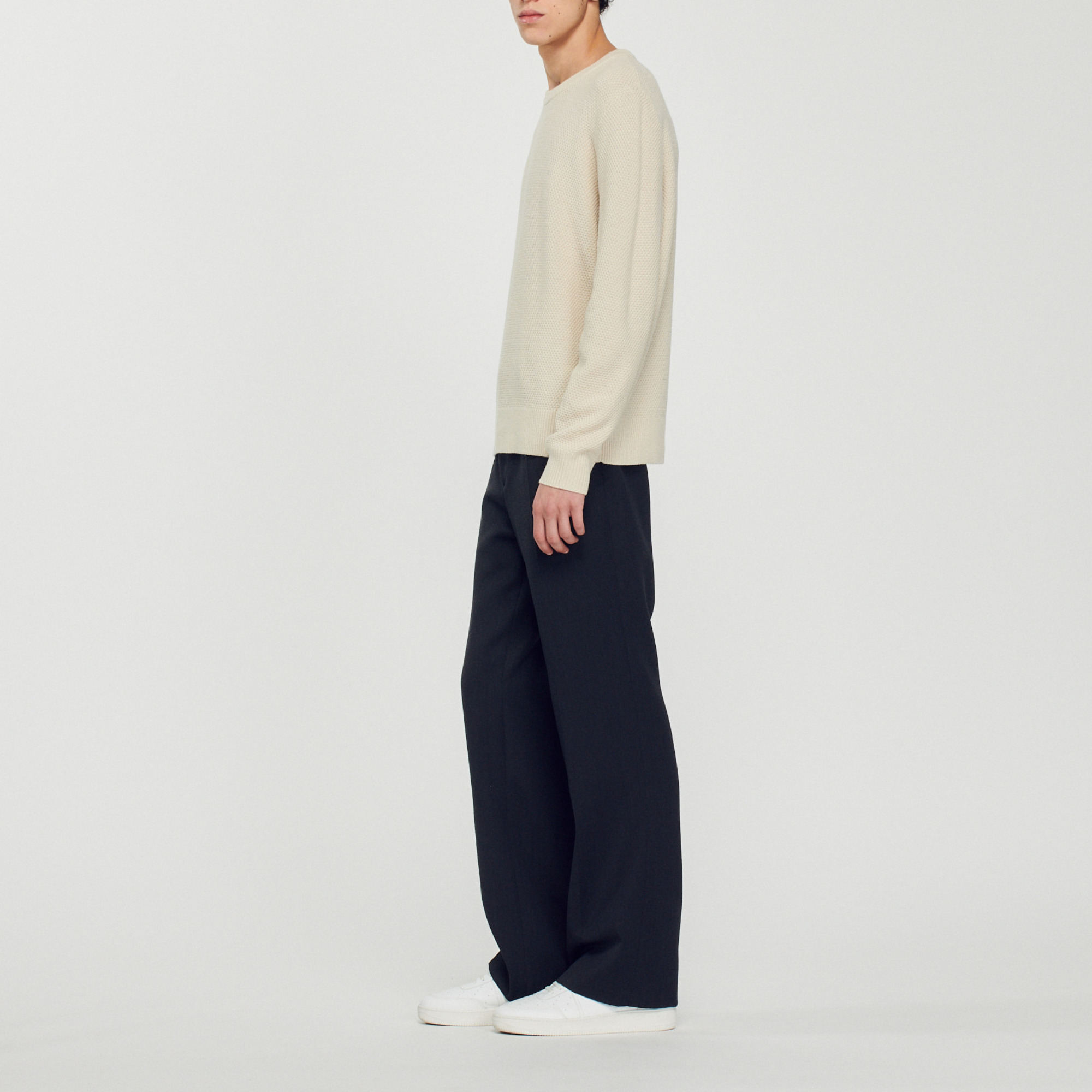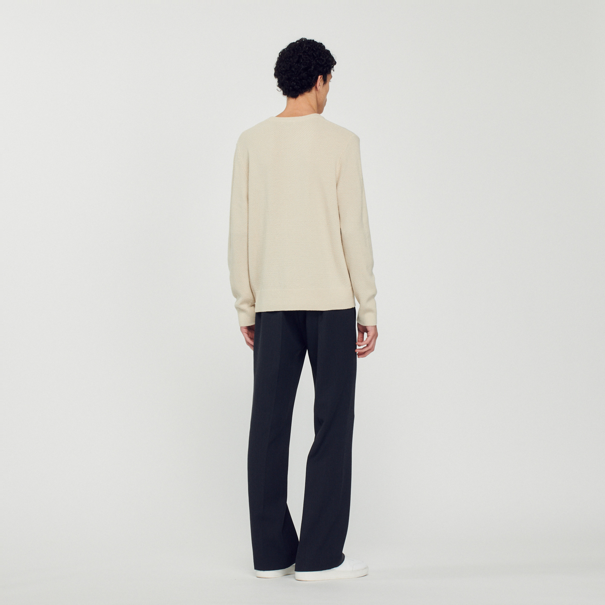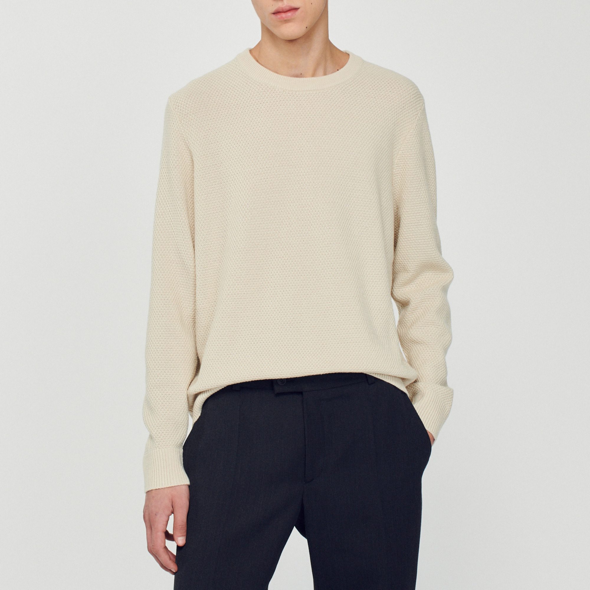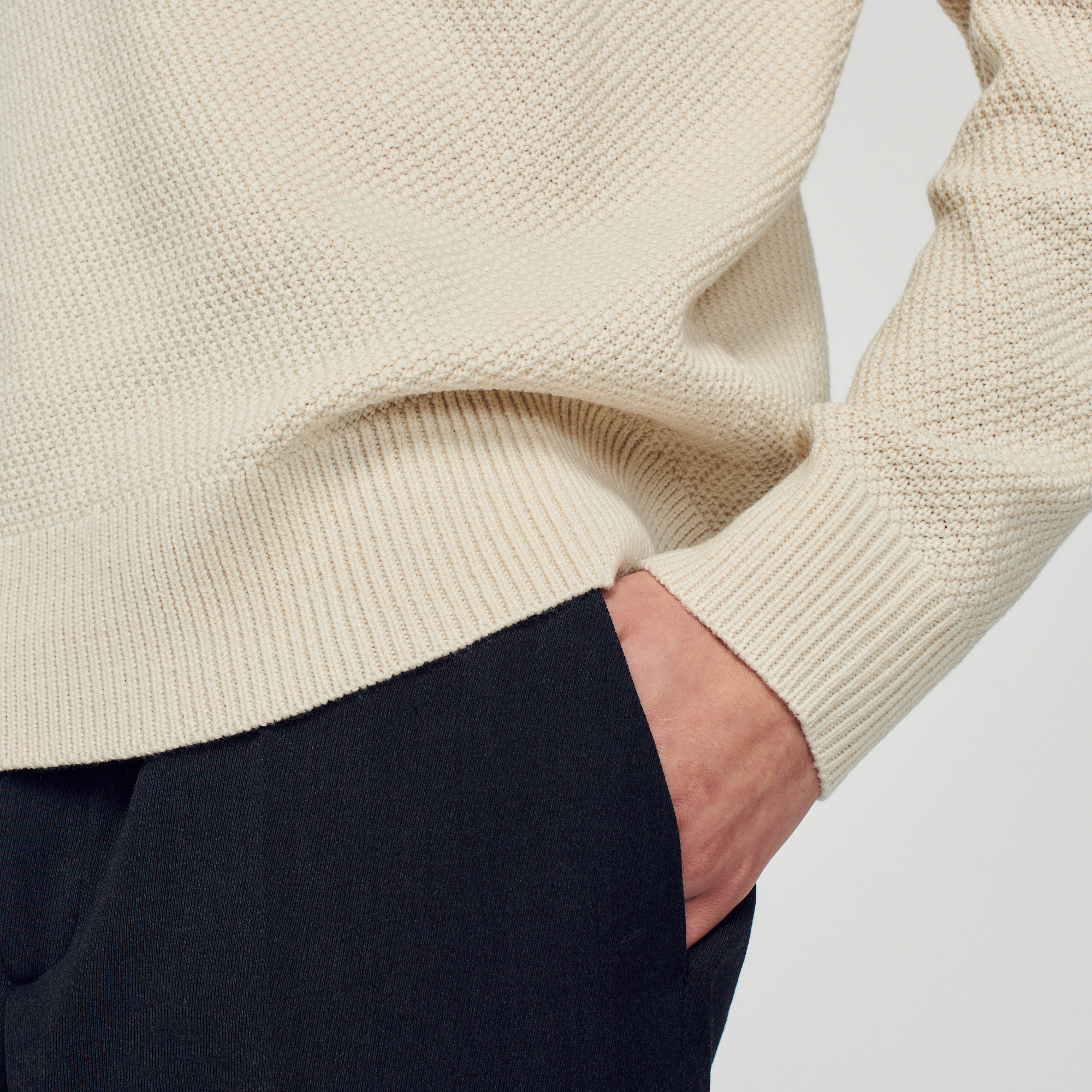 Sandro wool Sandro men's sweater Fancy knit sweater Mock neck Rib trim Long sleeves For a more oversized look, we recommend going up a size.
