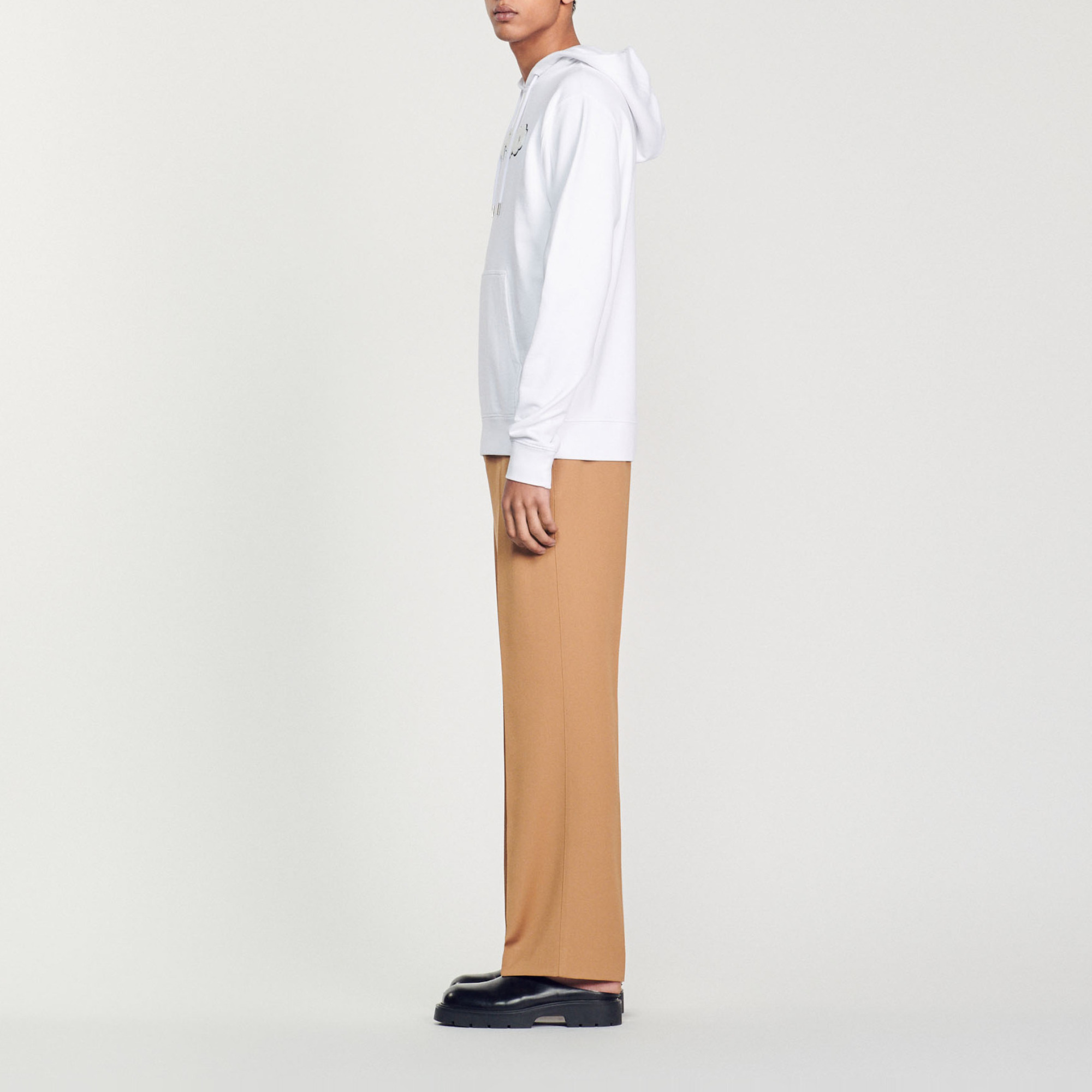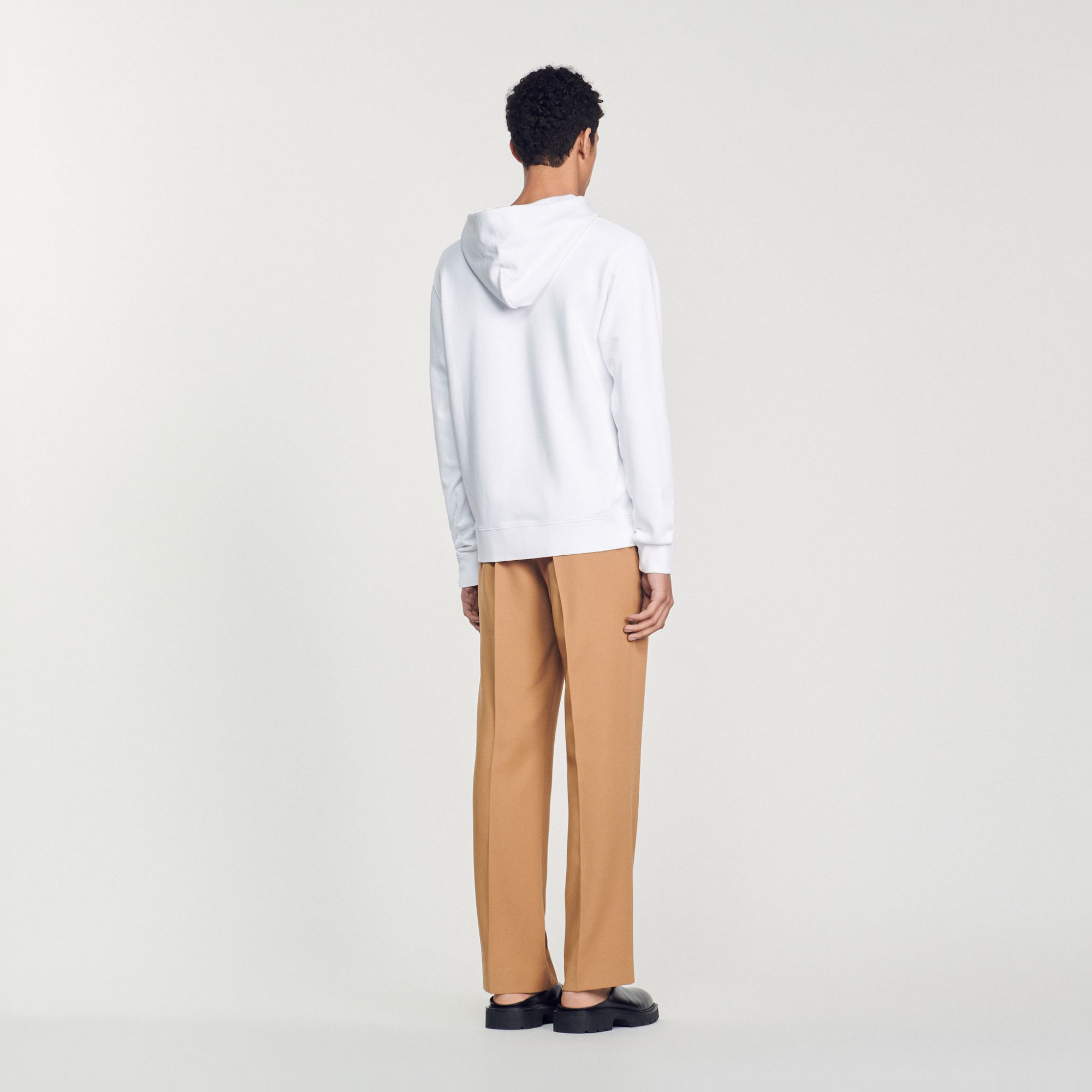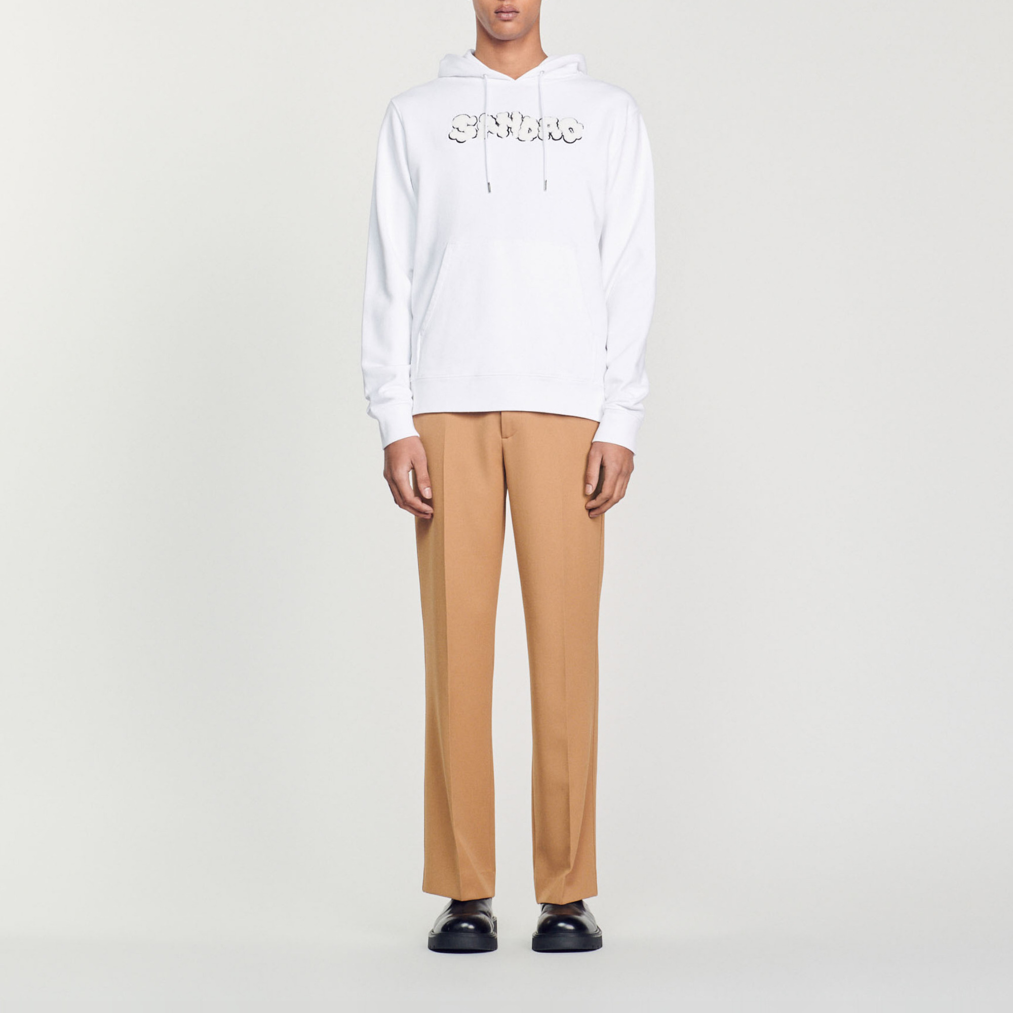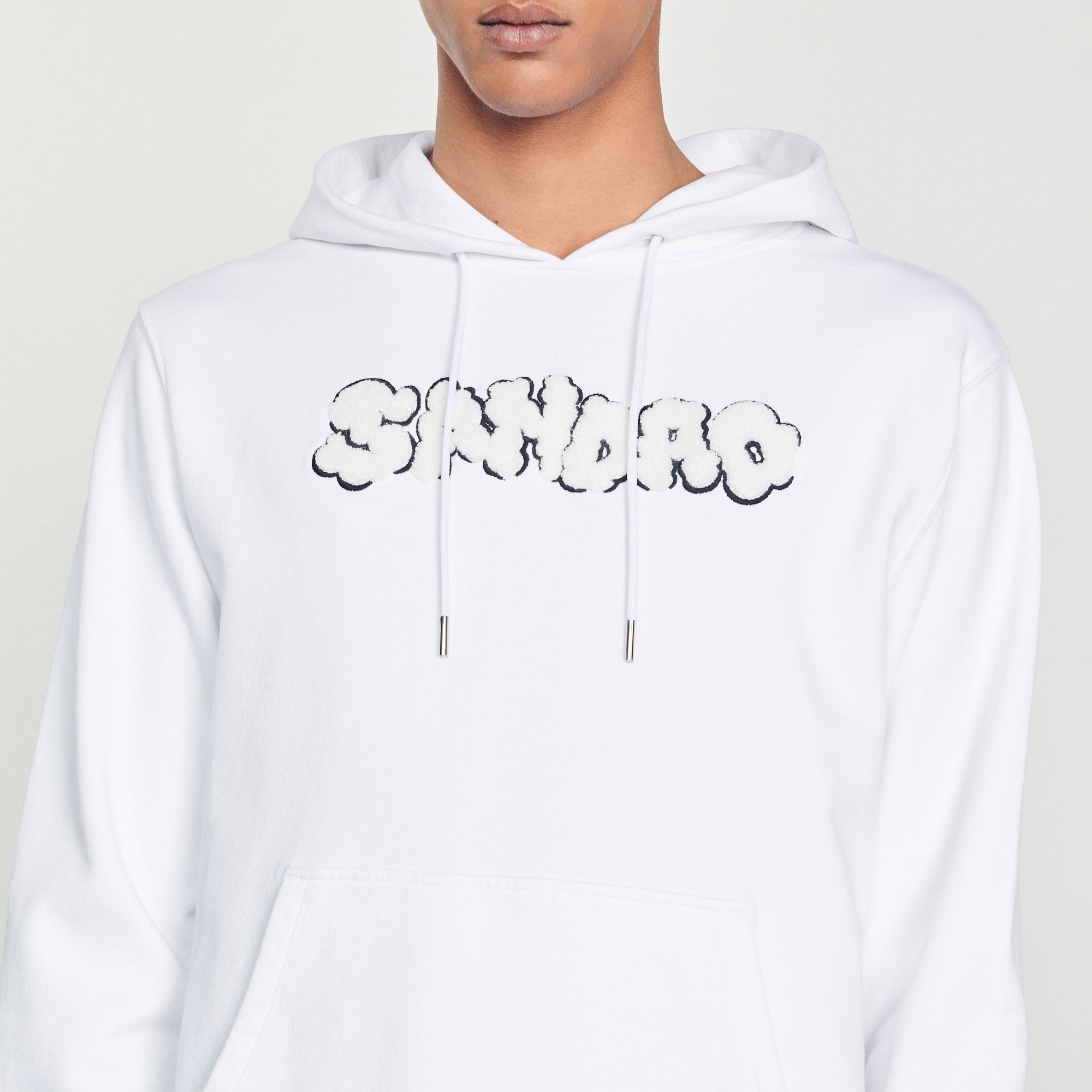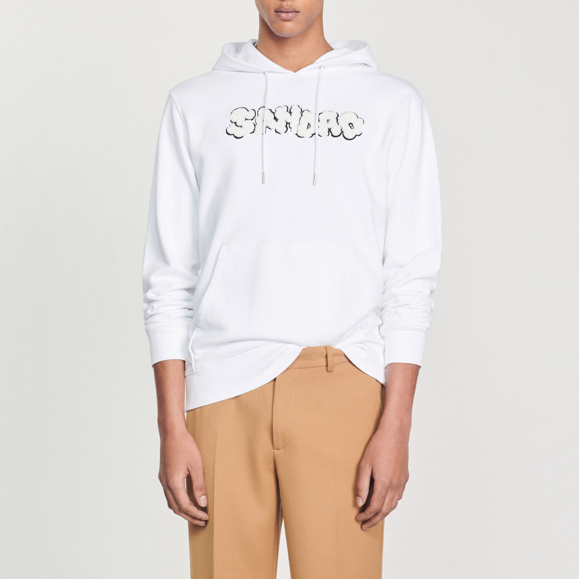 Sandro cotton Cotton fleece hoodie with a drawstring hood, long sleeves, a front pocket, and Sandro bouclé embroidery.