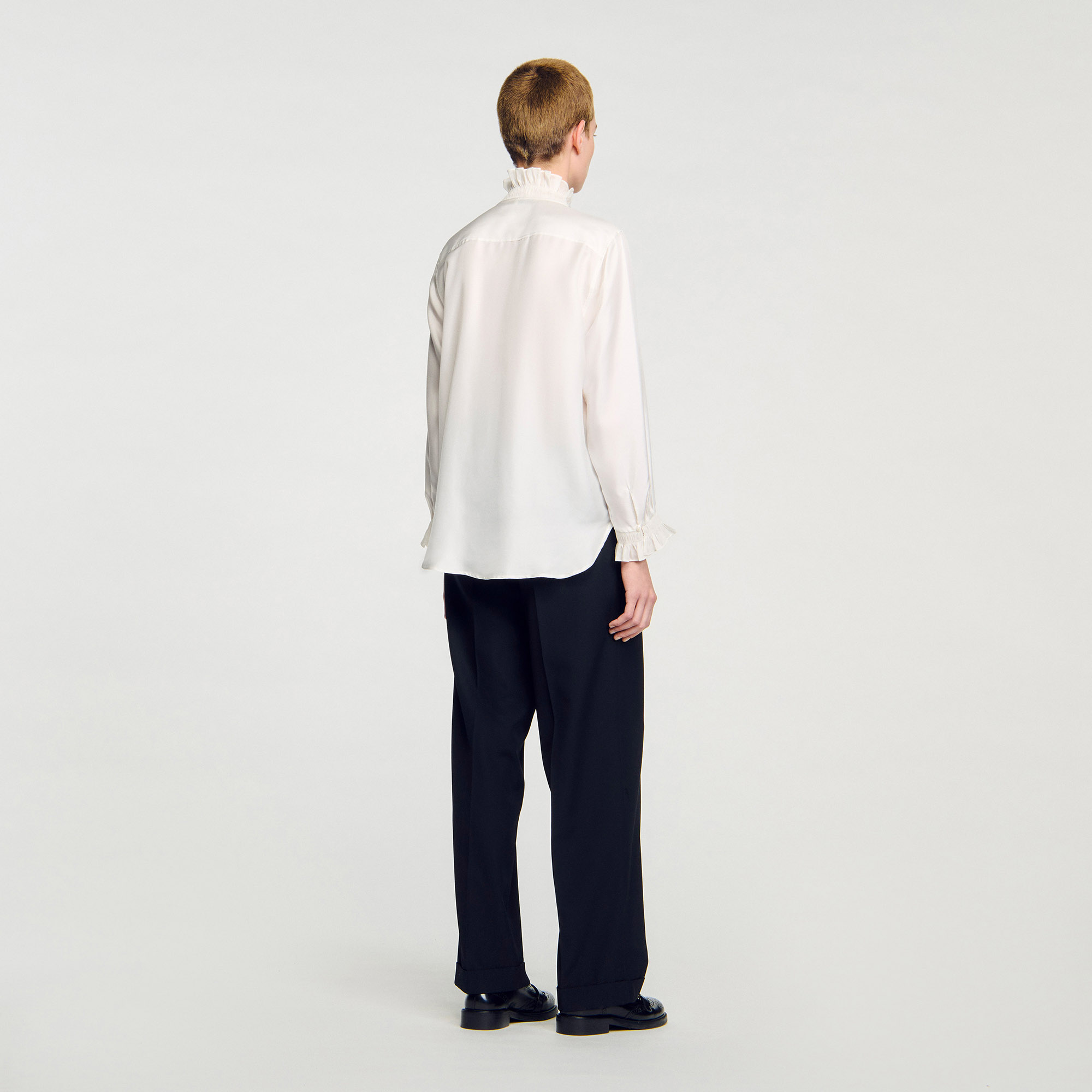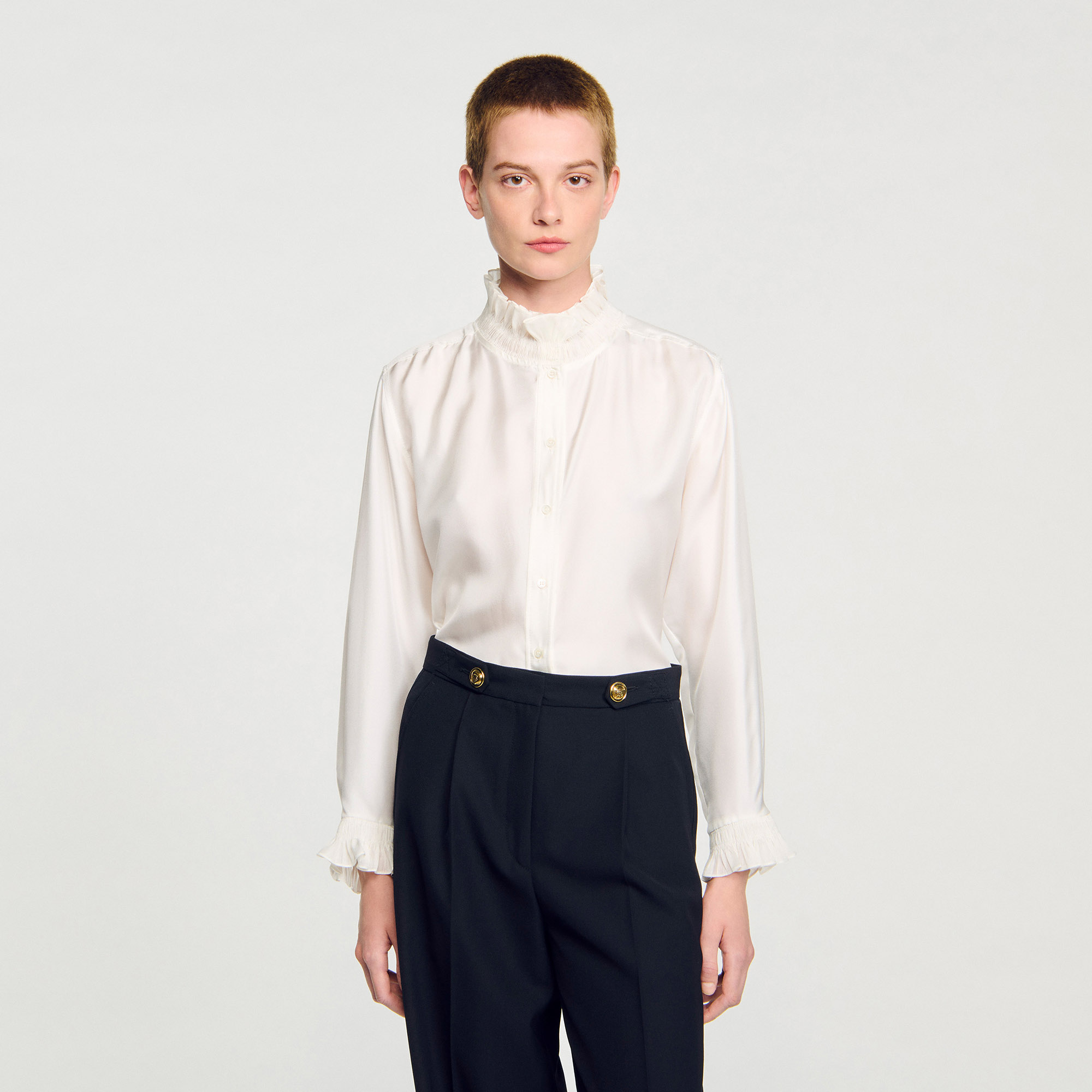Sandro silk Sandro women's shirt Silk flowy shirt Smocked-effect gathered collar Long sleeves with gathered cuffs Rounded asymmetric hem Designed for a cropped fit.