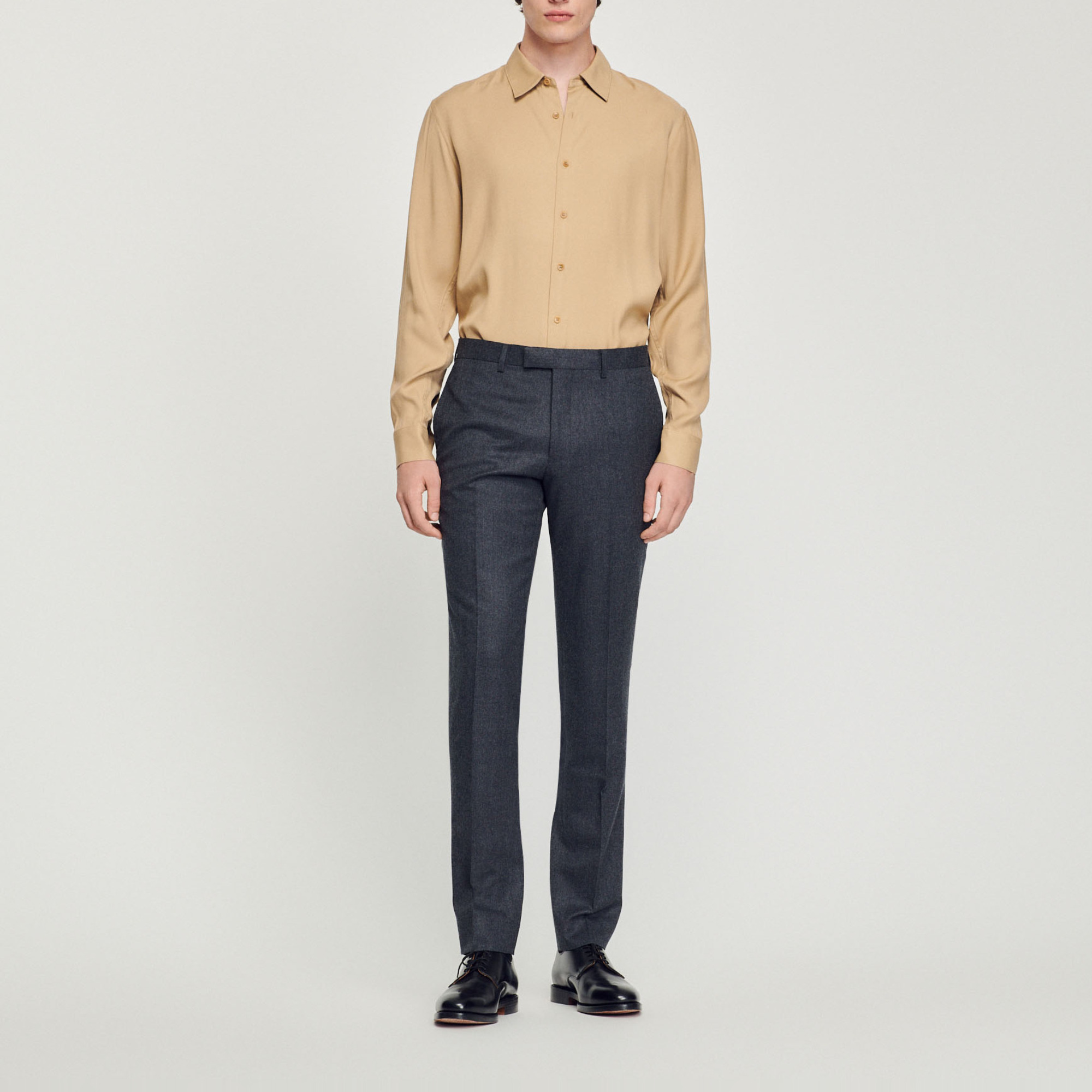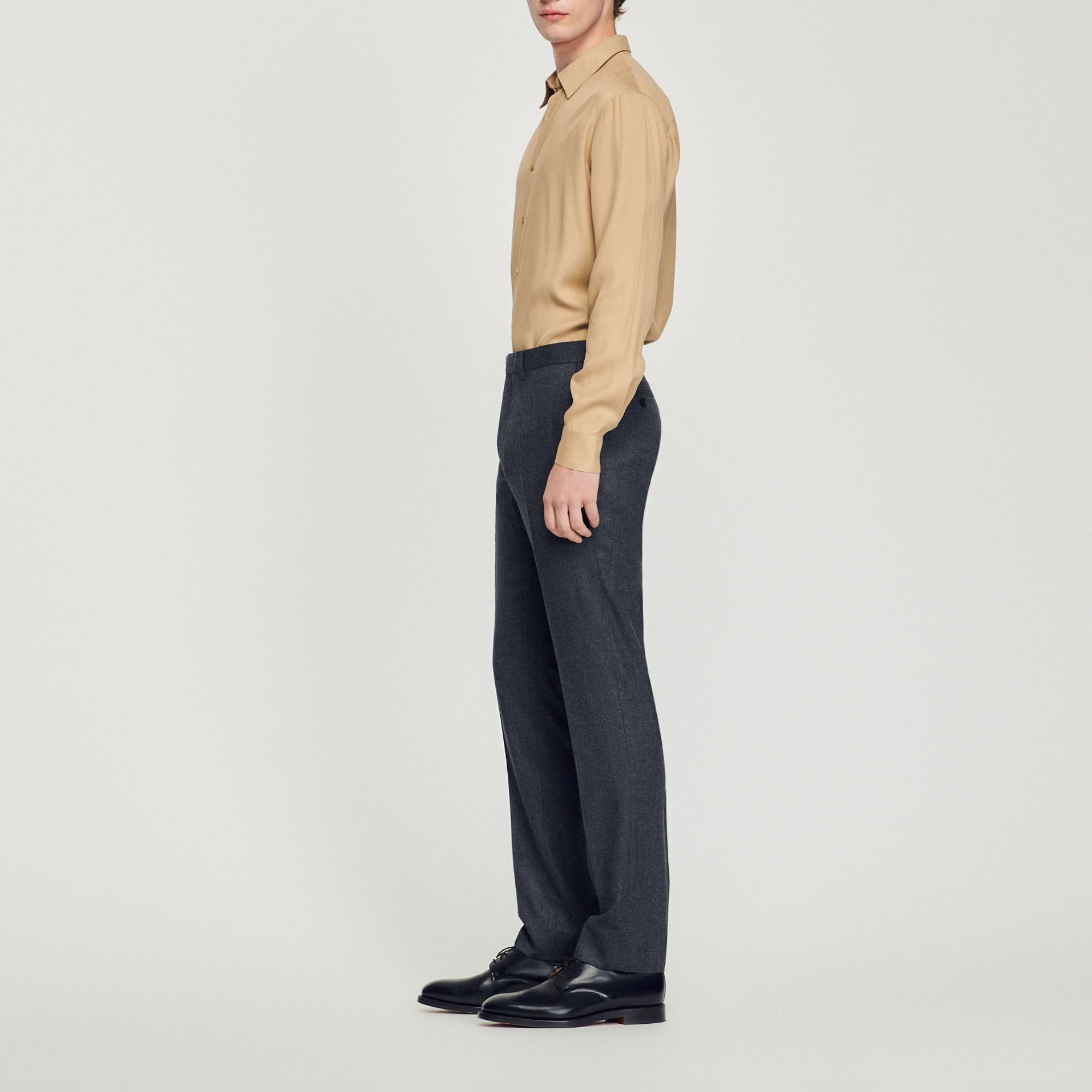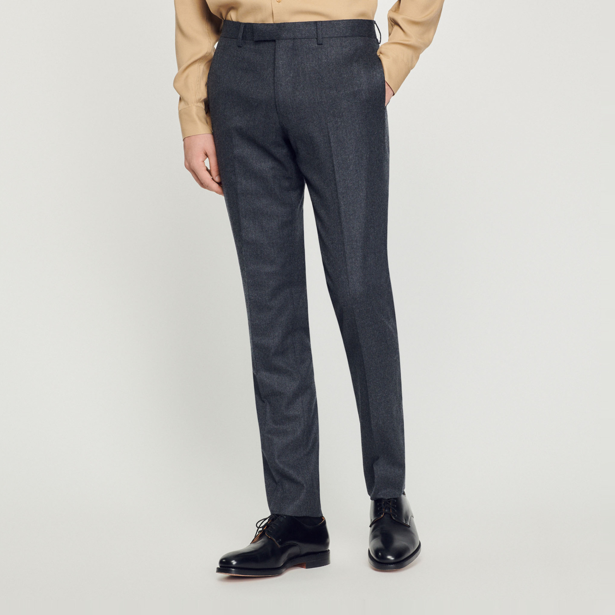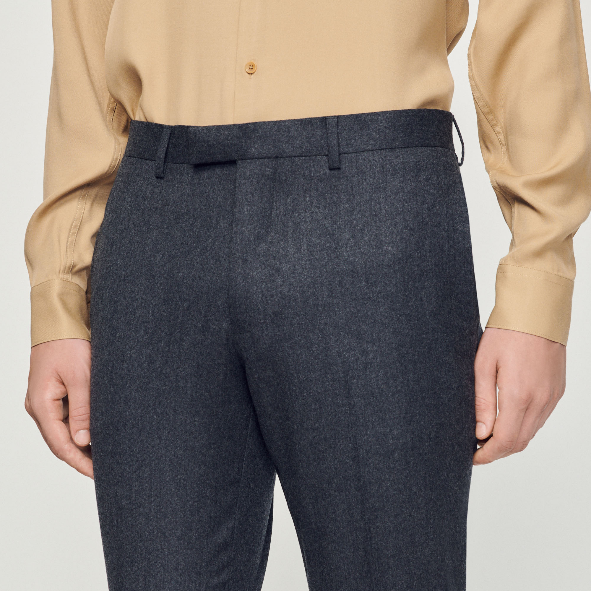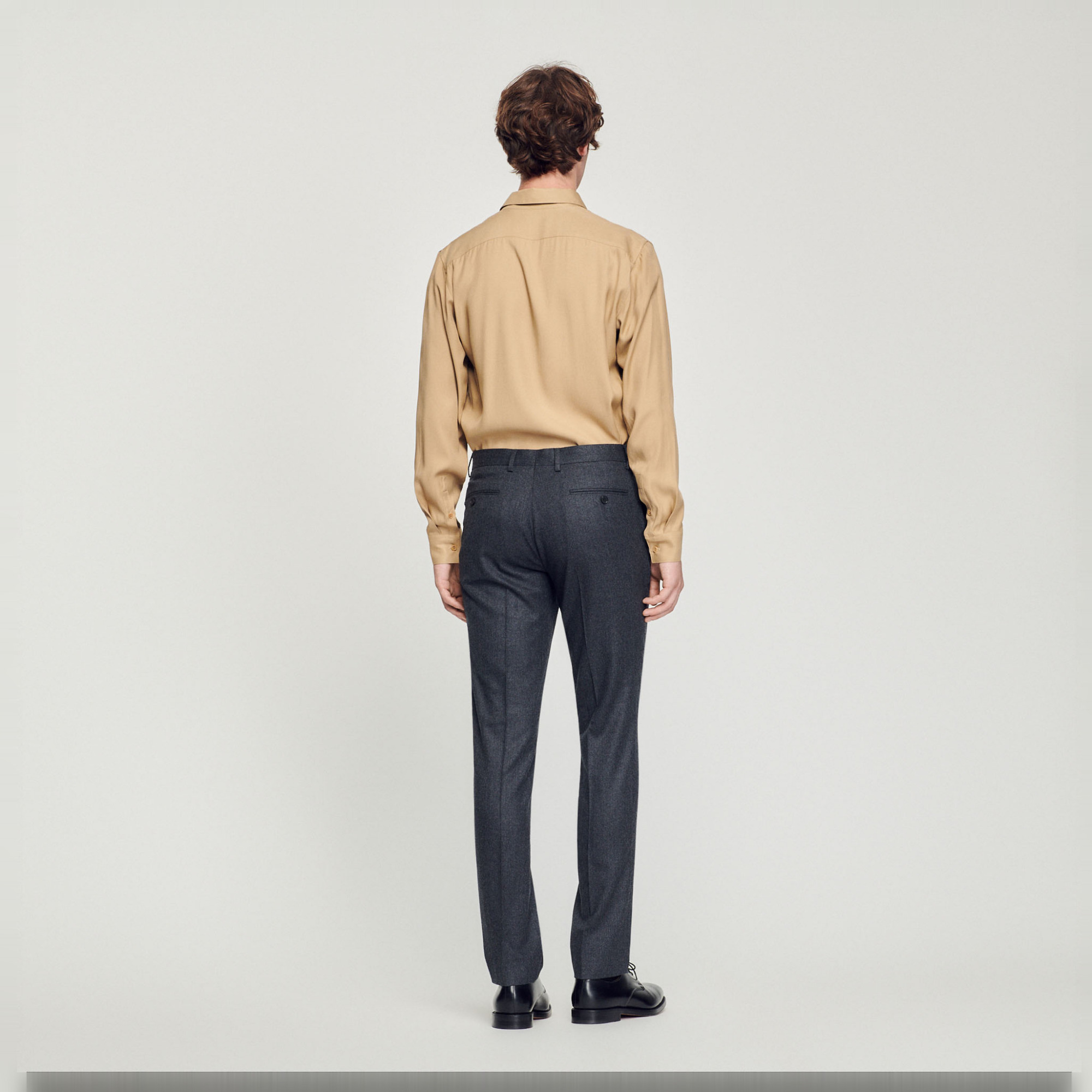 Sandro virgin Sandro men's pants • Flannel suit pants • 100% wool • Classic cut • Two slanted pockets at the front and two button-fastening piped pockets at the back • These pants match the suit jacket.