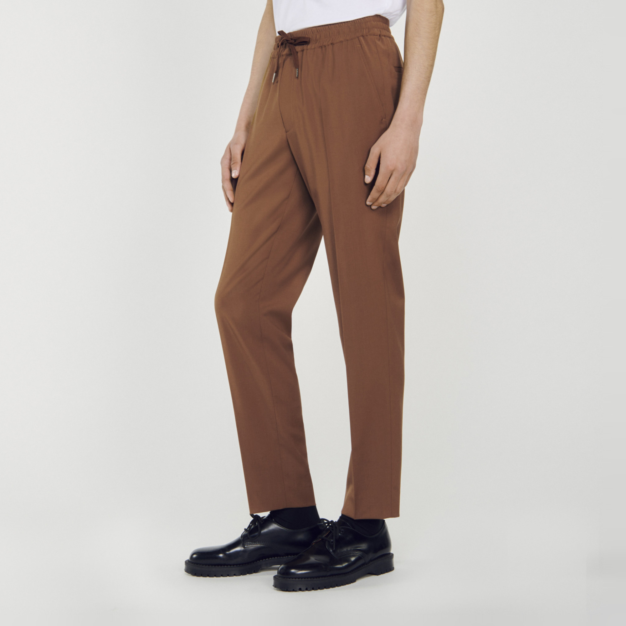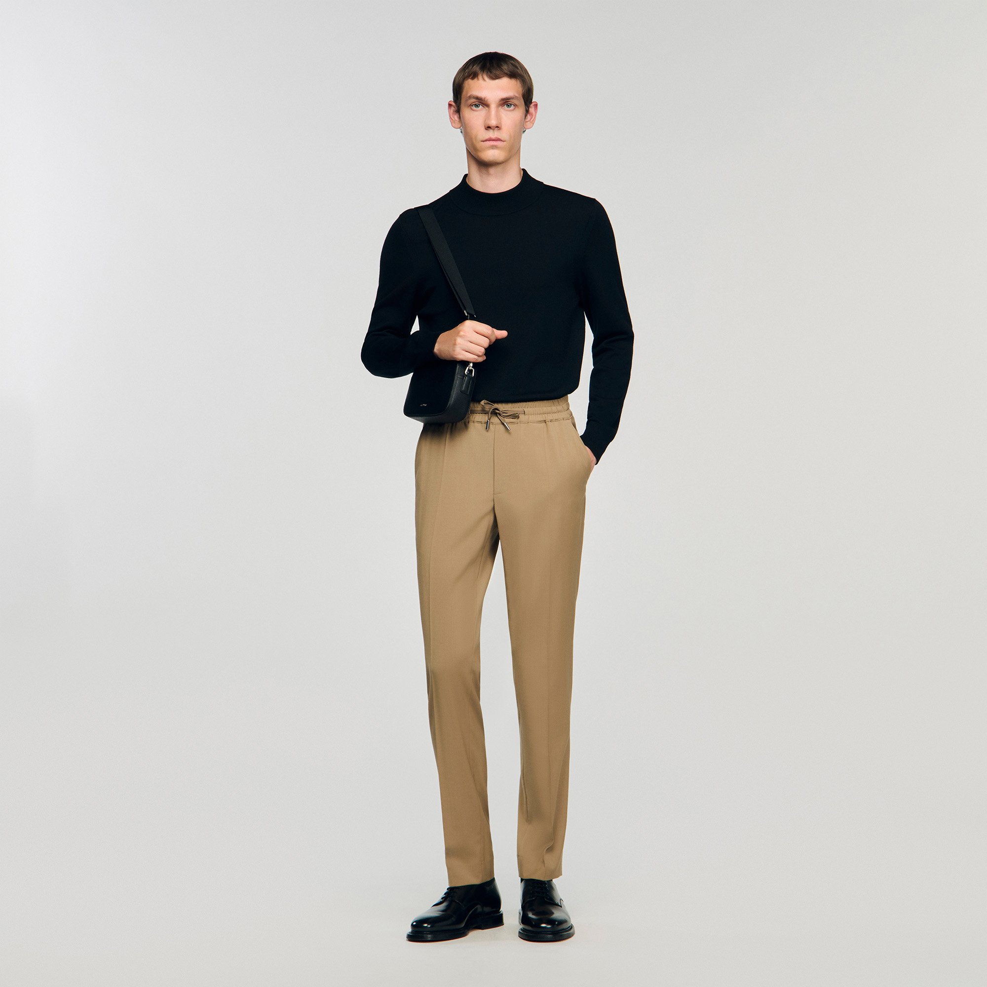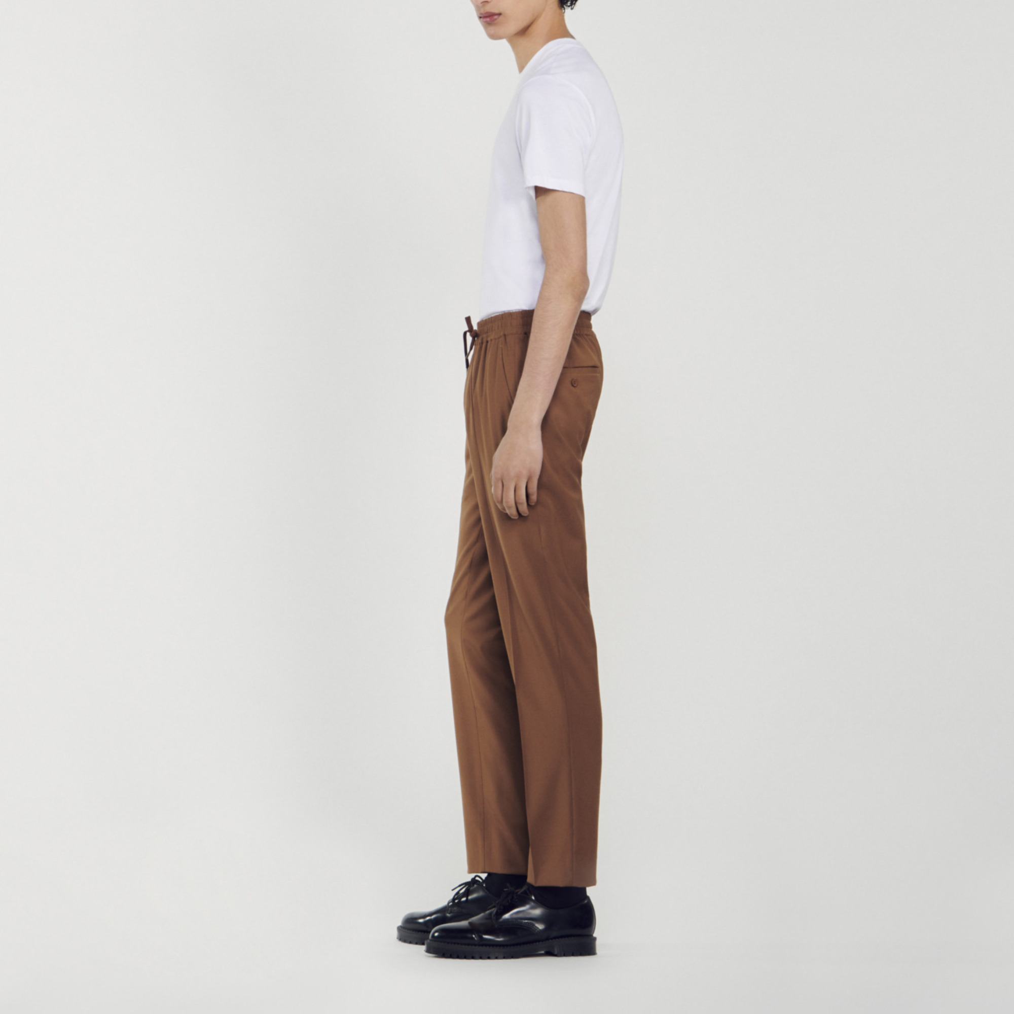 Sandro wool Straight-leg pants with an elasticated drawstring waist and pockets.