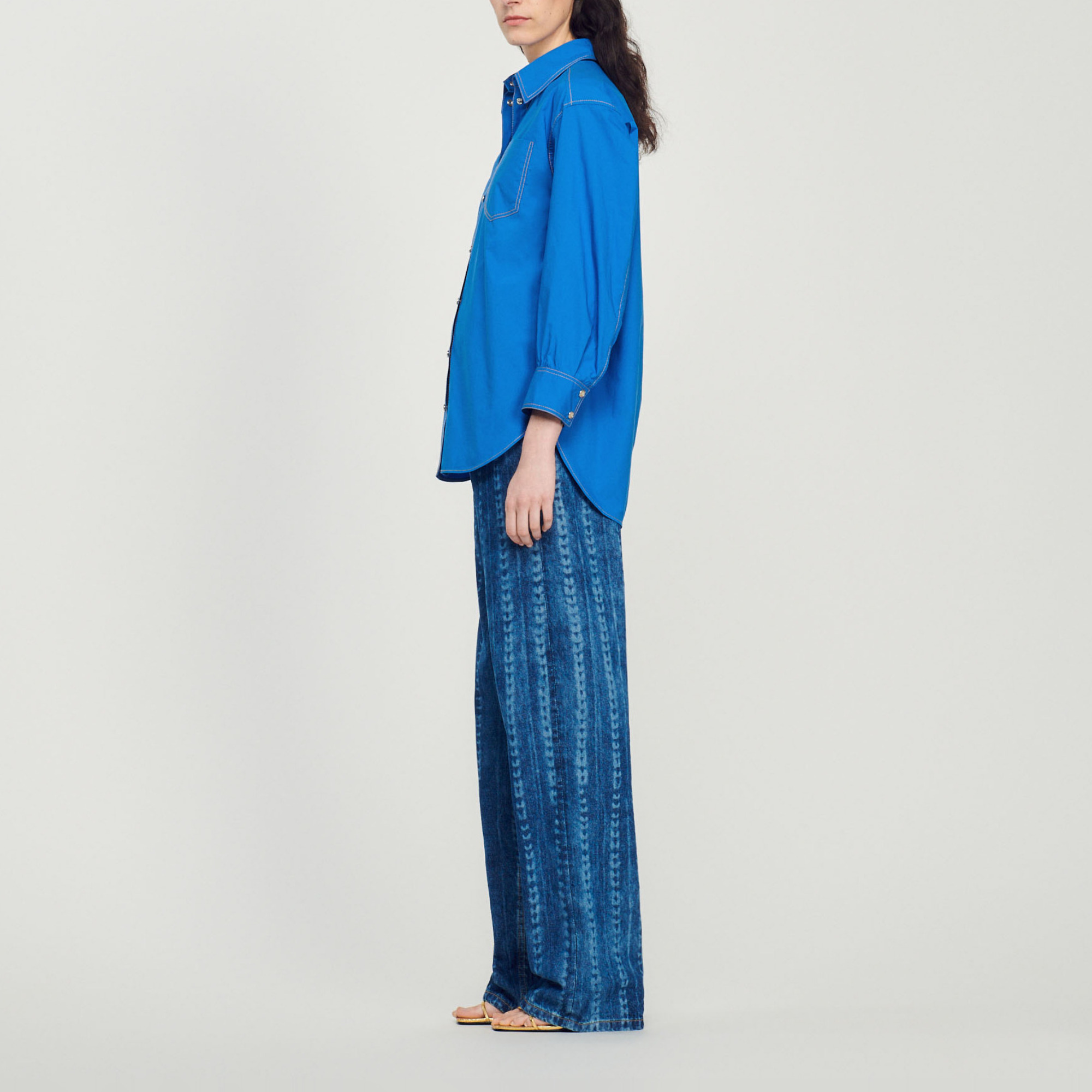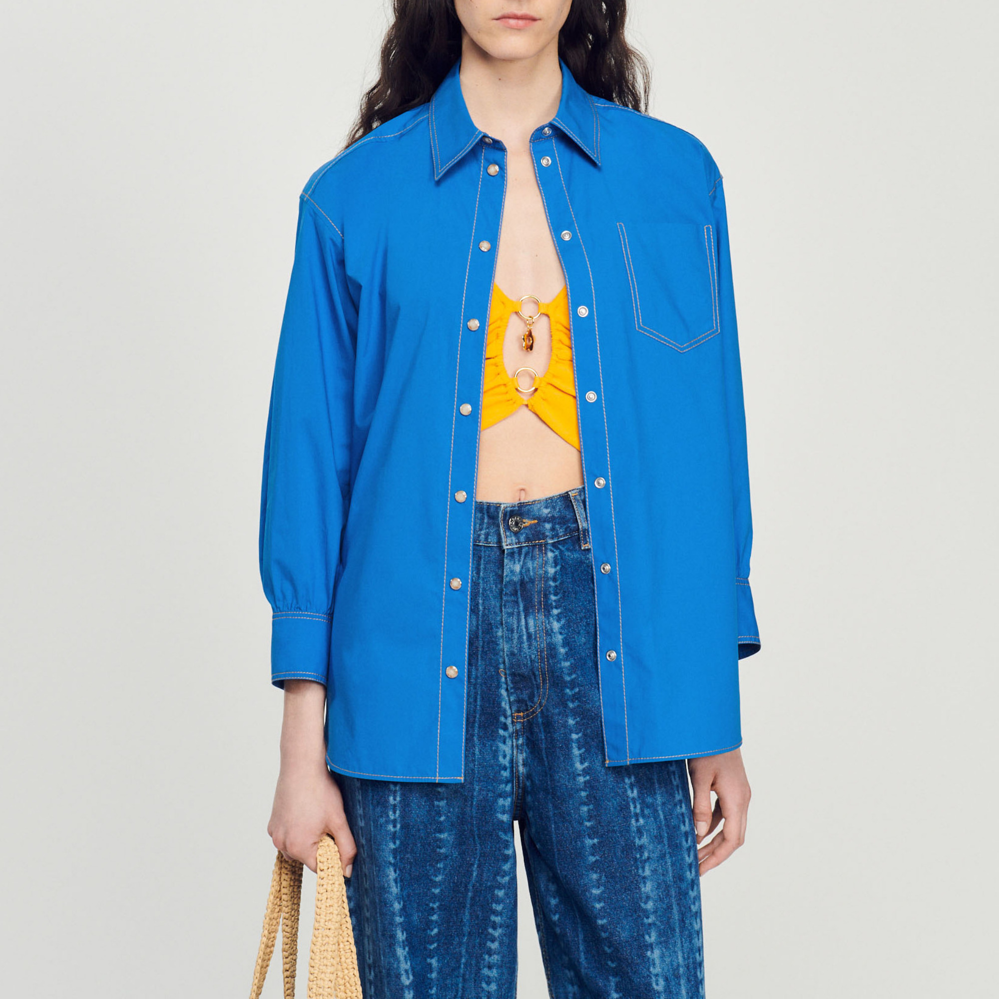 Sandro Women's loose shirt Long sleeves Button fastening Contrasting topstitching The cotton in this item was produced organically via a cultivation method that preserves biodiversity and bans the use of pesticides and GMOs.