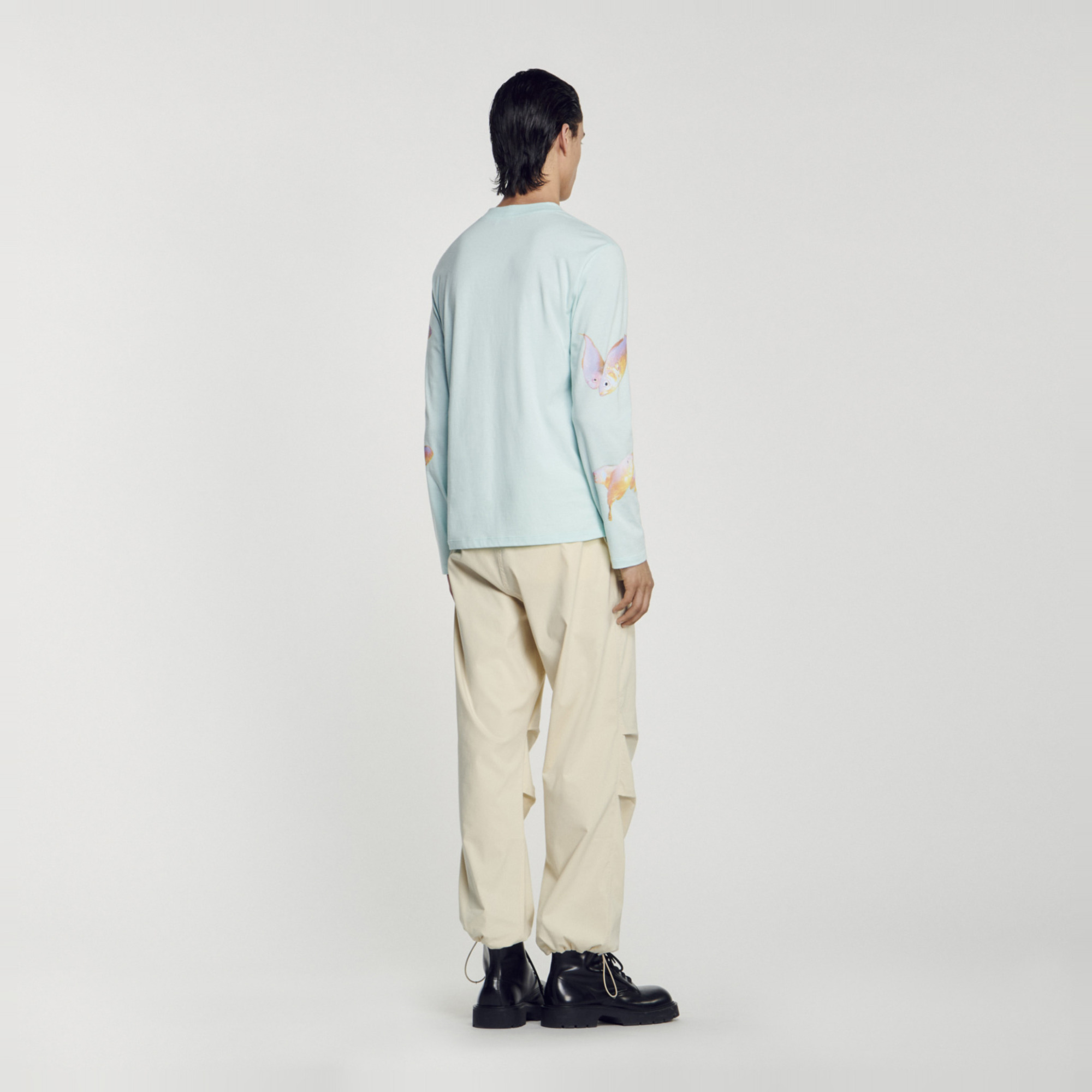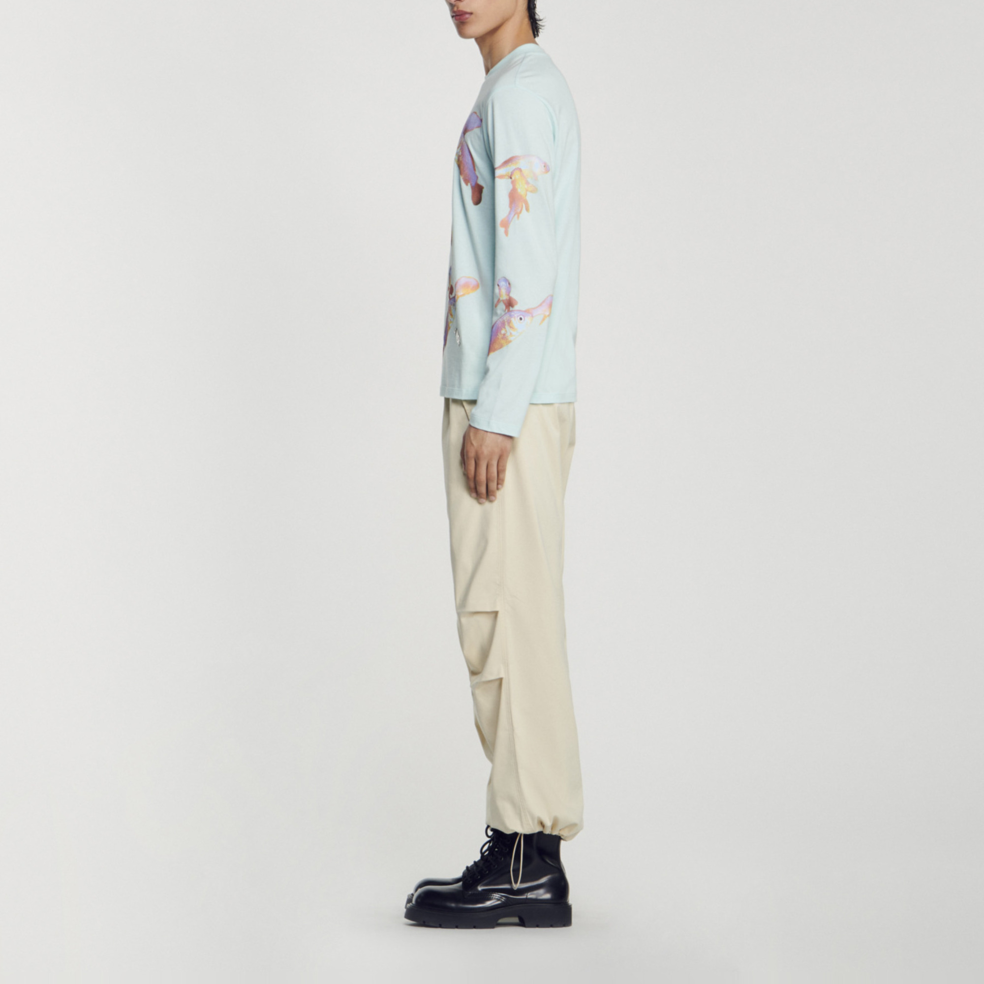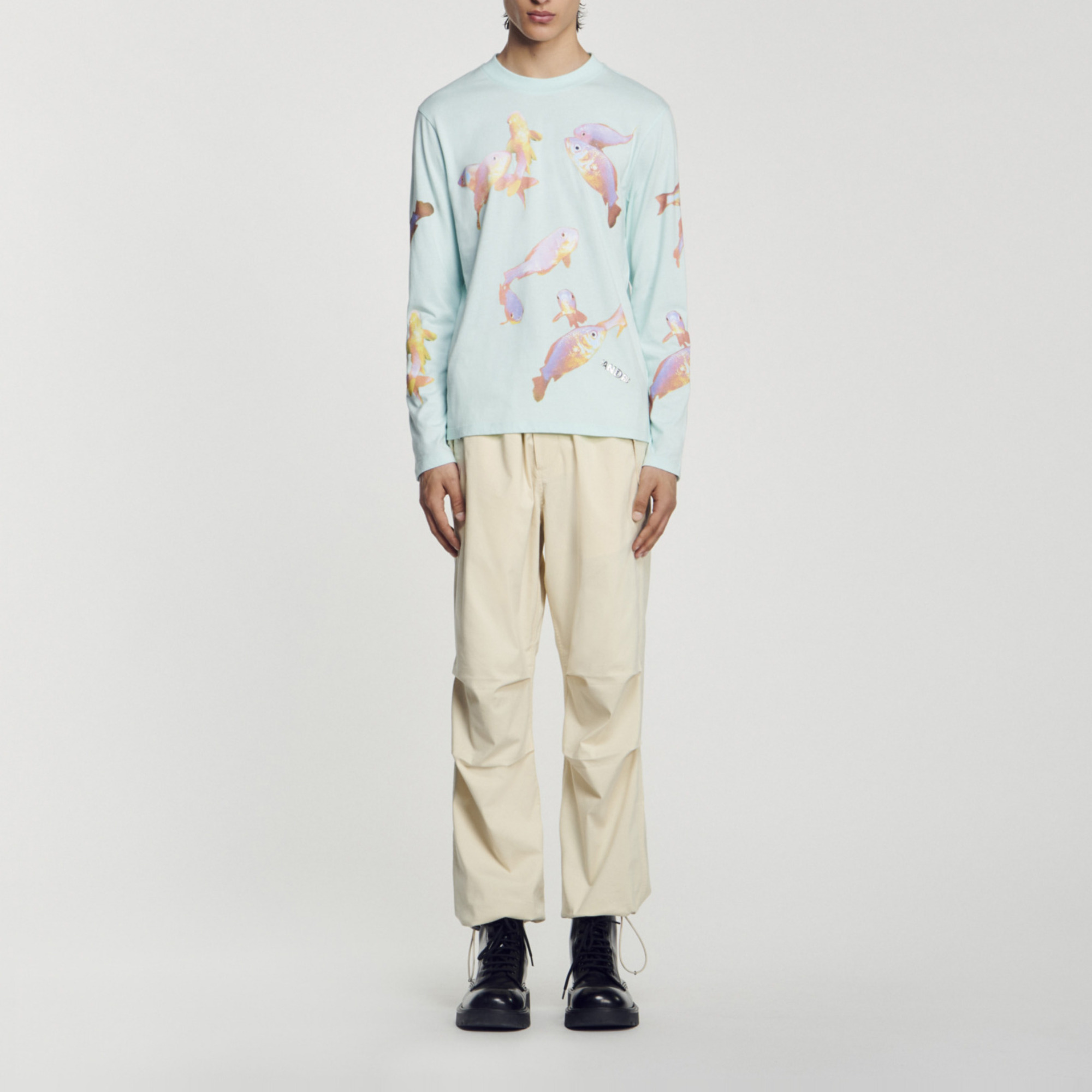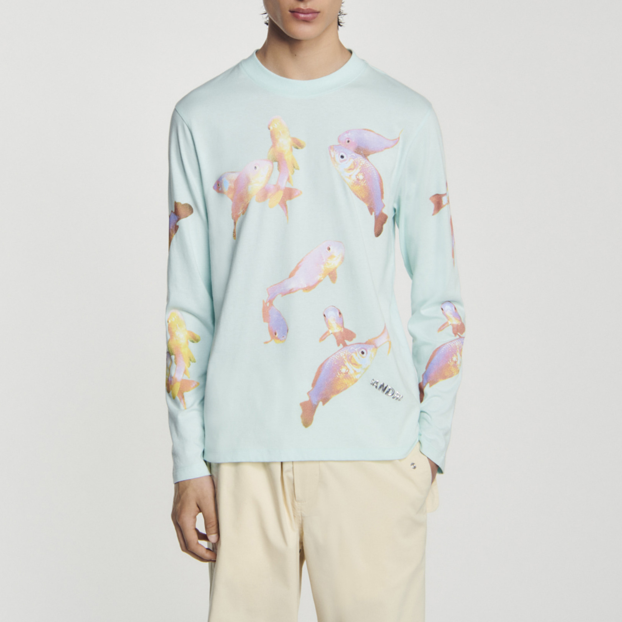 Sandro Men's T-shirt Oversize fit Round neck Long sleeves Fish print Model is wearing a size S and is 6'2'' The cotton in this item was produced organically via a cultivation method that preserves biodiversity and bans the use of pesticides and GMOs..