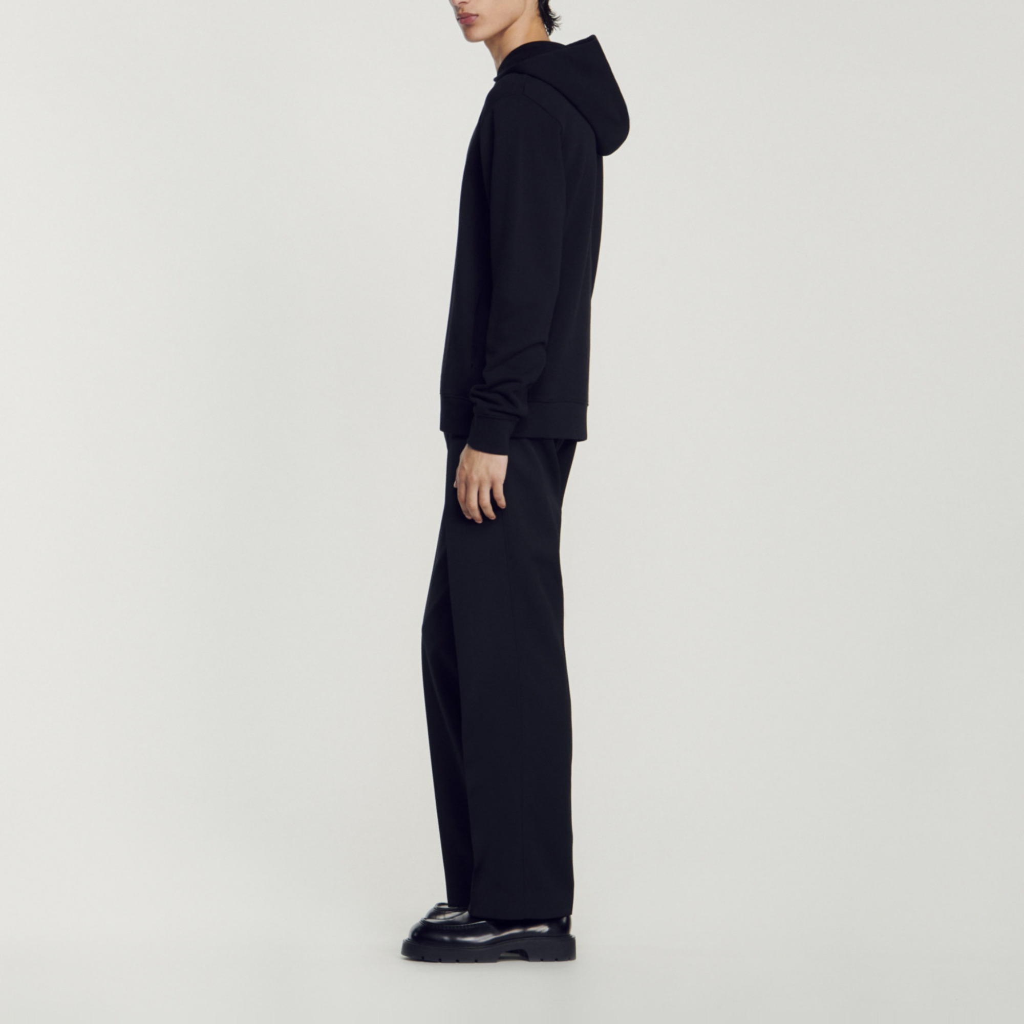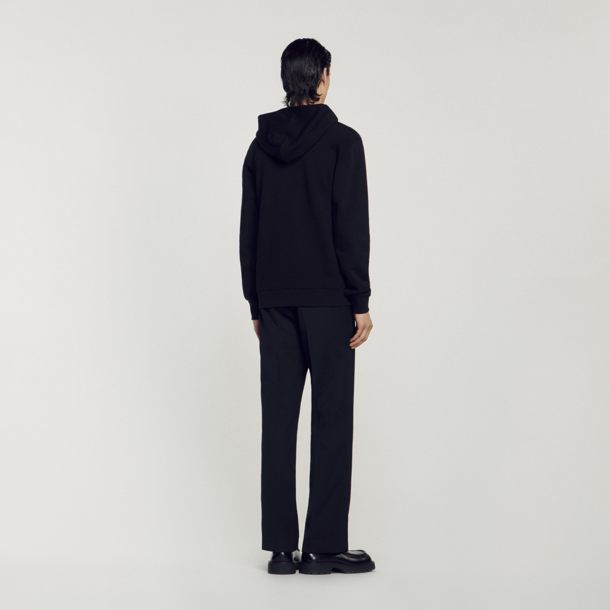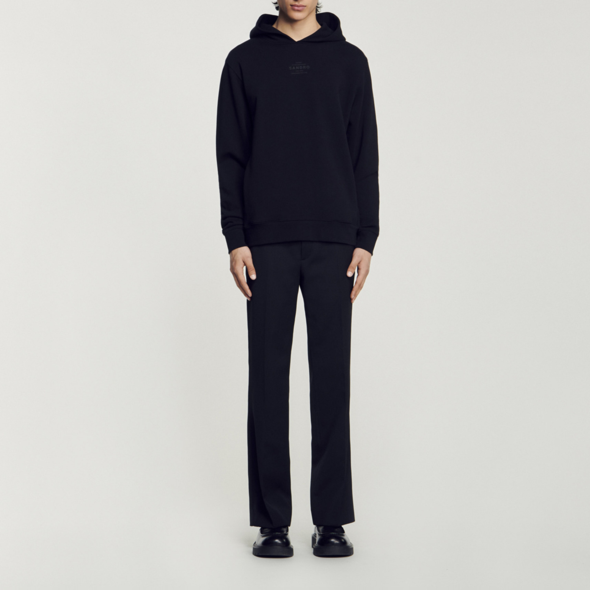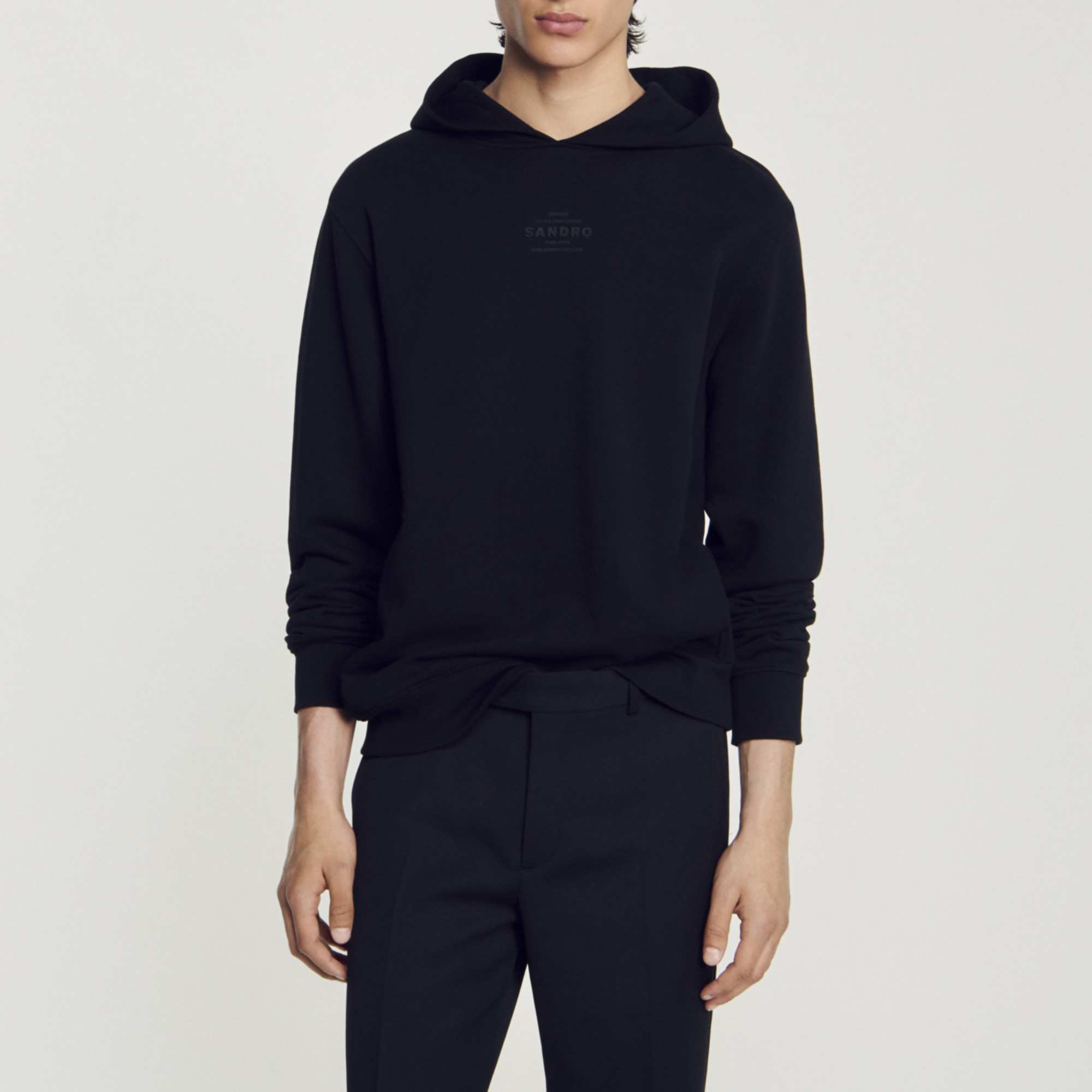 Sandro Men's hooded sweatshirt Hood Long sleeves Ribbed cuffs and waist Rubber Sandro logo Model is wearing a size S and is 6'2'' The cotton in this item was produced organically via a cultivation method that preserves biodiversity and bans the use of pesticides and GMOs..